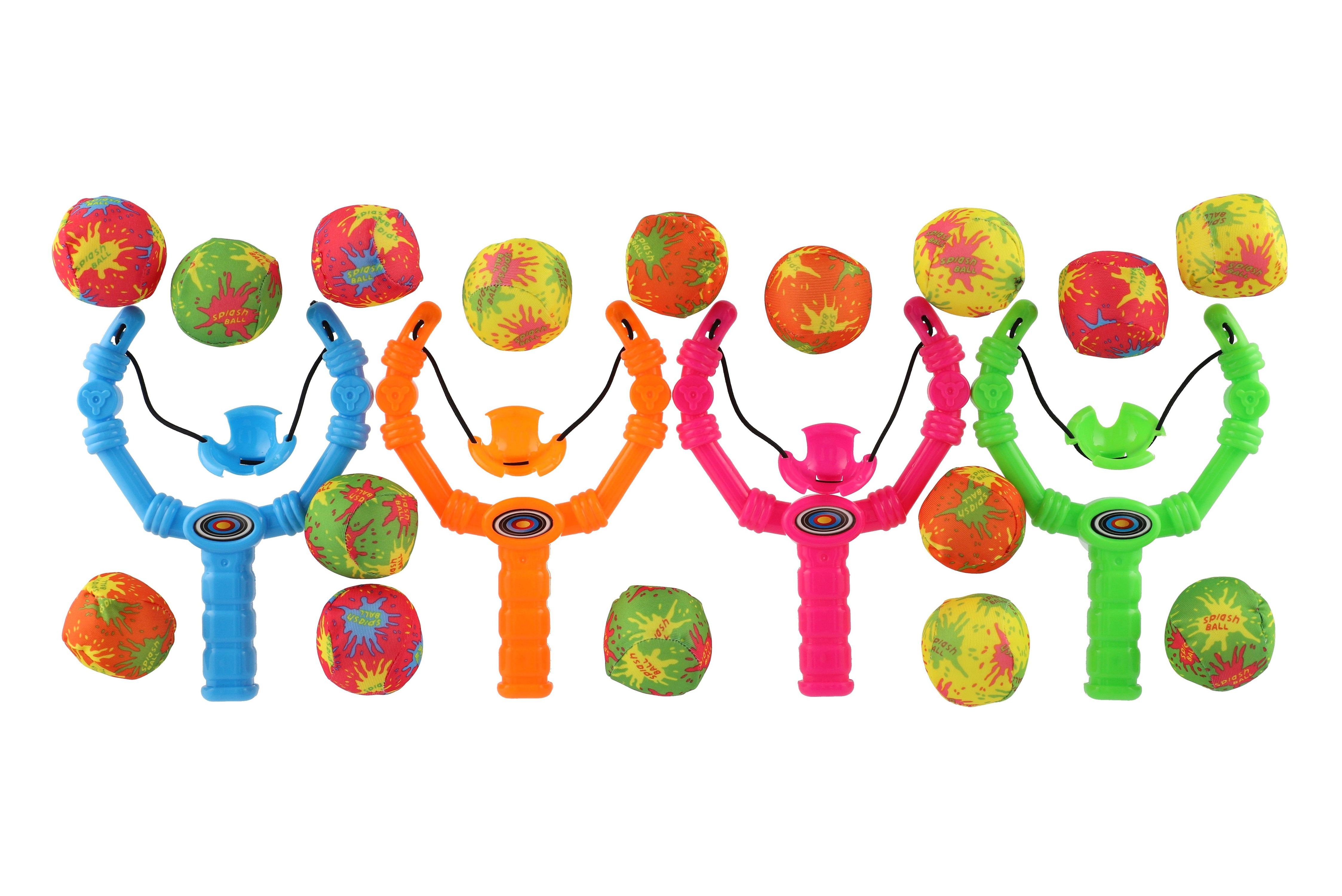 Beschreibung Teddies Schleuder mit Wasserbomben 4 Stück aus Kunststoff in 4 Farben im Netz