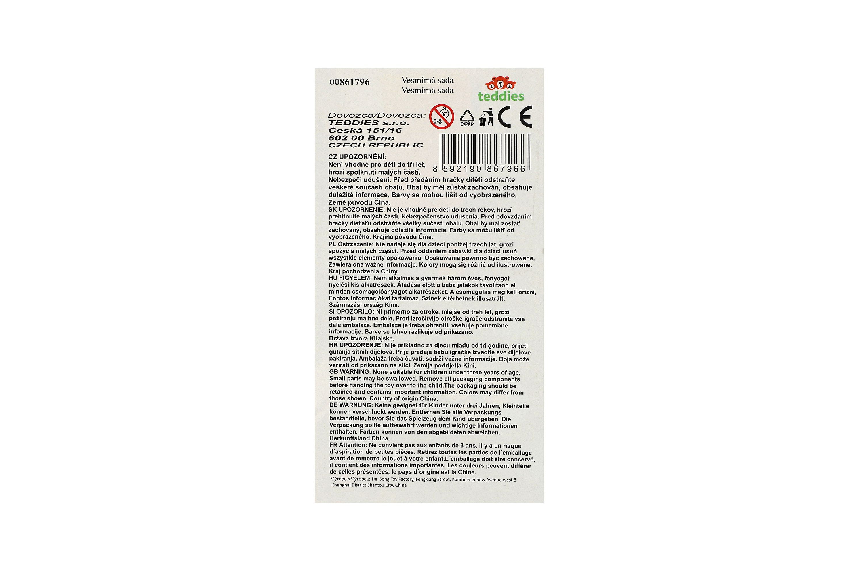 Beschreibung Teddies Set Weltraum groß 15 Stück Metall/Plastik in Schachtel 43x28x4cm