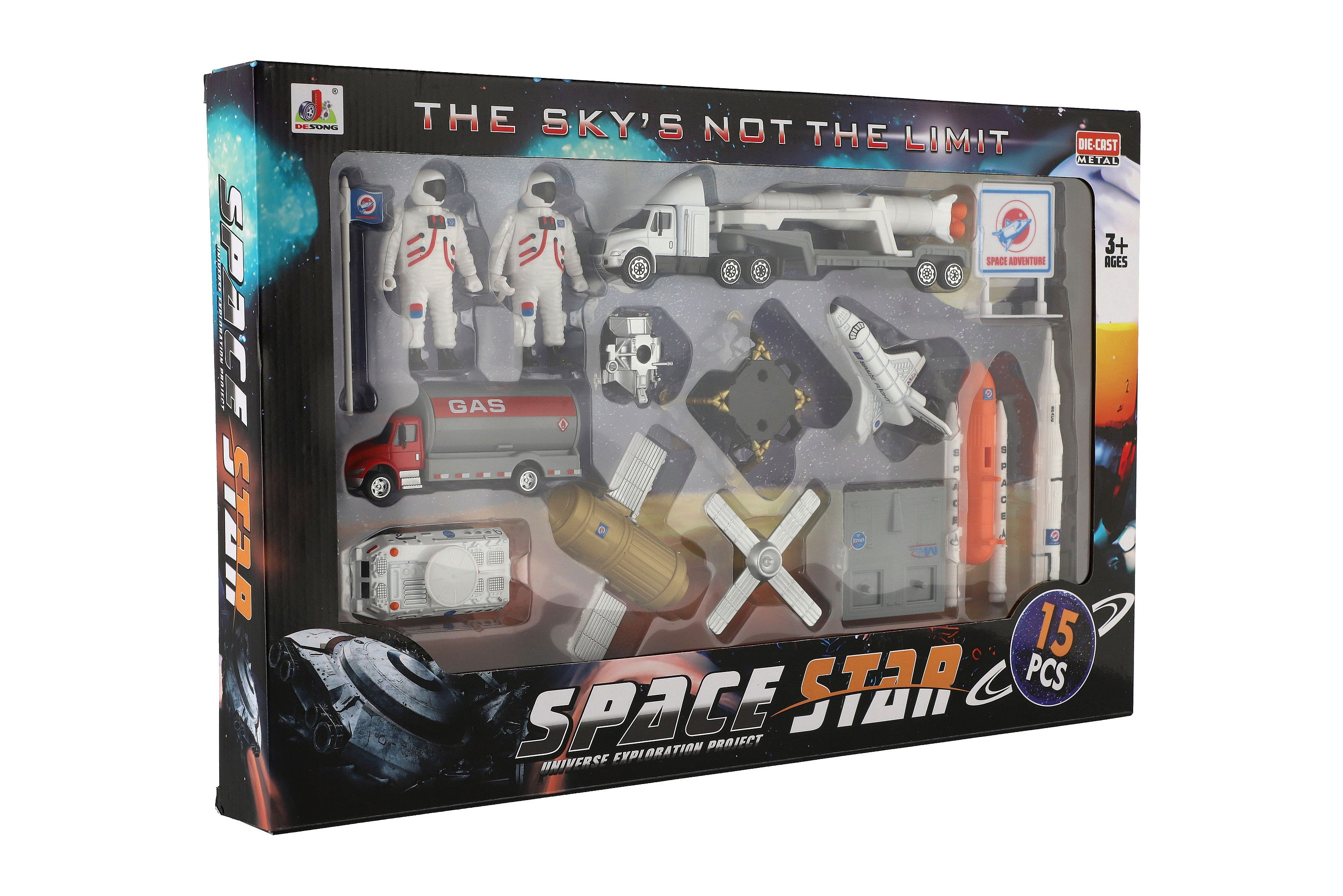 Krásná velká vesmírná sada pro malé kosmonauty. Touží se vaše dítko stát kosmonautem? Vesmírná sada přináší dětem možnost si hrát na let raketoplánu do vesmíru. Tato sada obsahuje 15ks. Rozměr krabice: 43 x 28 x 4 cm Vhodné pro děti od 3 let