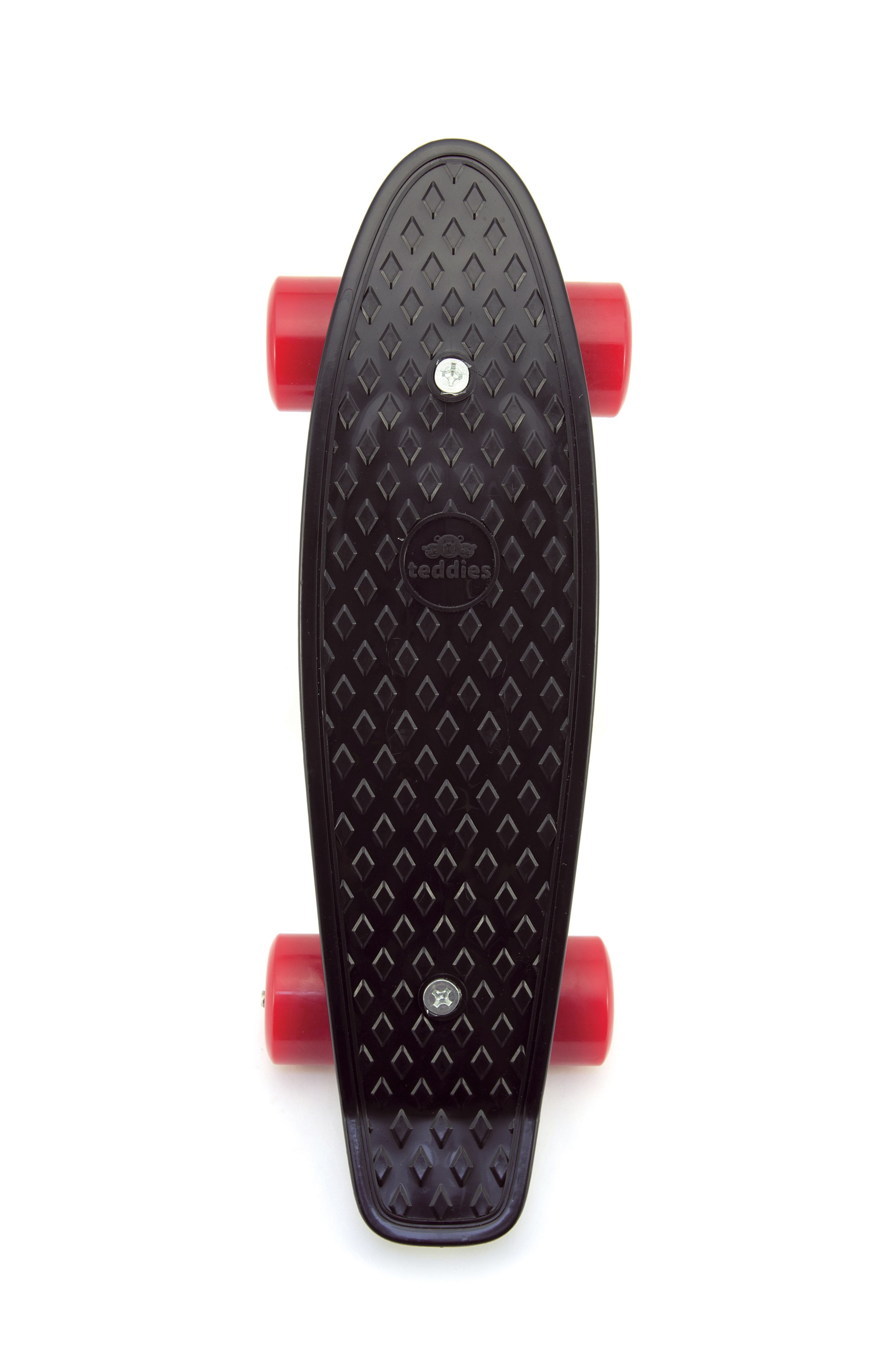 Teddies Skateboard - Pennyboard 43cm, Tragfähigkeit 60kg, Metallachsen, schwarz, rote Räder