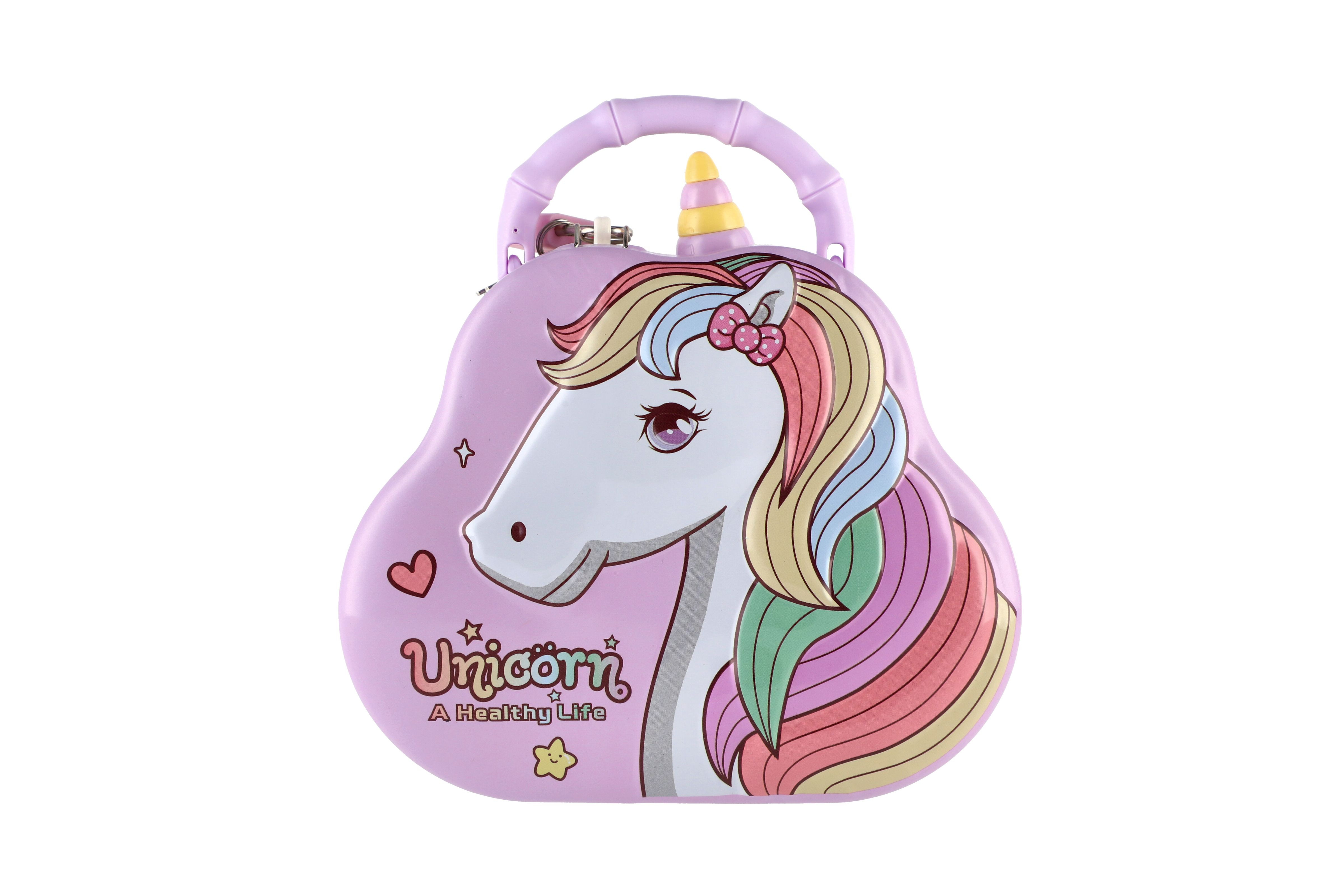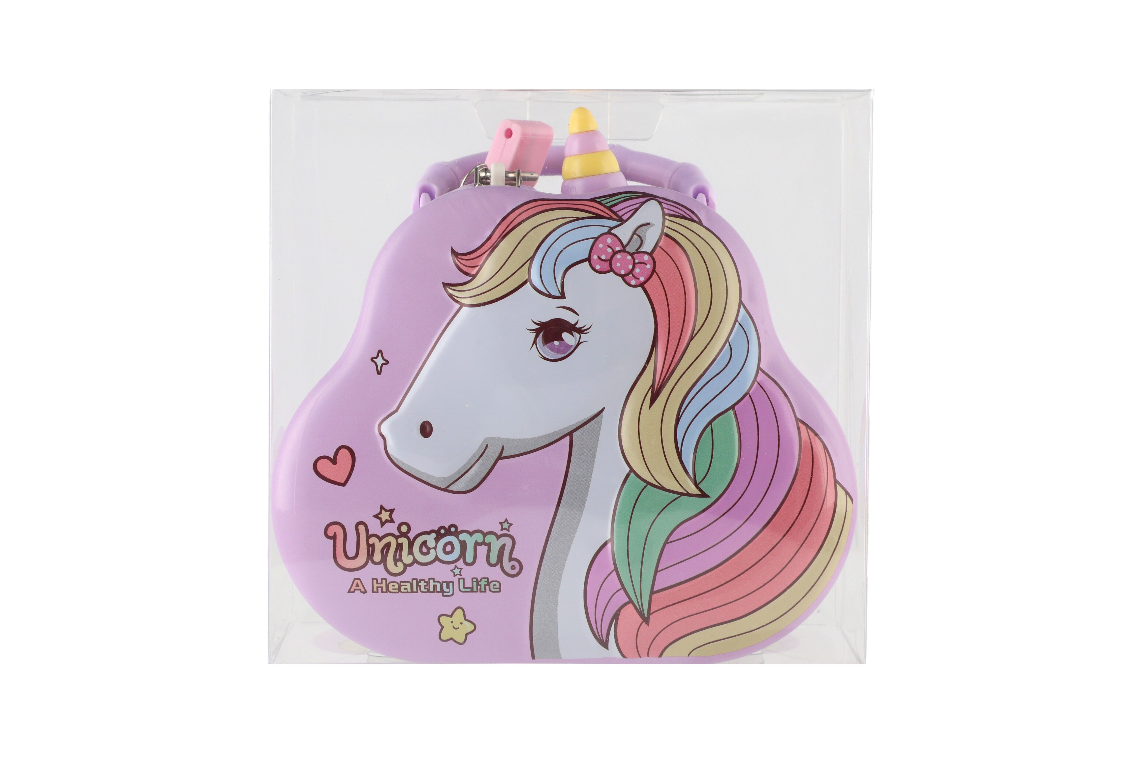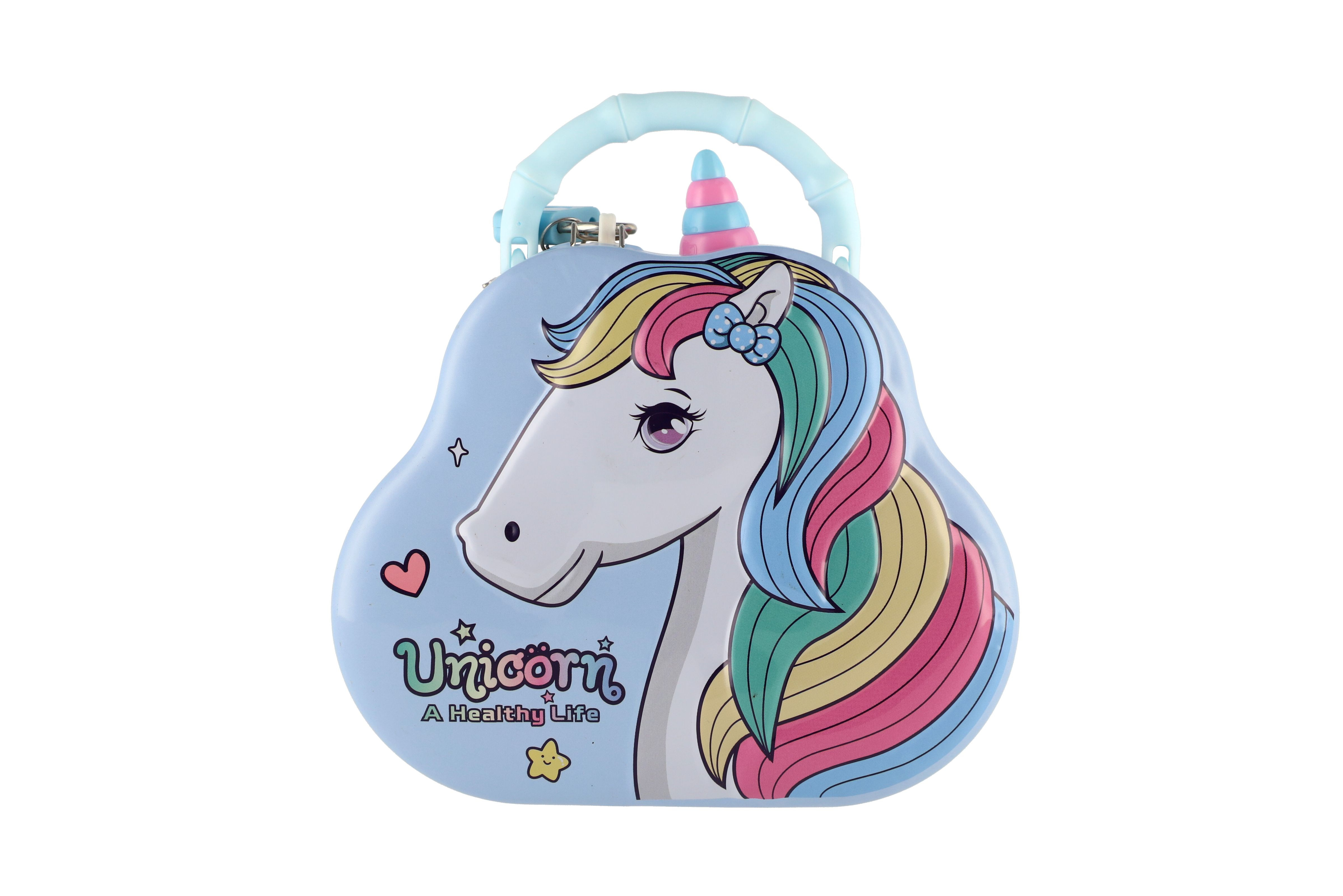 Teddies Spardose Handtasche Einhorn aus Blech mit Schloss 15x14cm 3 Farben in Plastikbox