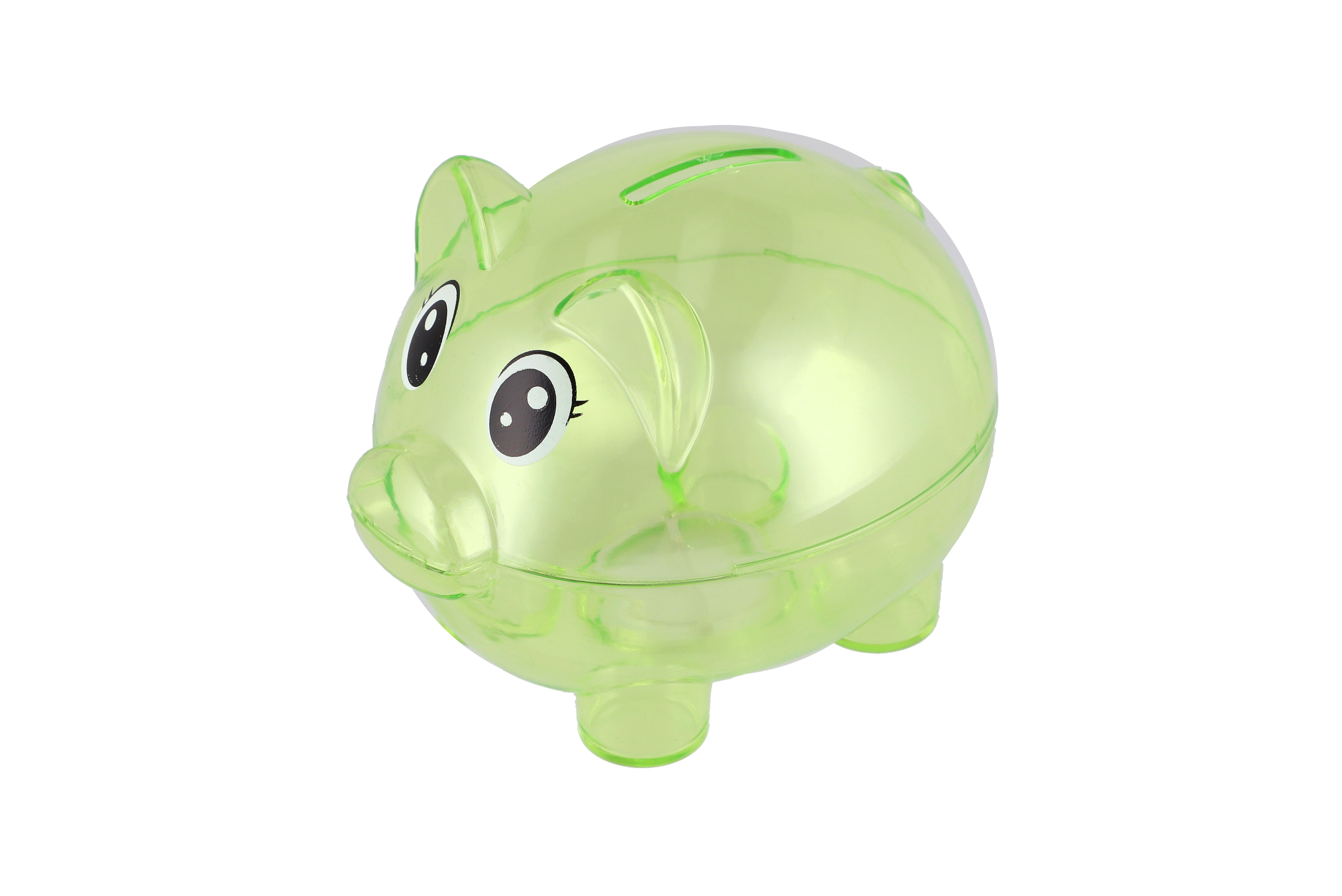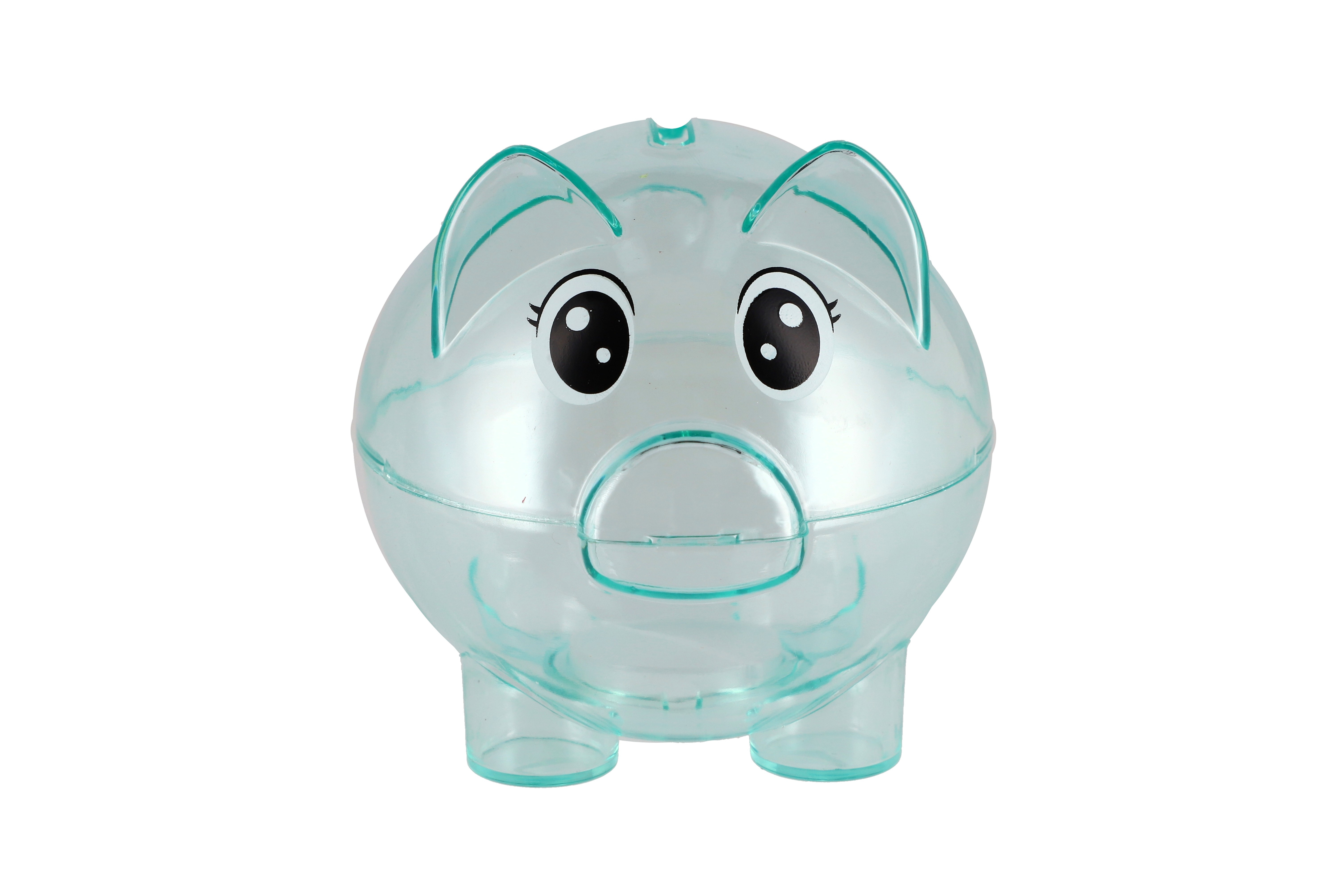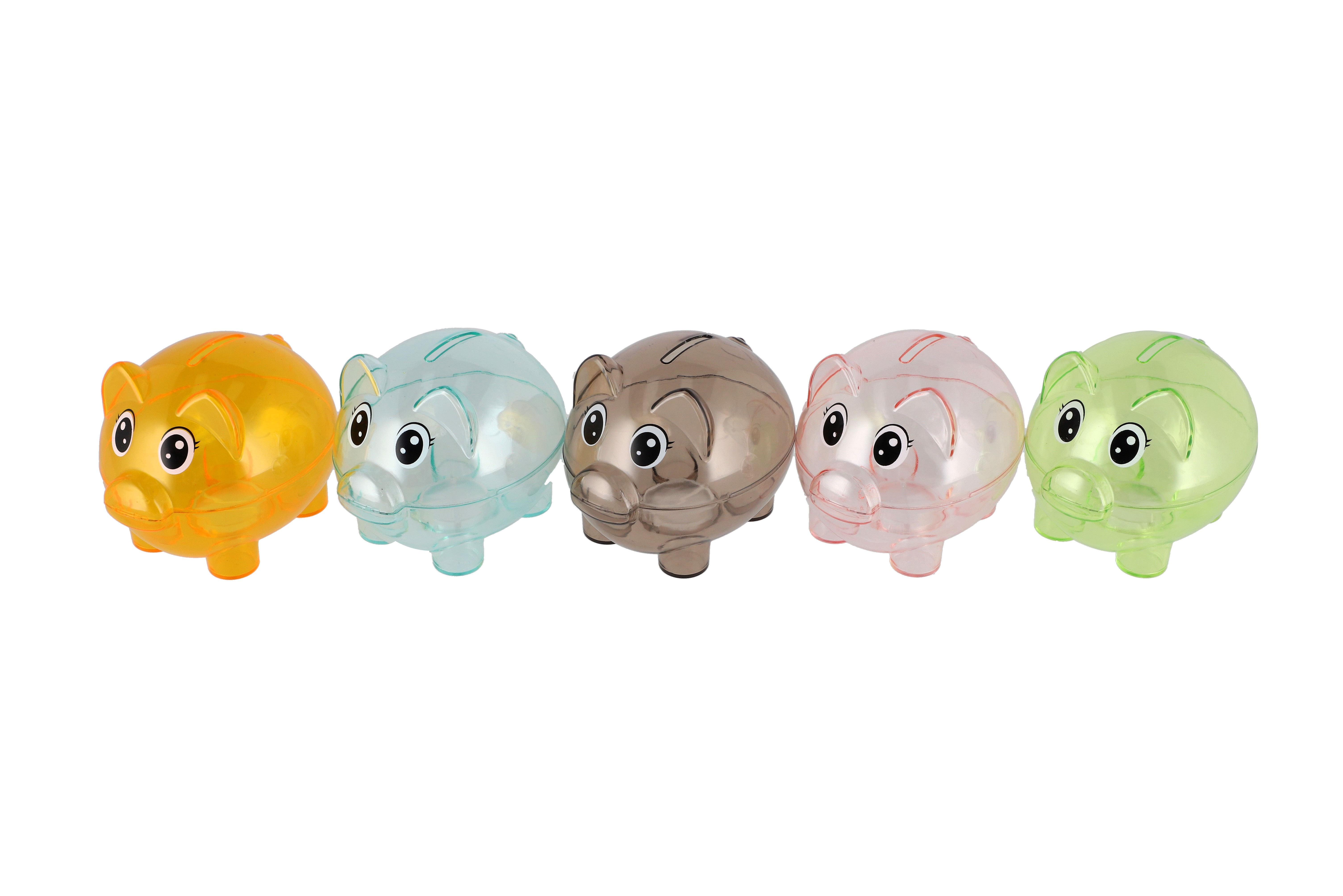 Teddies Spardose Schweinchen transparent Kunststoff 10cm Mix Sorten
