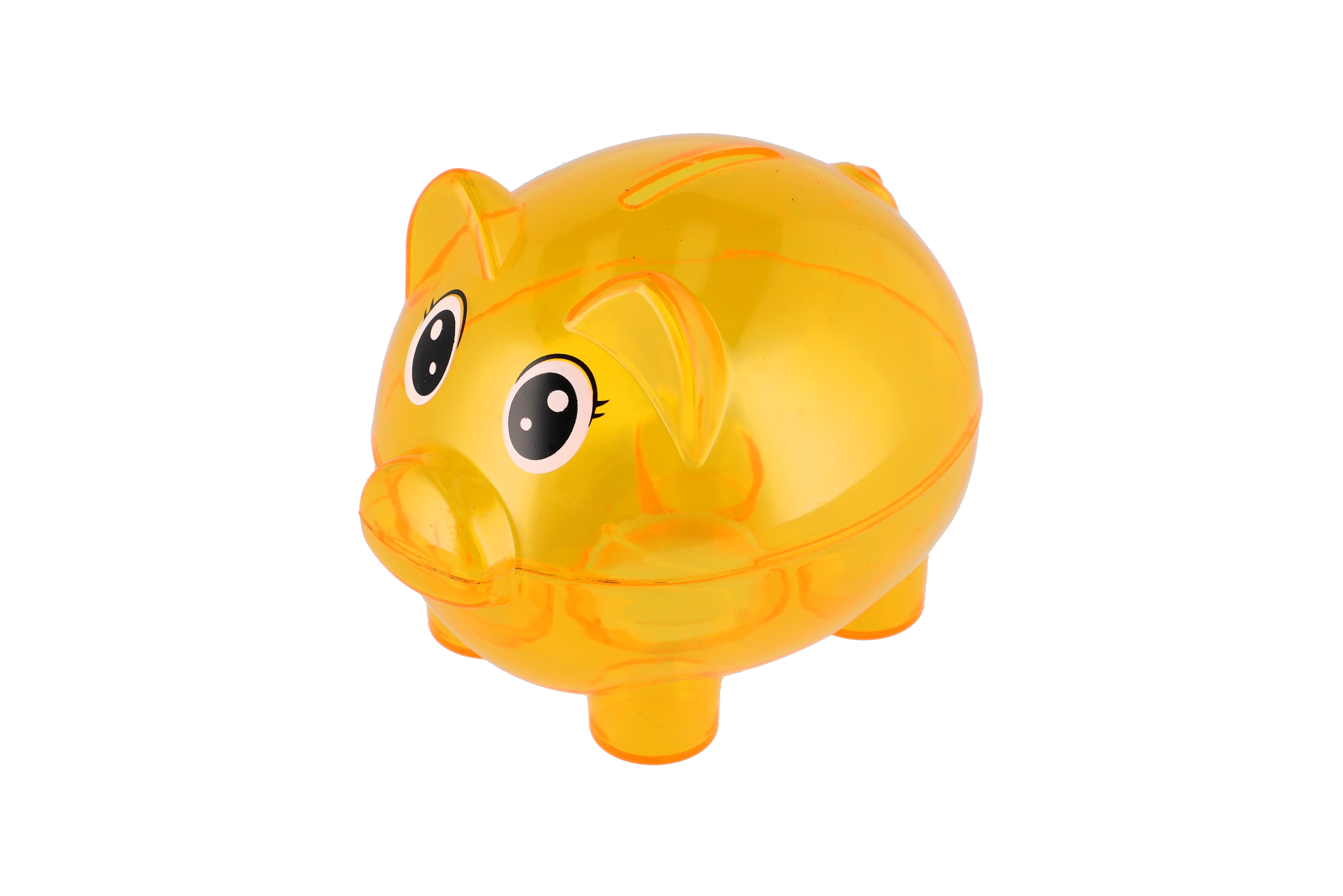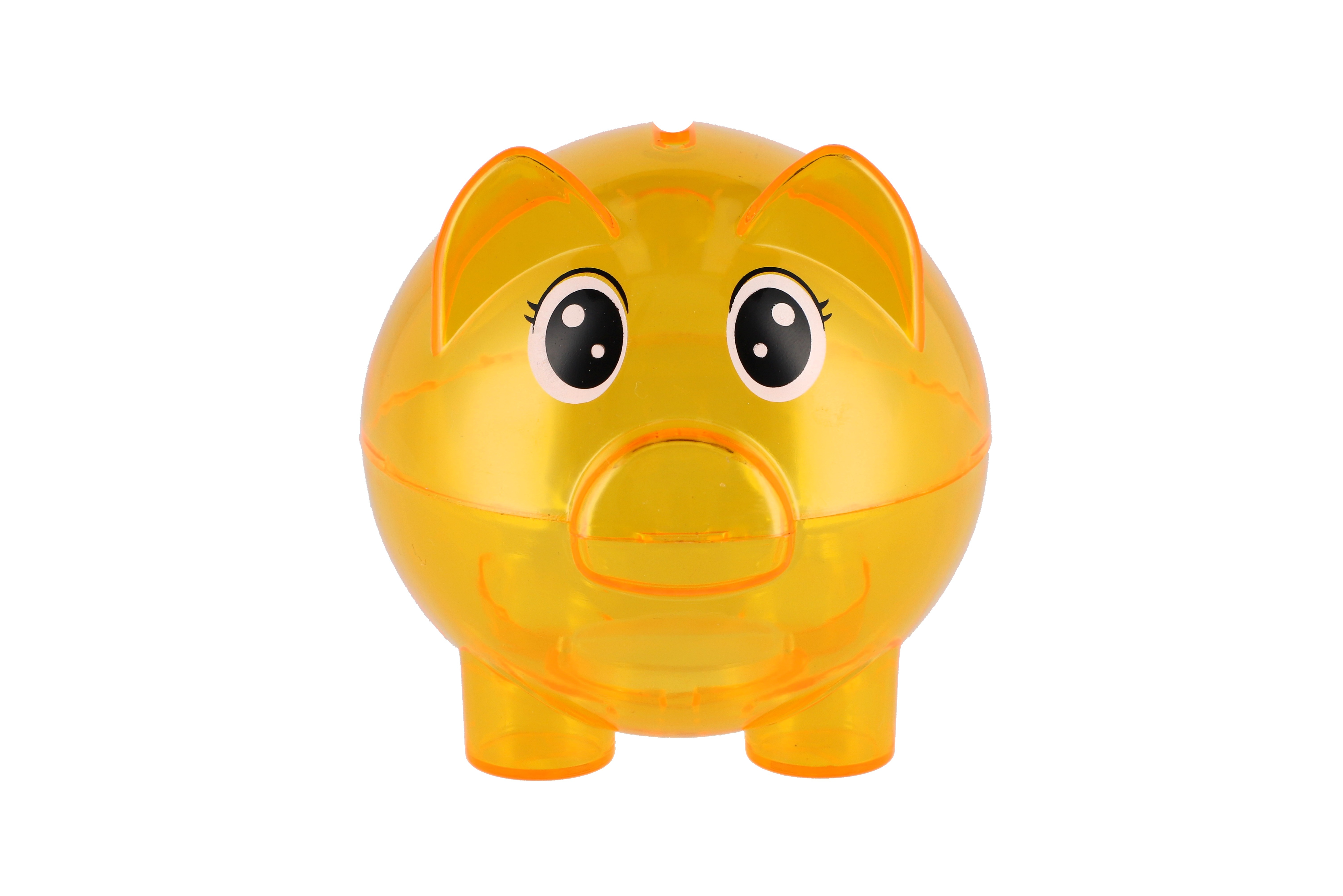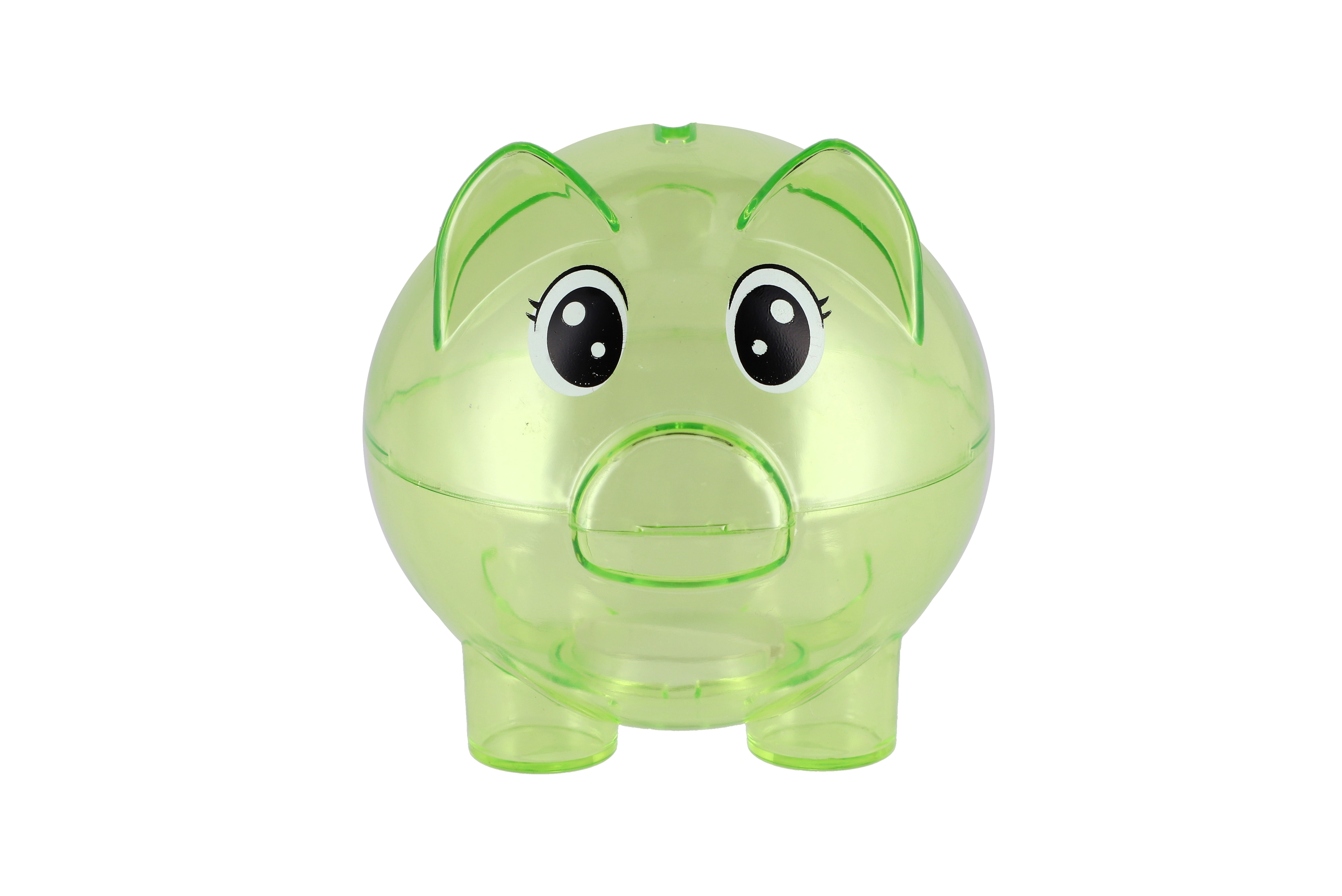 Teddies Spardose Schweinchen transparent Kunststoff 10cm Mix Sorten