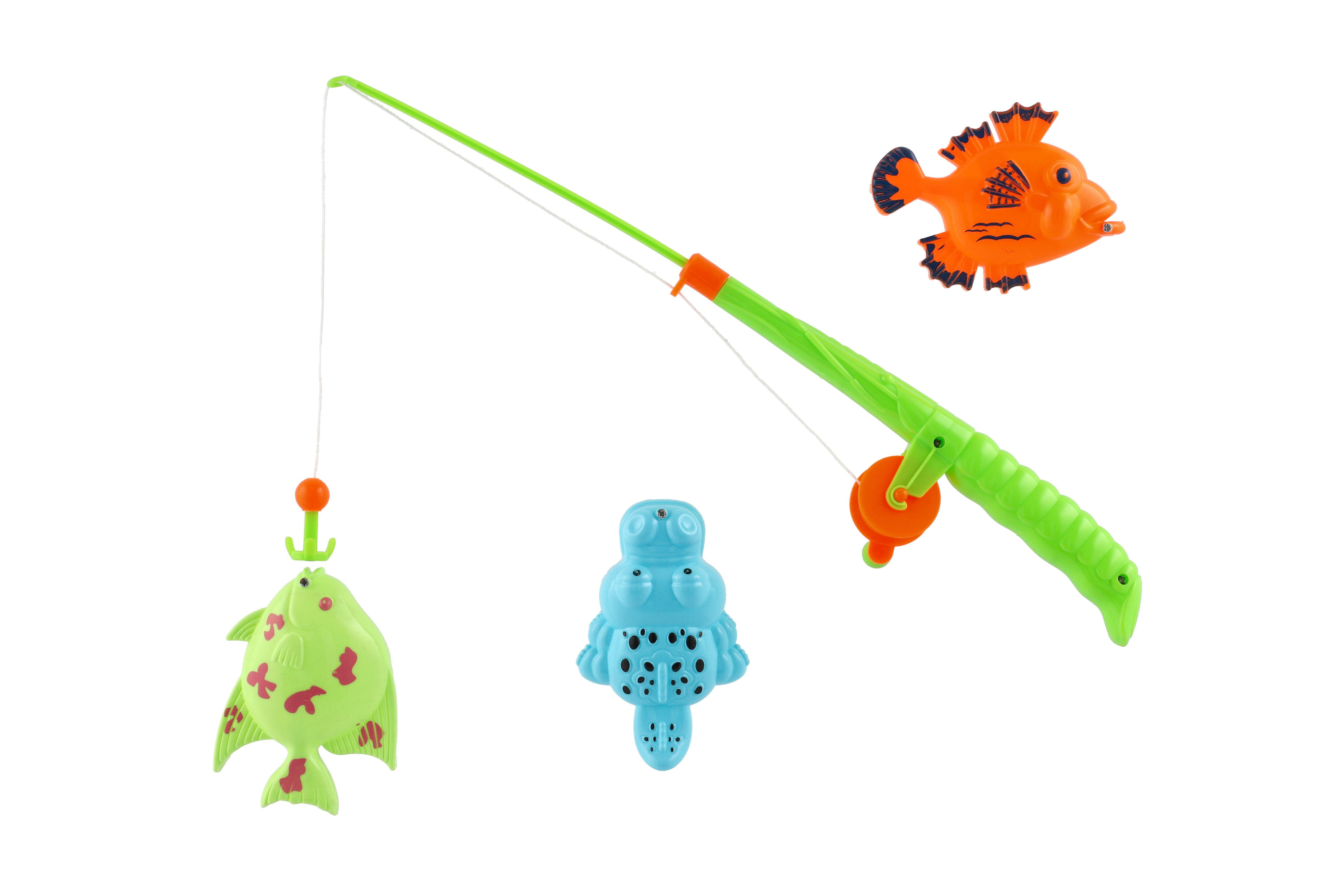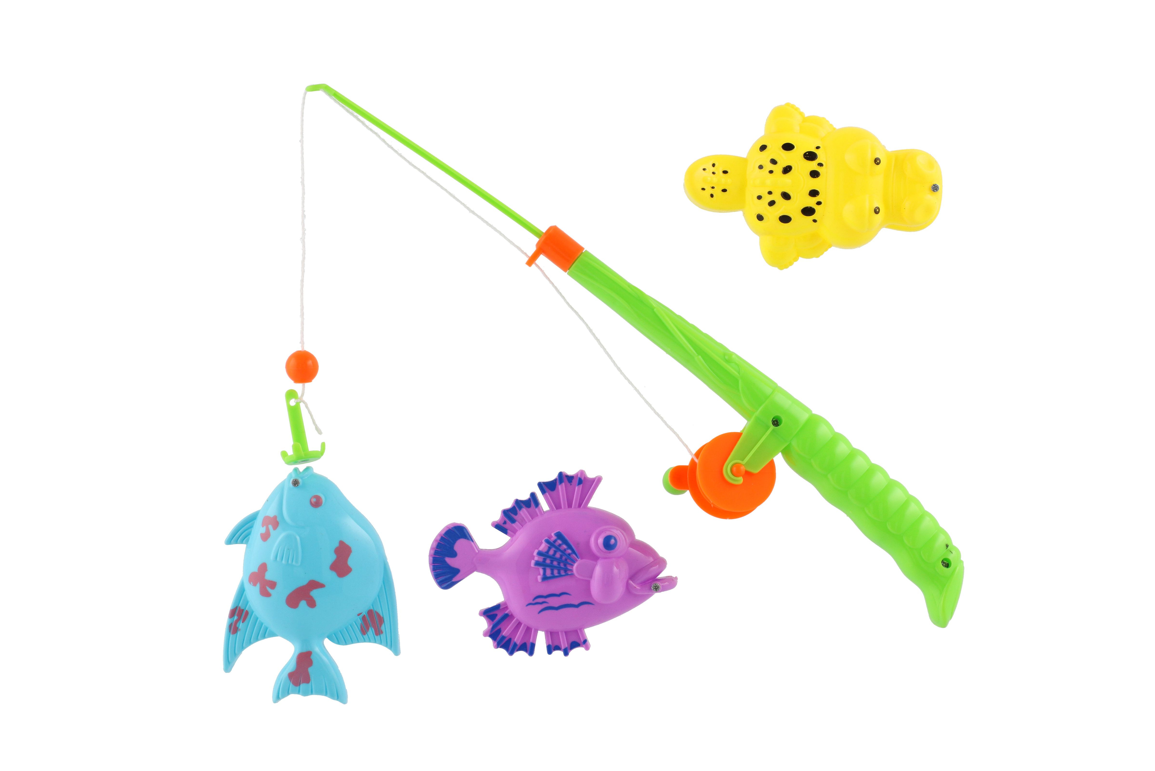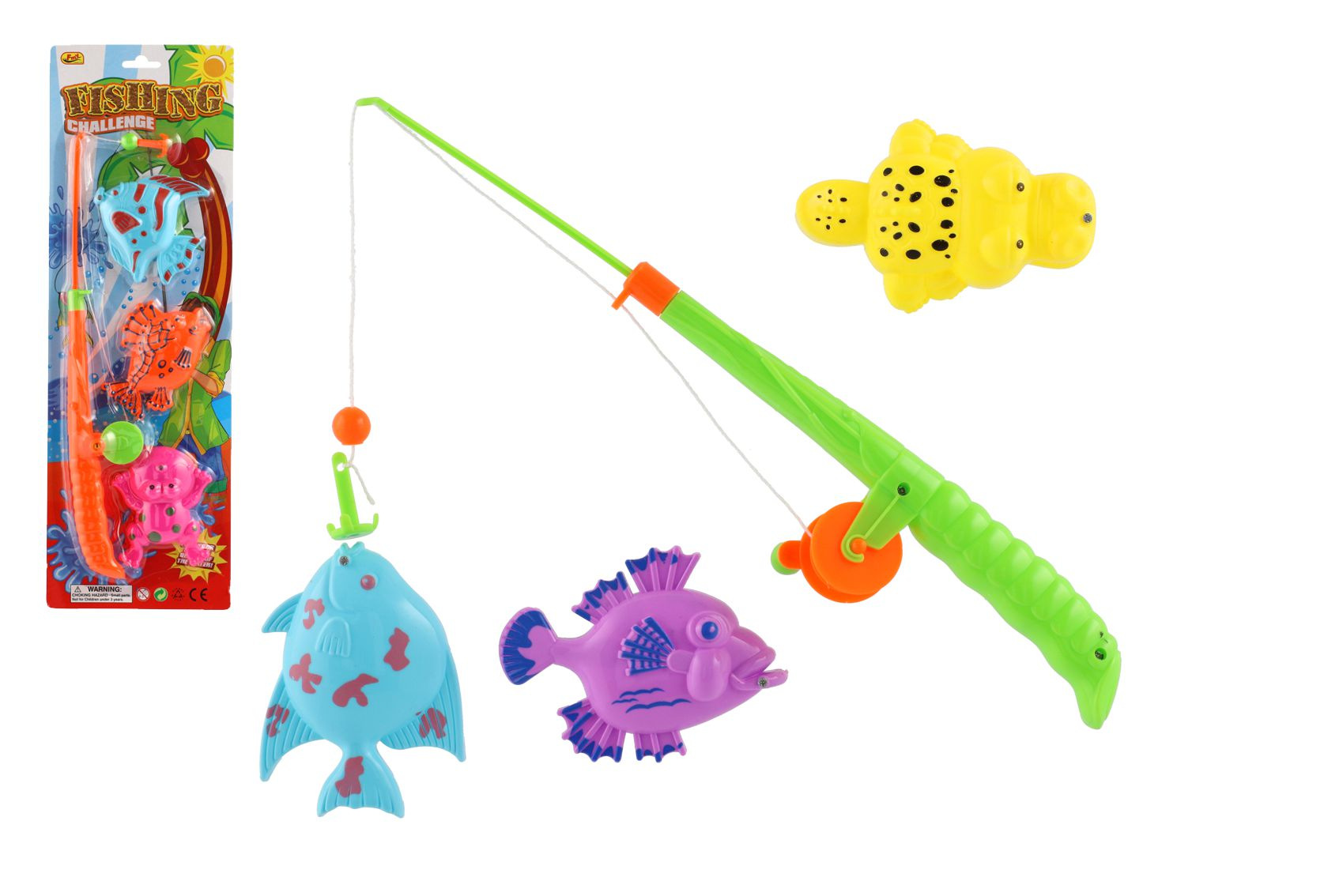 Teddies Spiel Fische/Angler magnetisch Kunststoff 3 Stk.+Rute Kunststoff 34cm Farbmix auf Karte