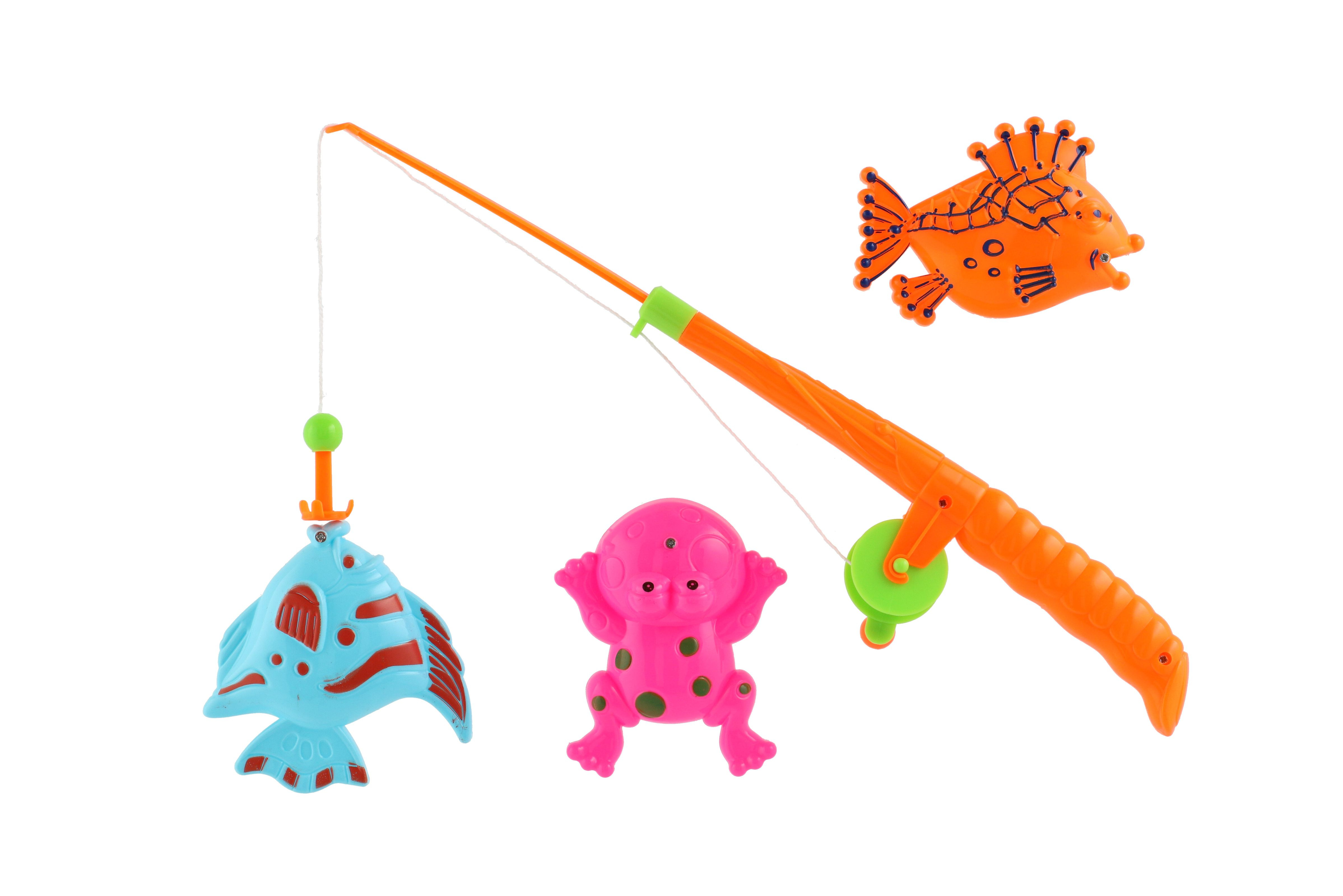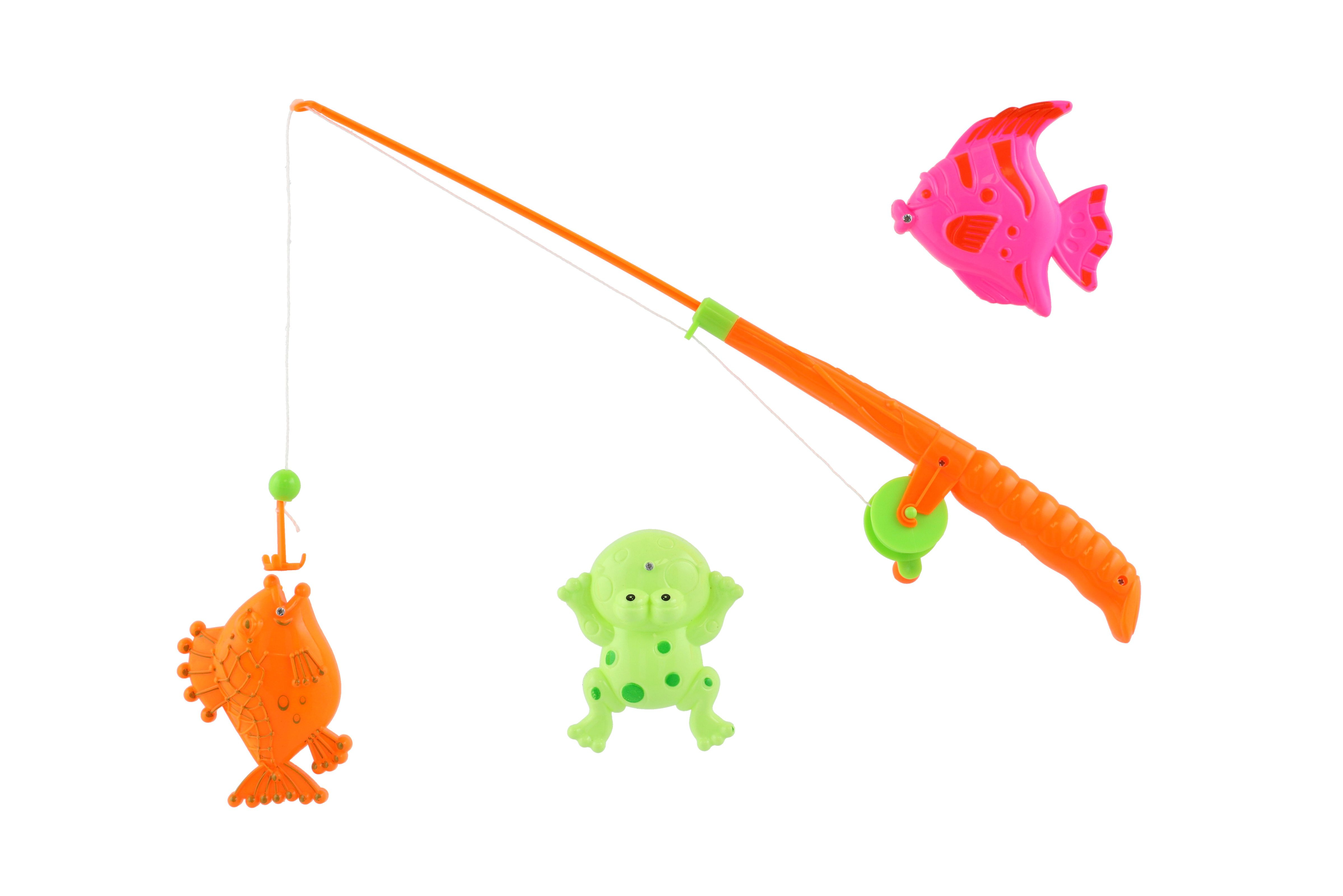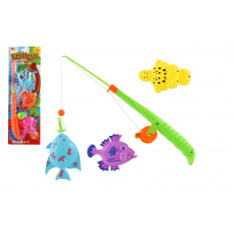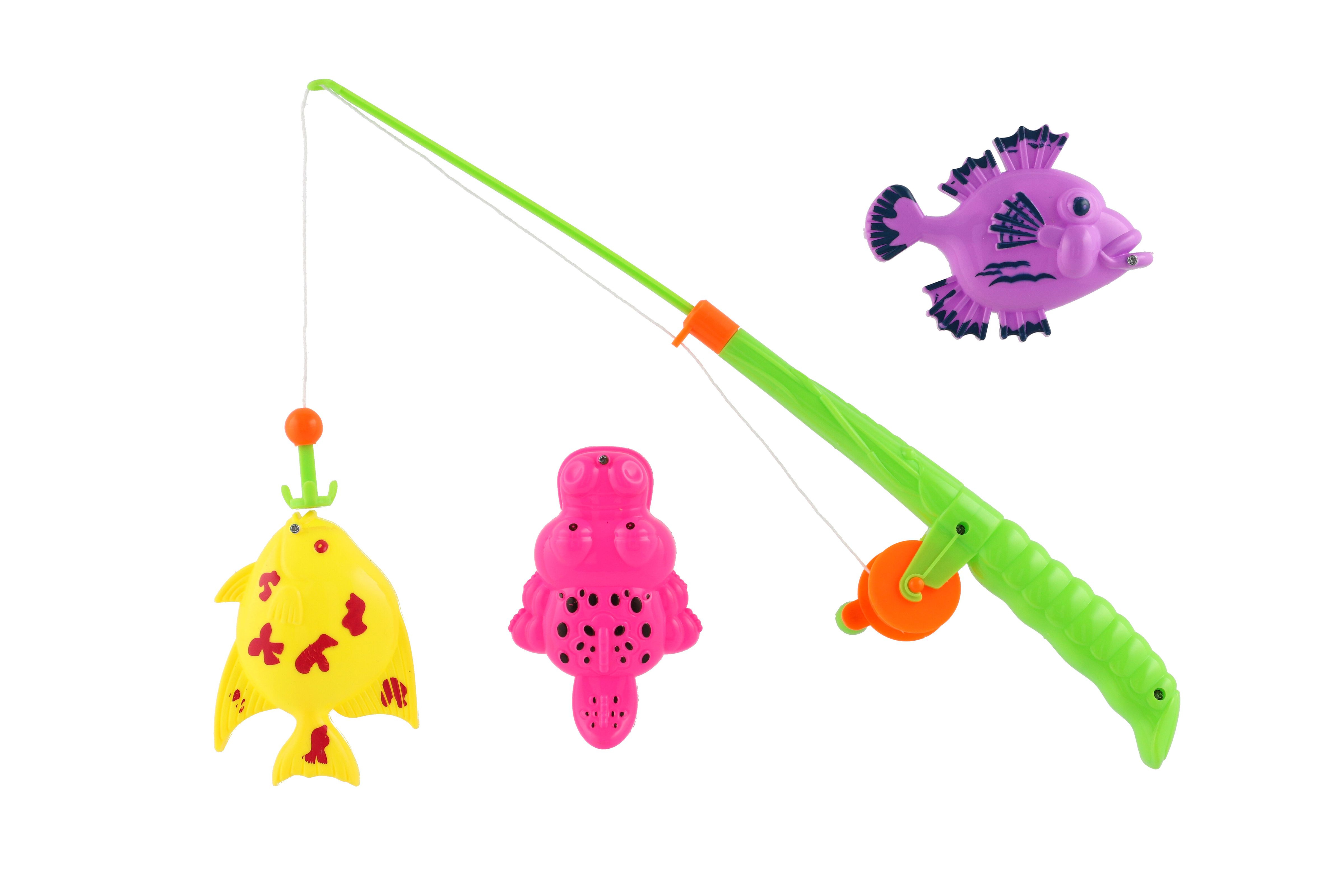 Teddies Spiel Fische/Angler magnetisch Kunststoff 3 Stk.+Rute Kunststoff 34cm Farbmix auf Karte
