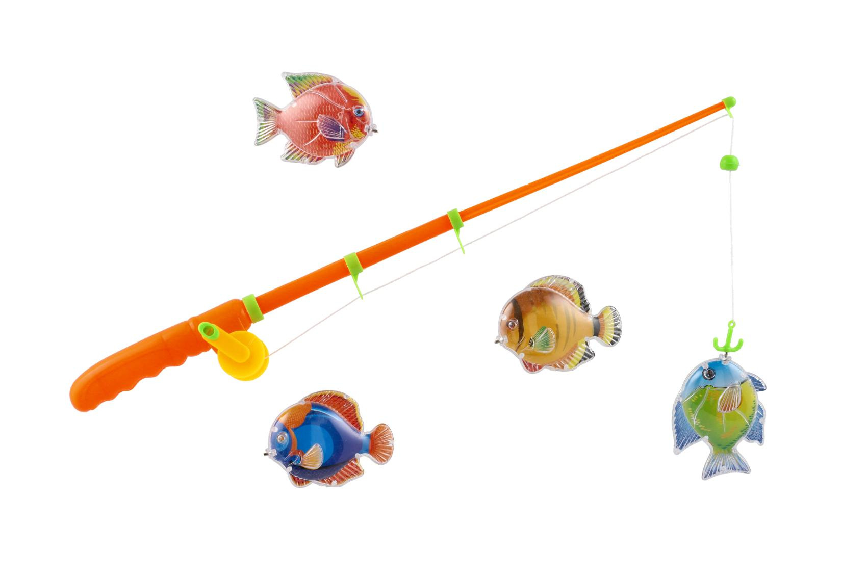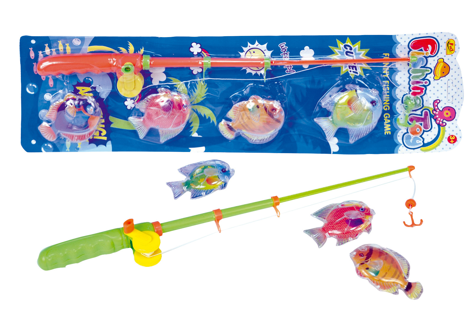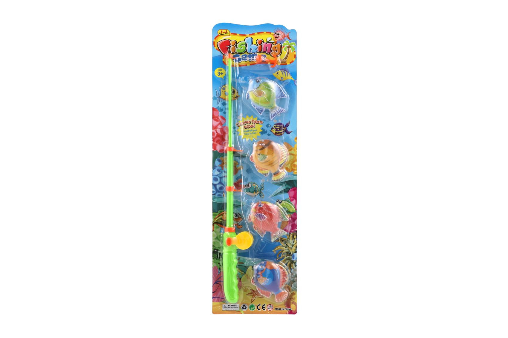 Teddies Spiel Fische/Angler magnetisch Kunststoff 4 Stk.+Rute Kunststoff 44cm 2 Farben auf Karte