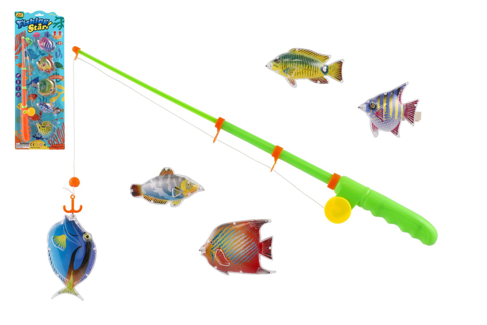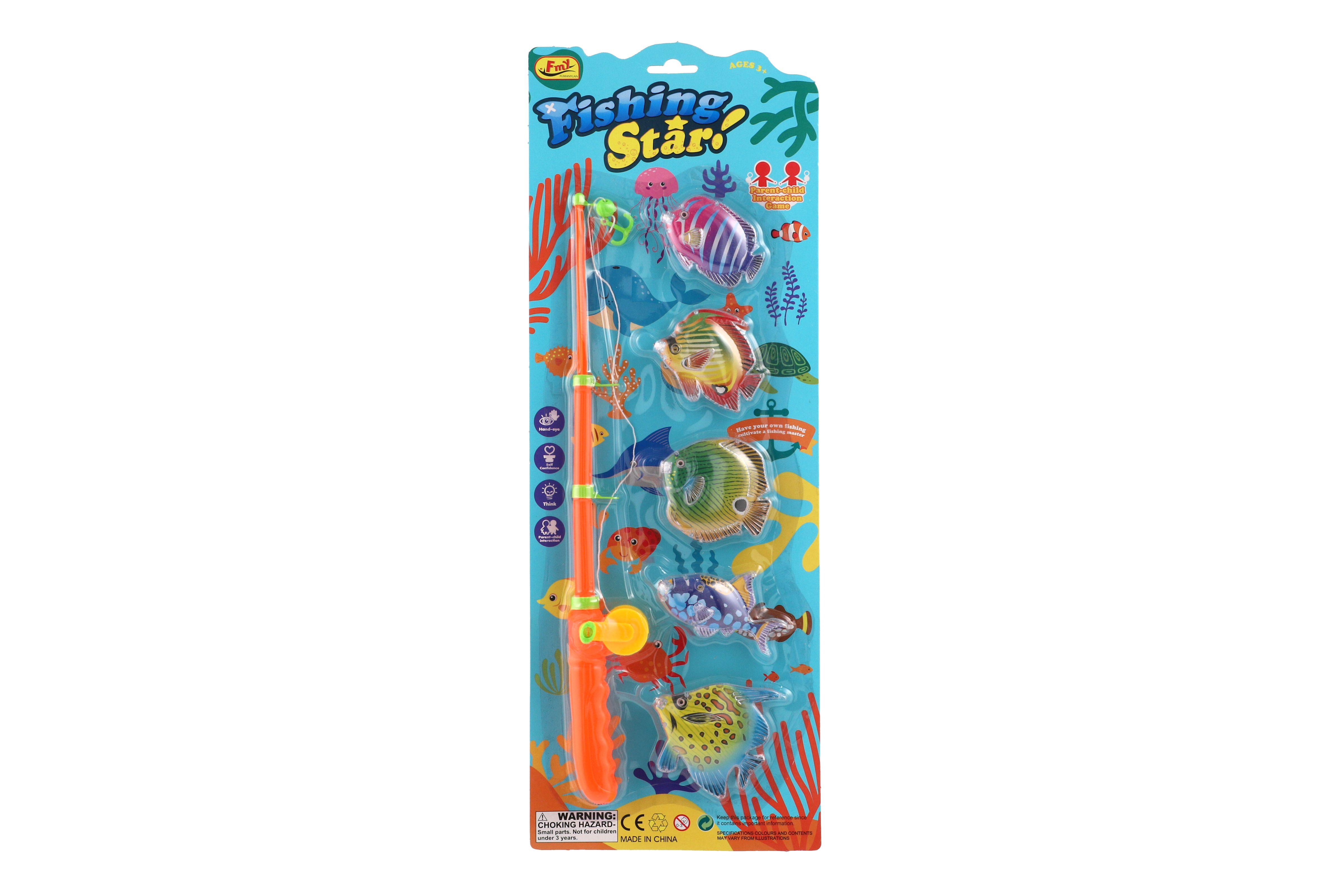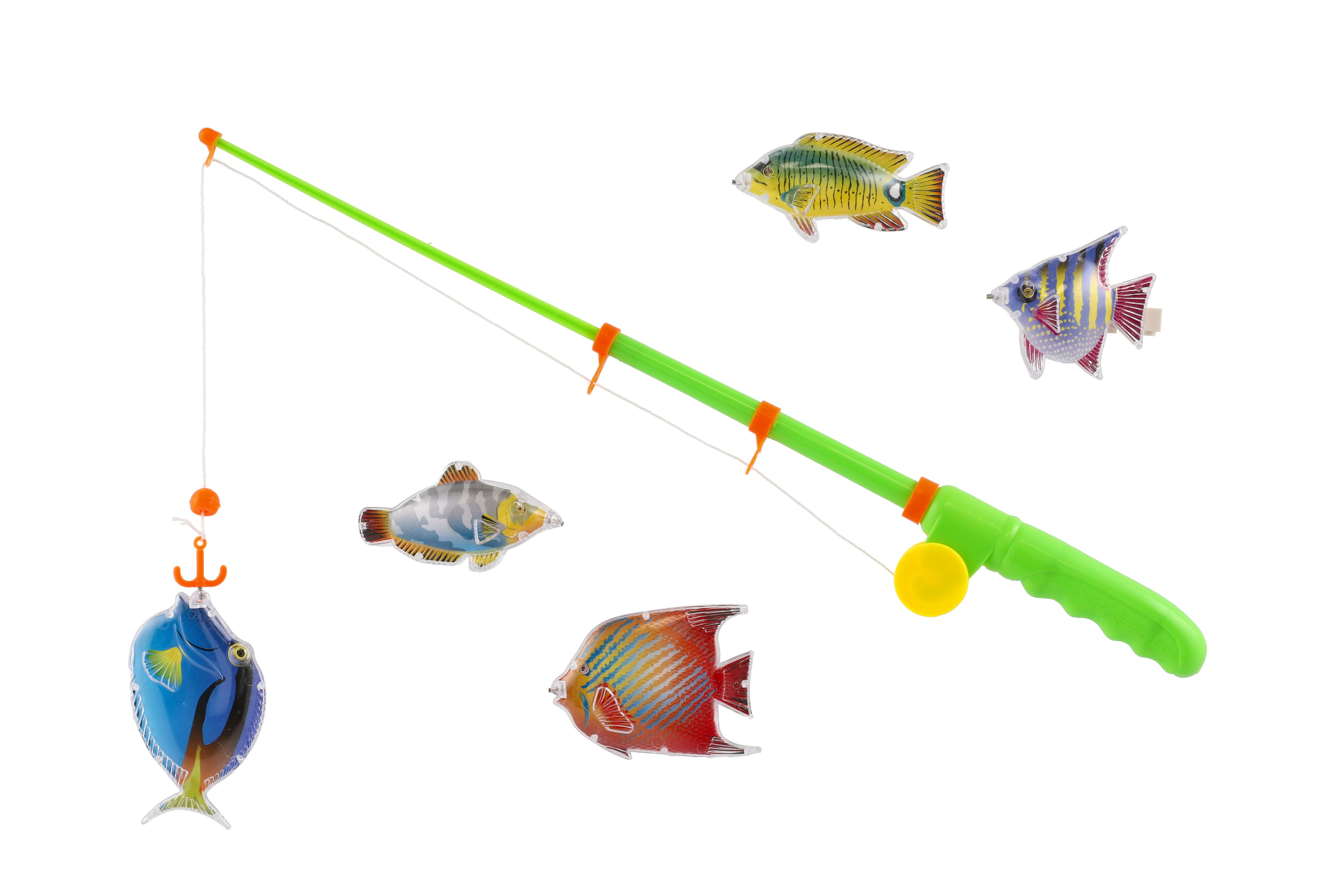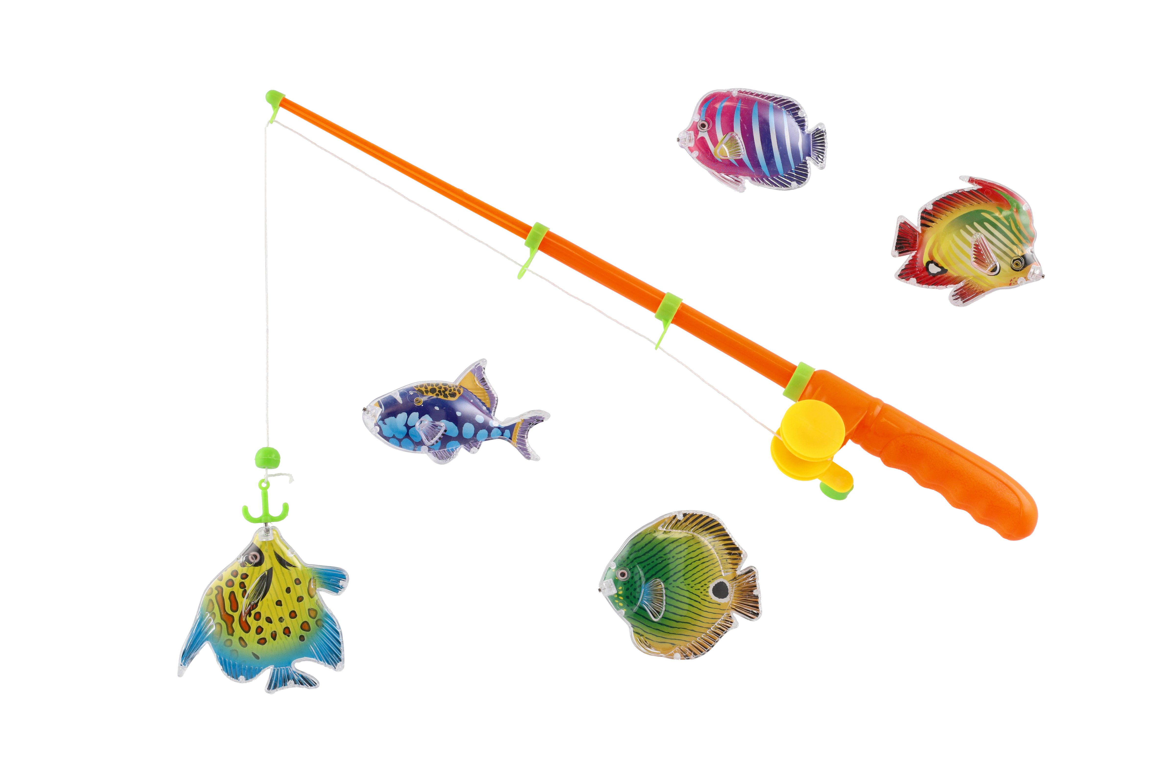 Teddies Spiel Fische/Angler magnetisch Kunststoff 5 Stk.+Rute Kunststoff 39cm 2 Farben auf Karte