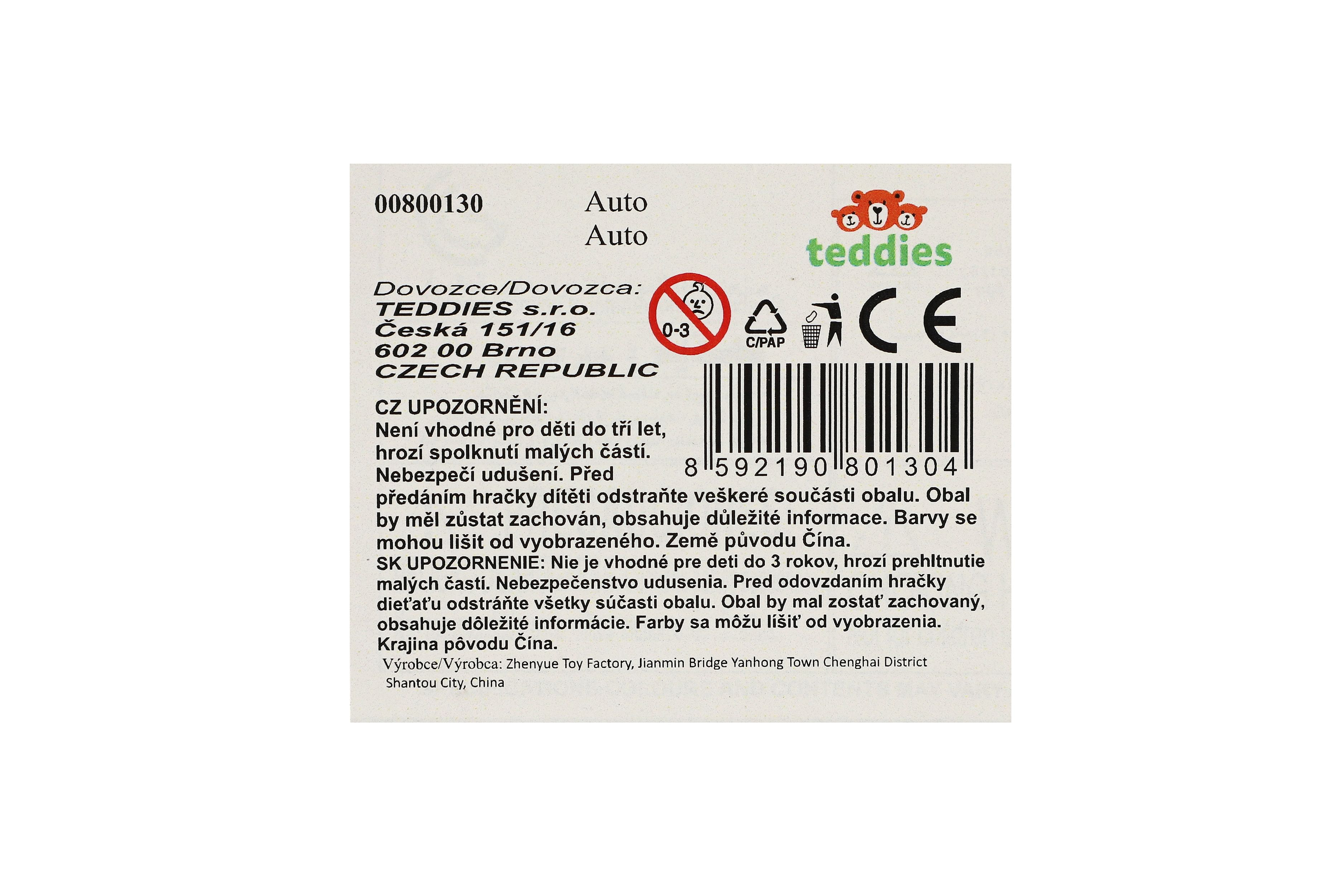 Teddies Auto Metall/Kunststoff 8cm mit Freilauf, Farbmix auf Karte 11x16,5cm