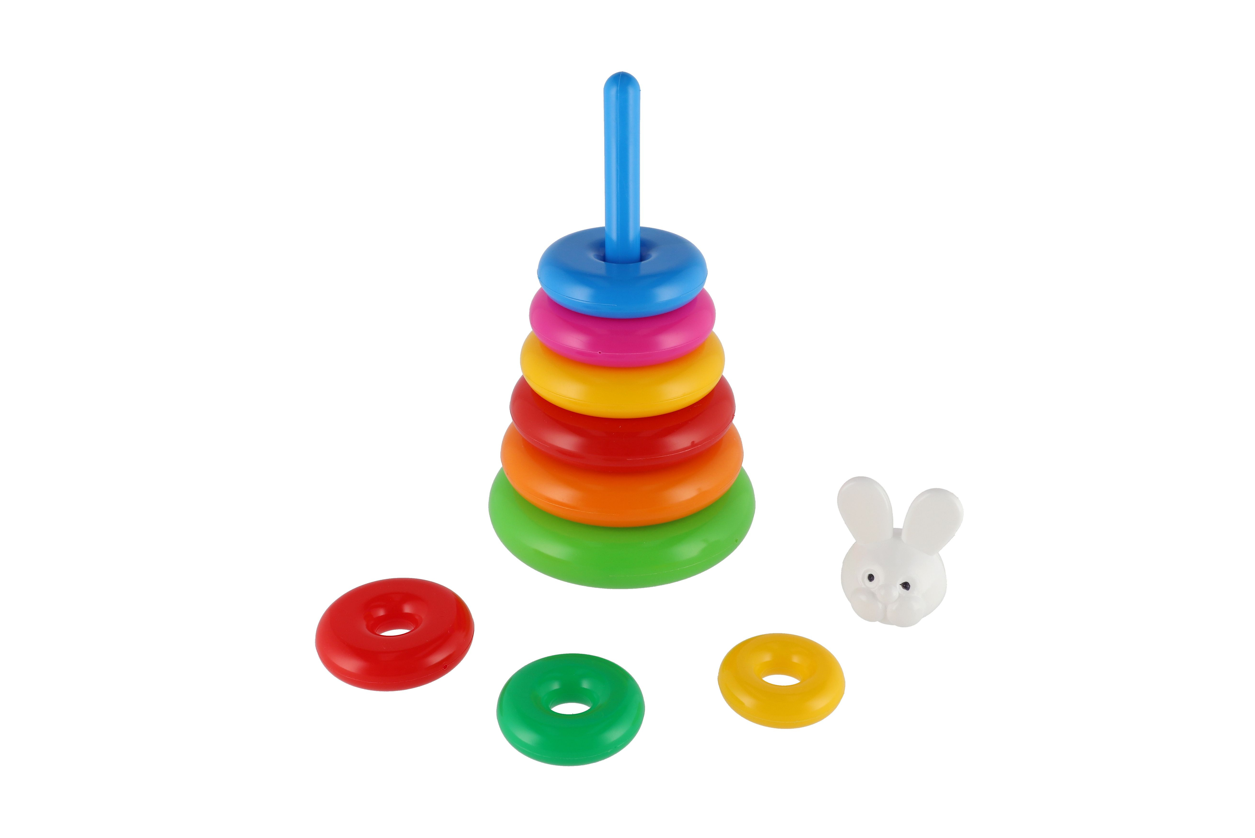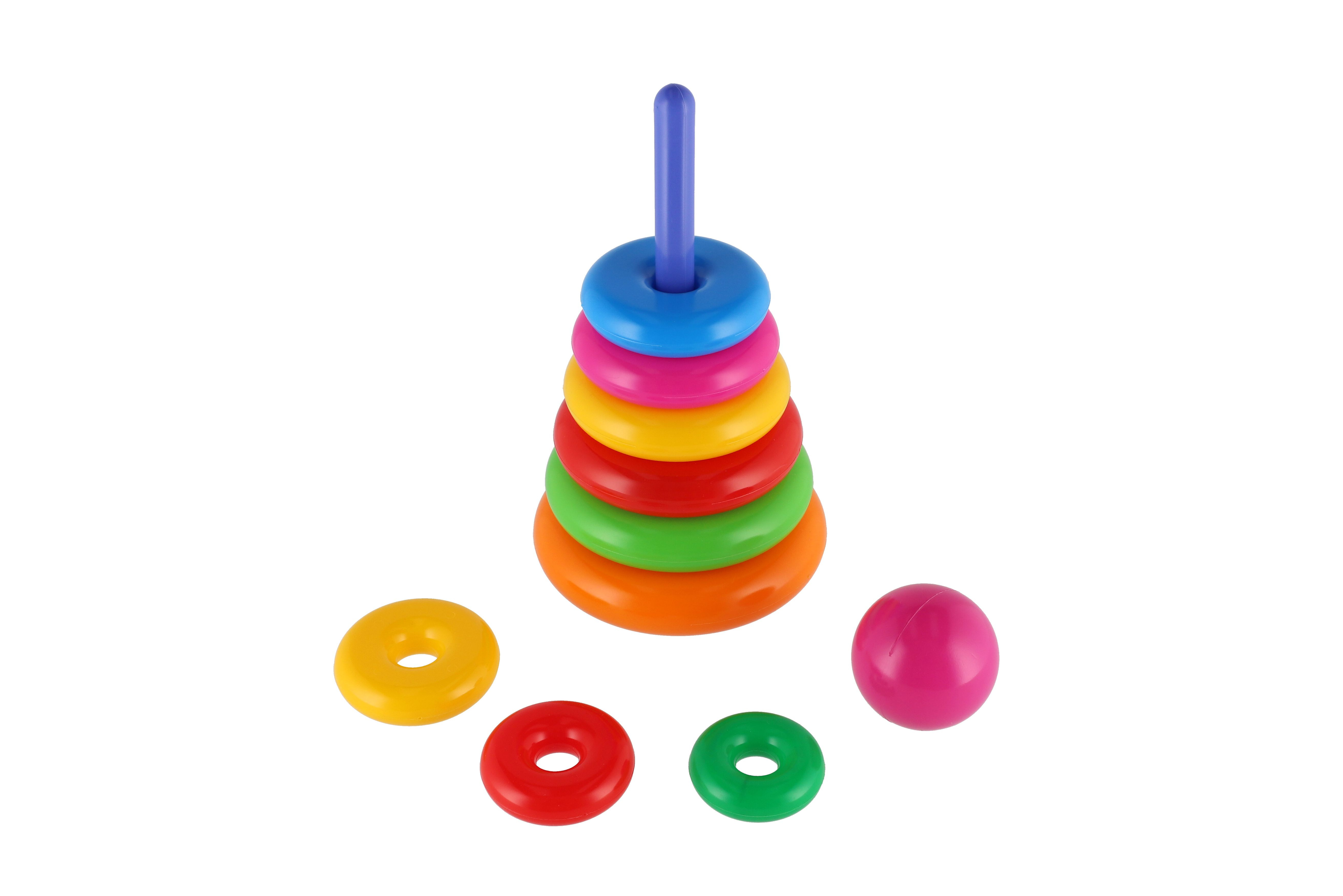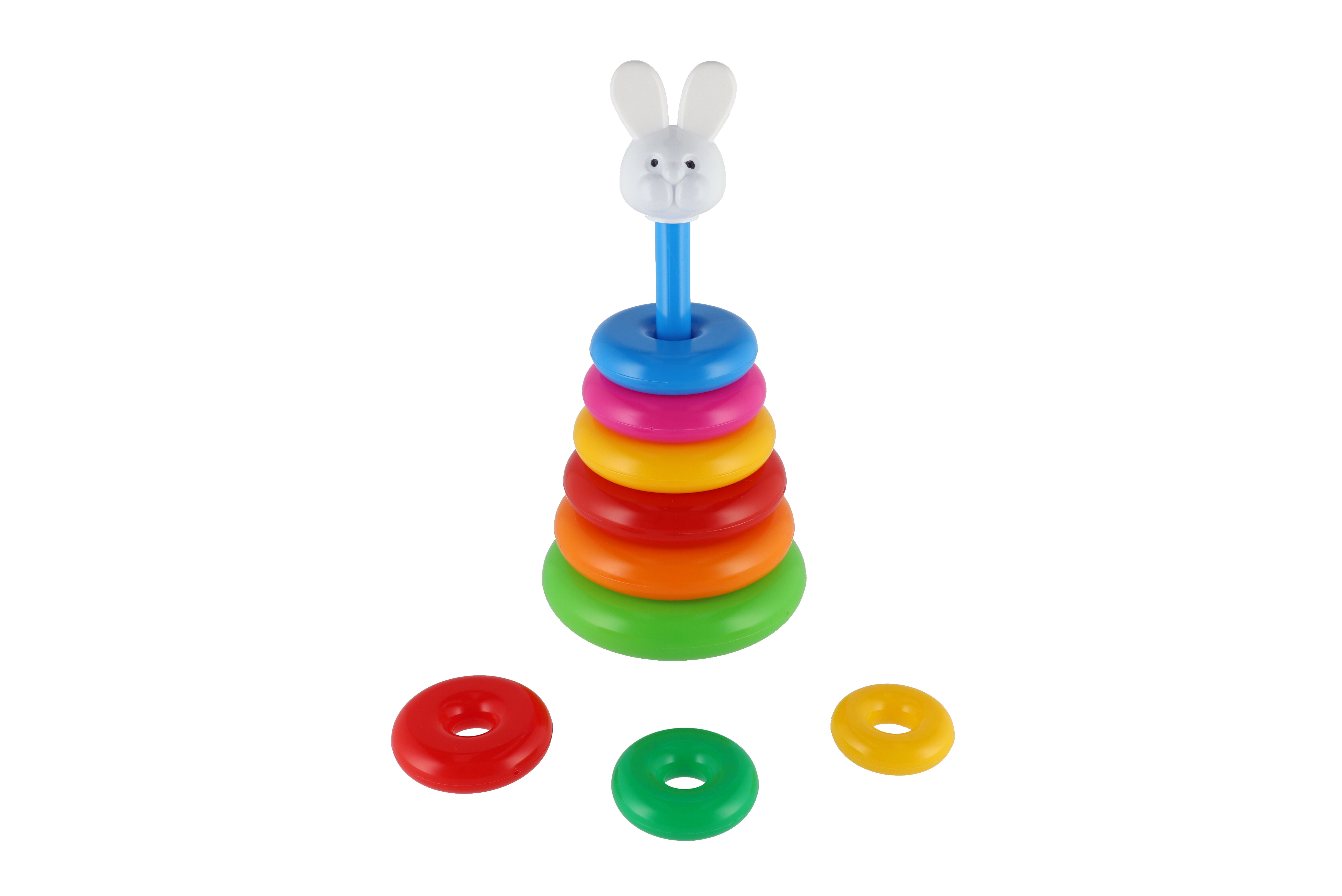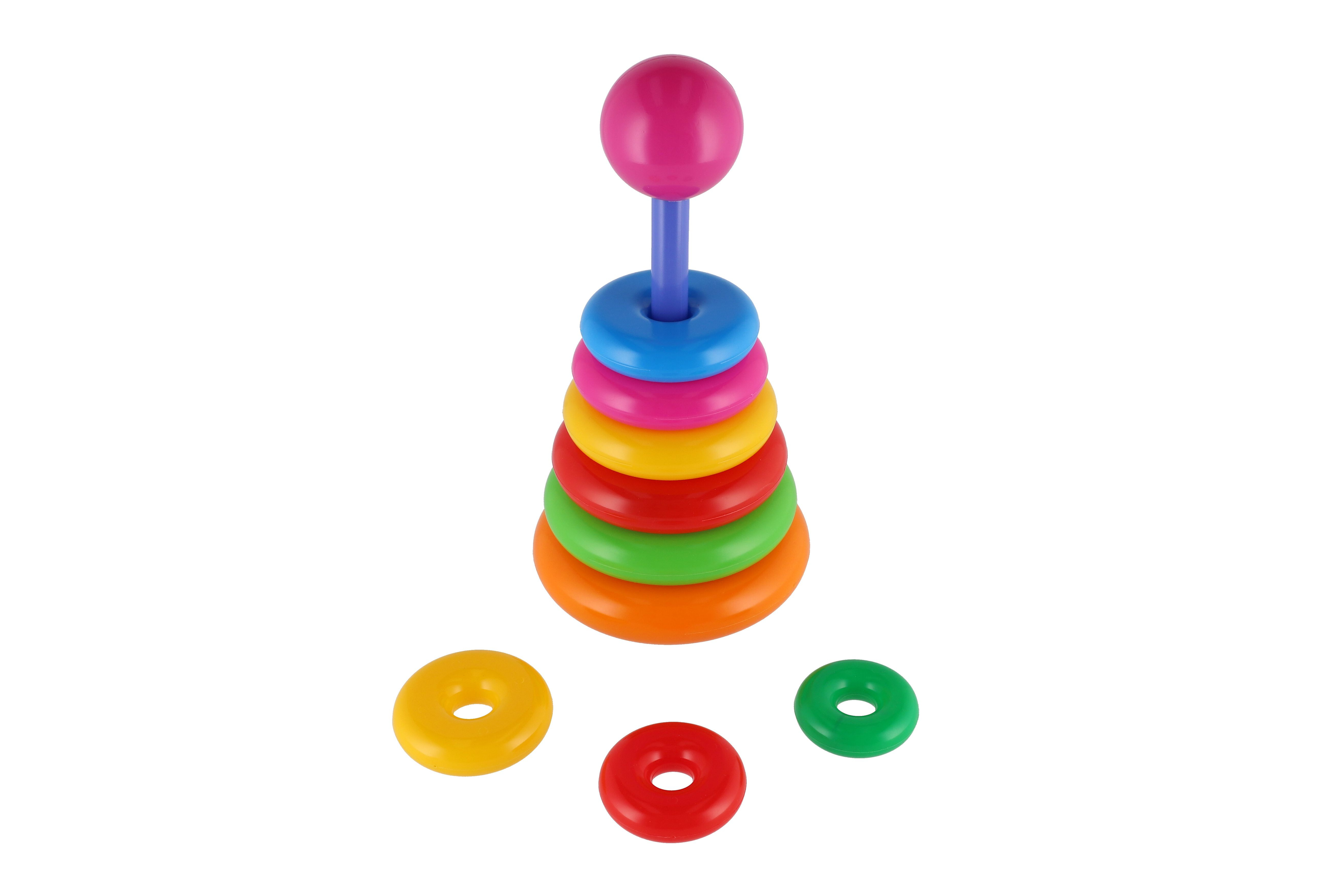 Teddies Stapelpyramide mit Ringen aus Kunststoff 28cm 2 Arten im Netz 12m+