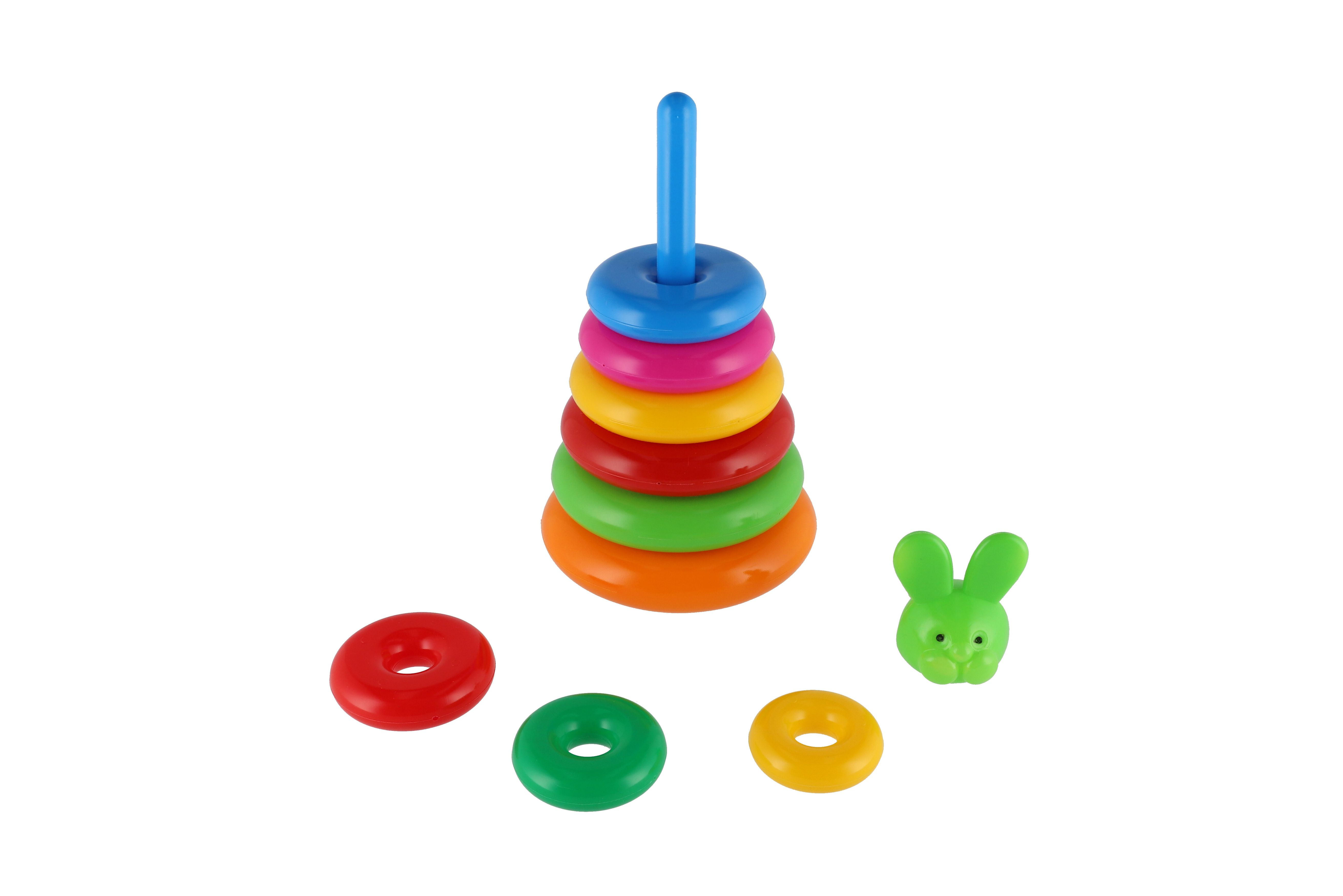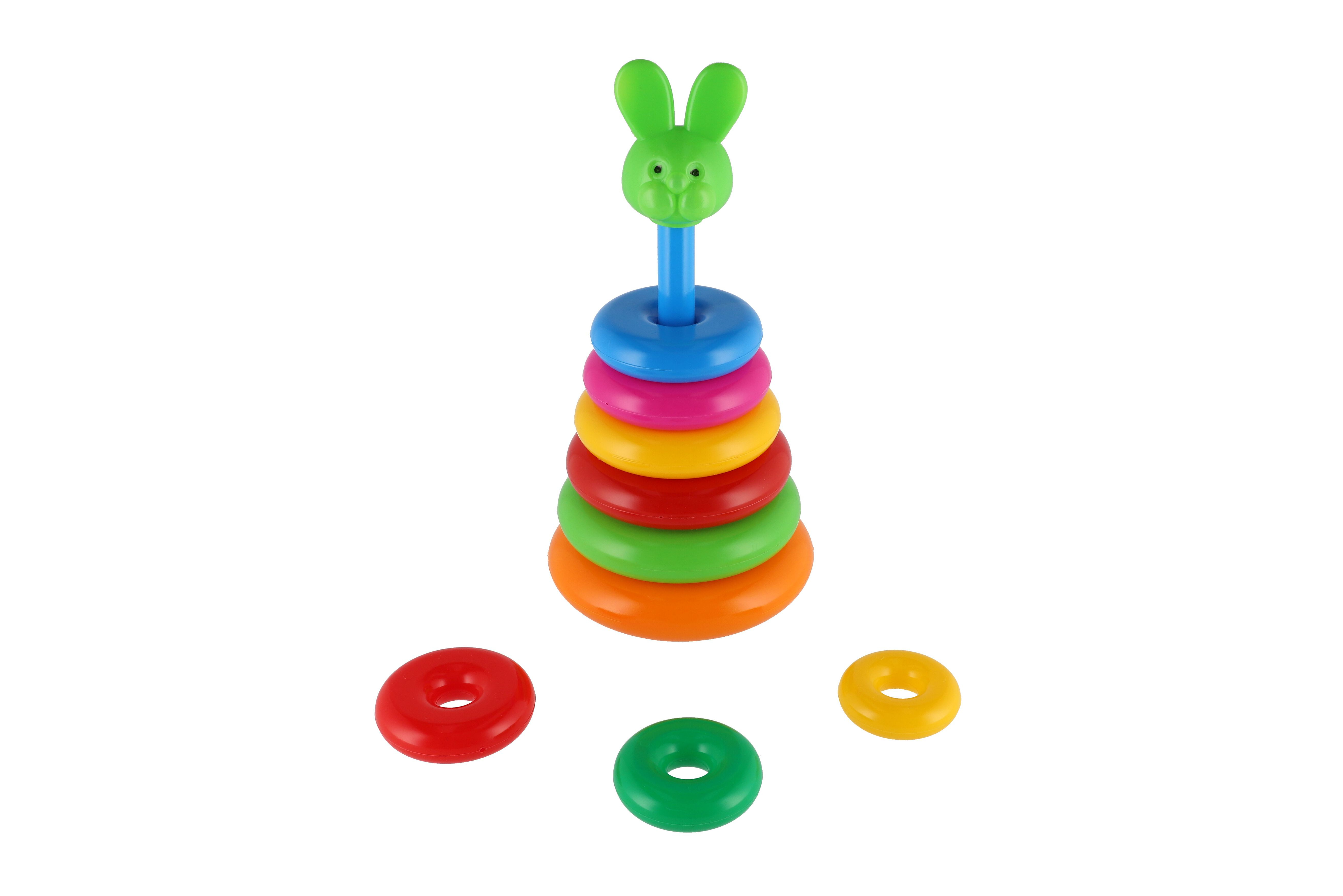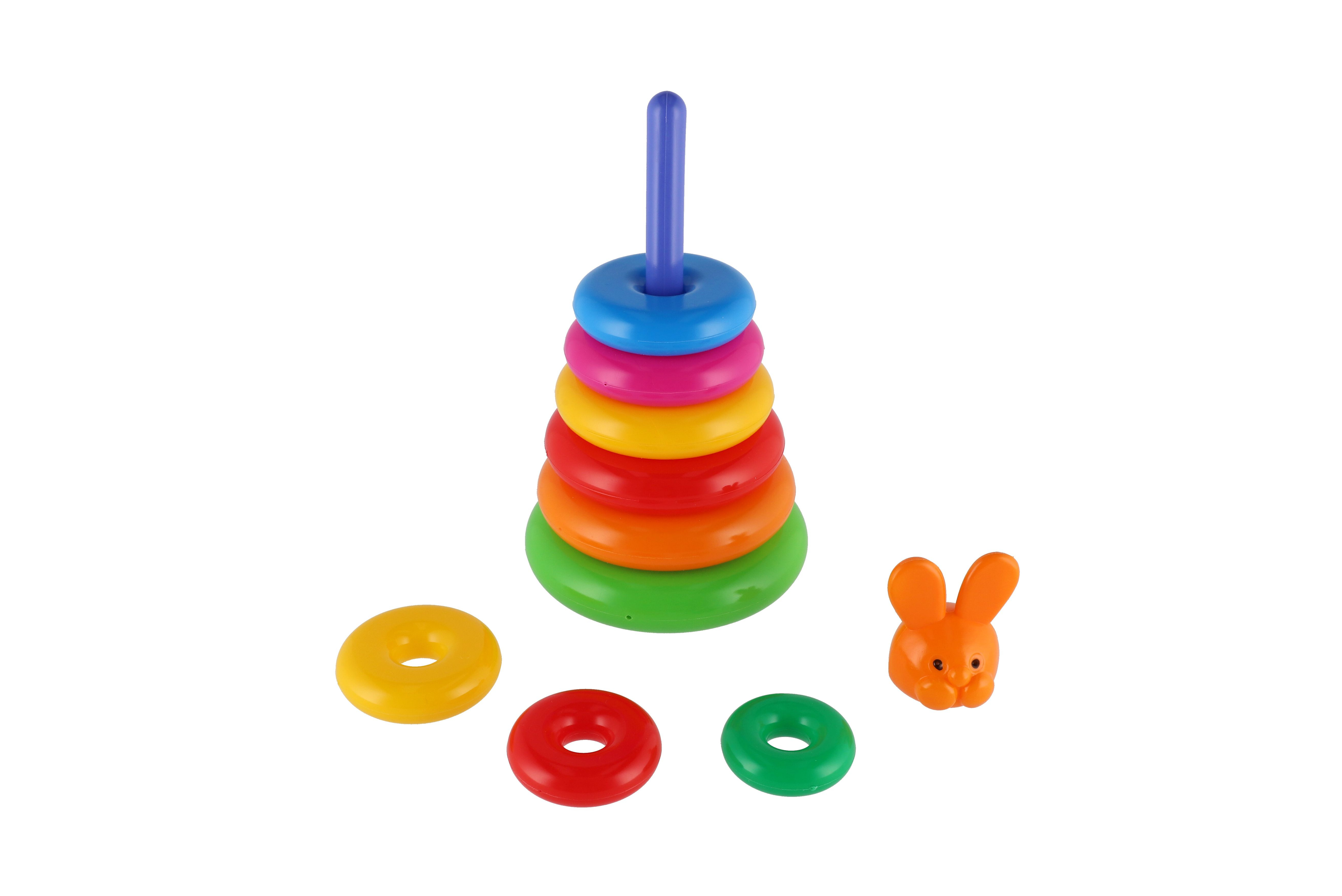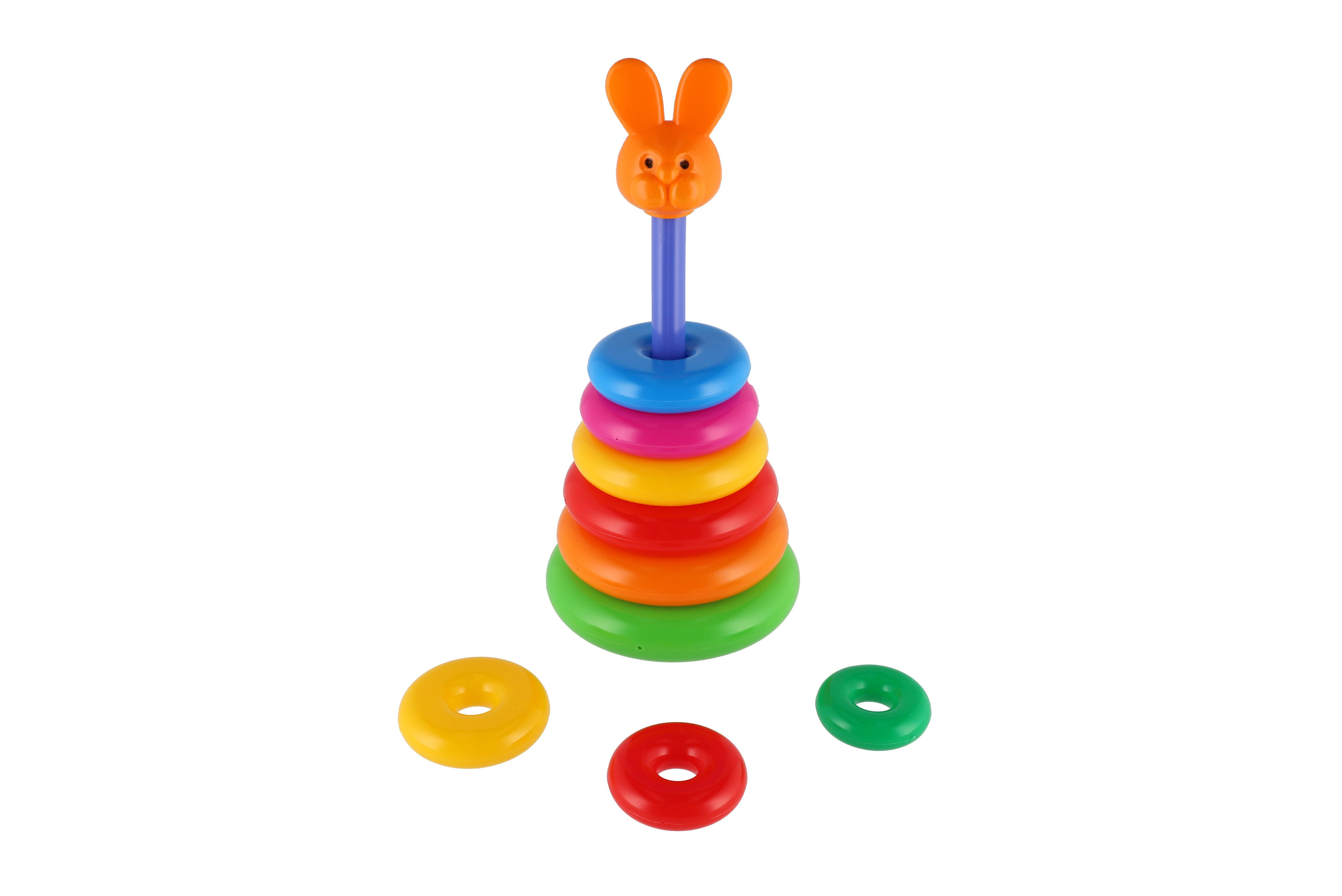Teddies Stapelpyramide mit Ringen aus Kunststoff 28cm 2 Arten im Netz 12m+