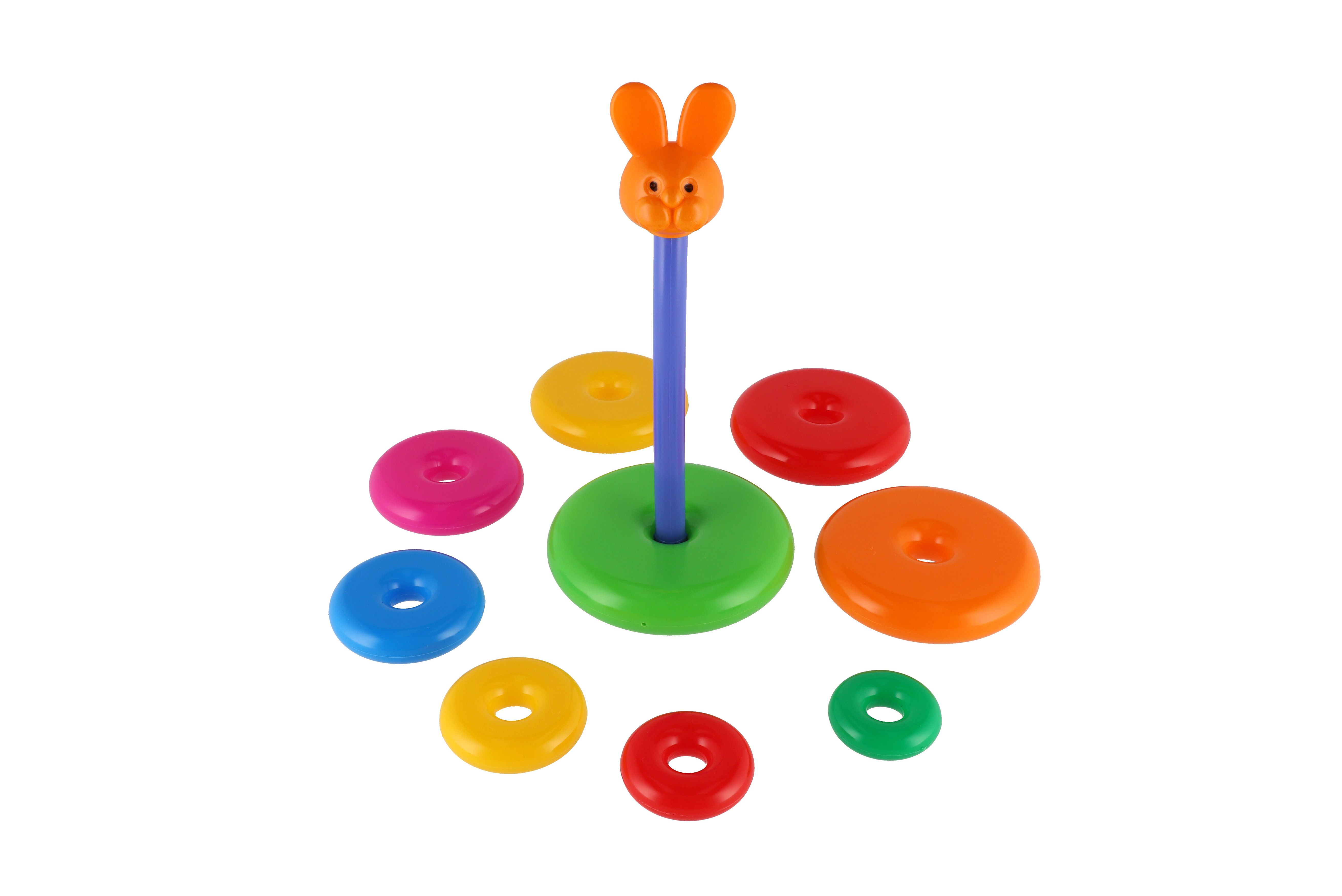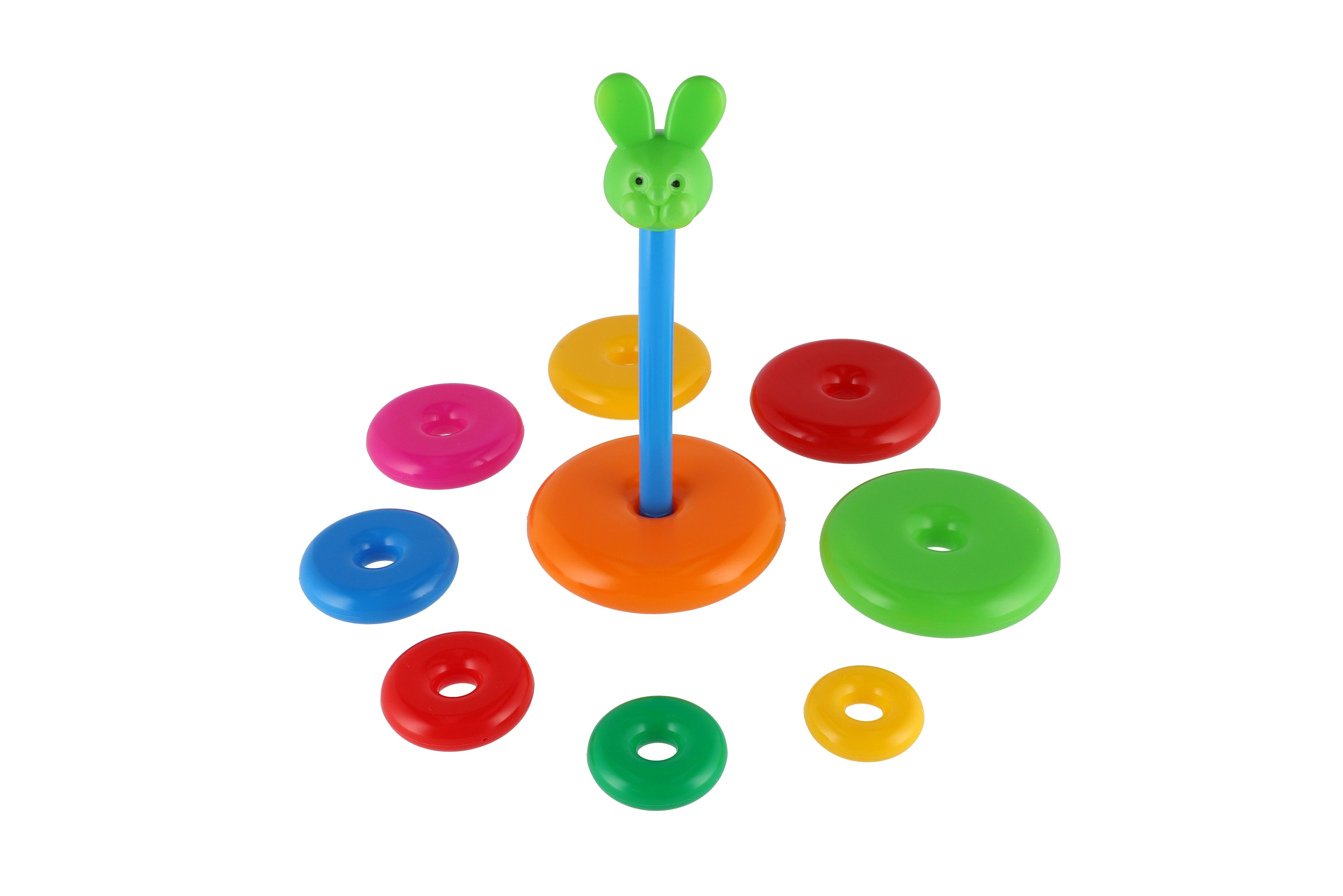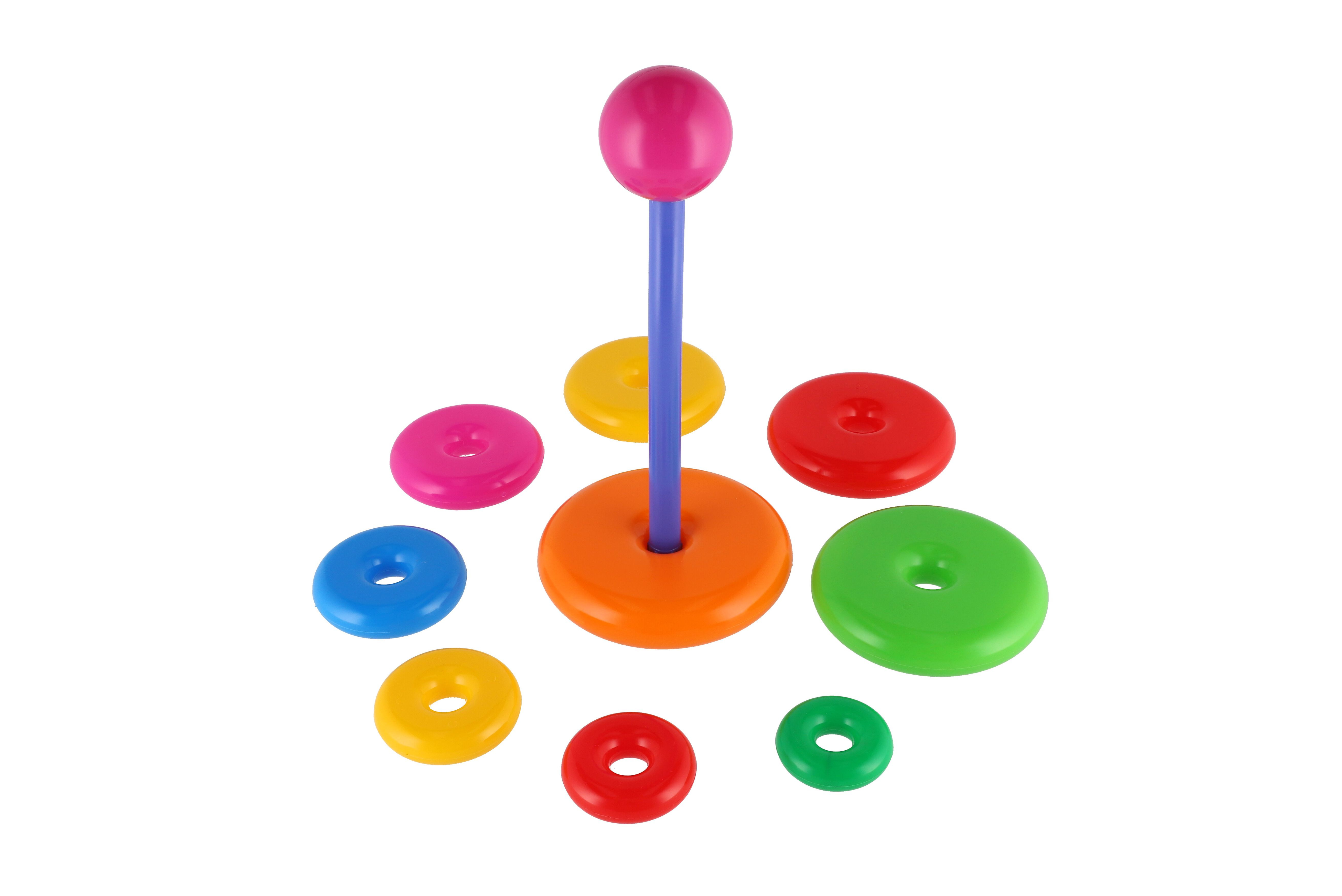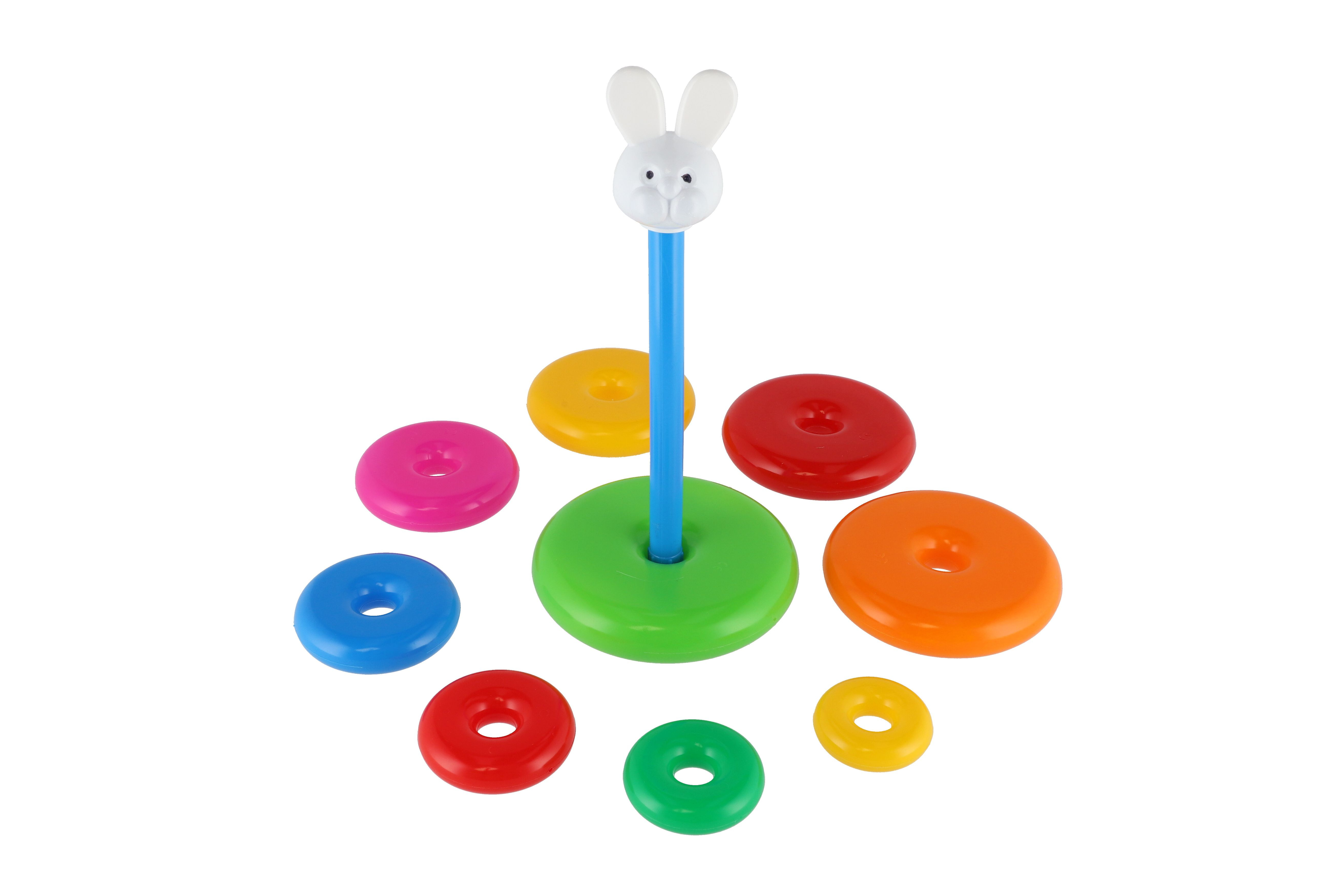 Teddies Stapelpyramide mit Ringen aus Kunststoff 28cm 2 Arten im Netz 12m+