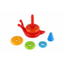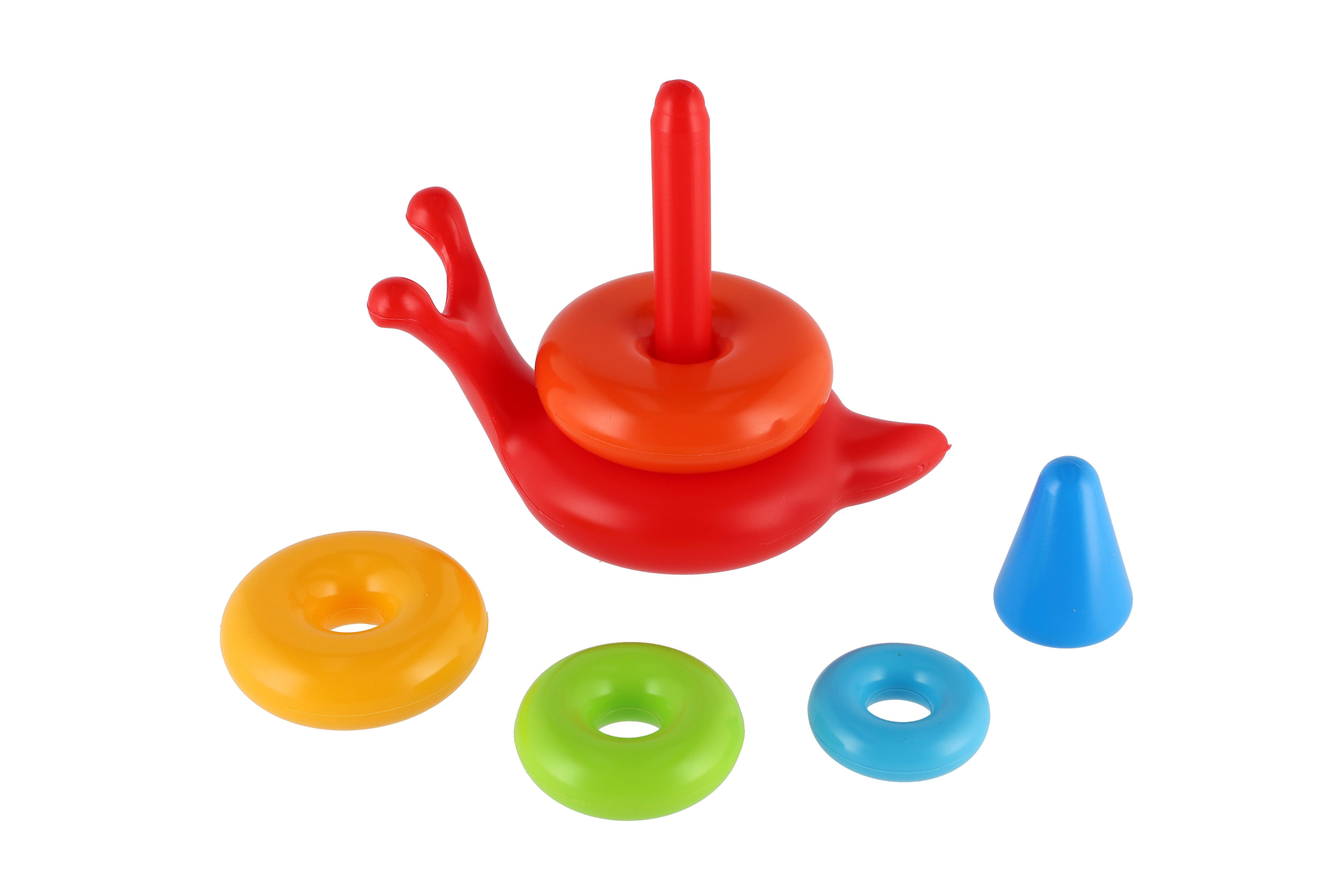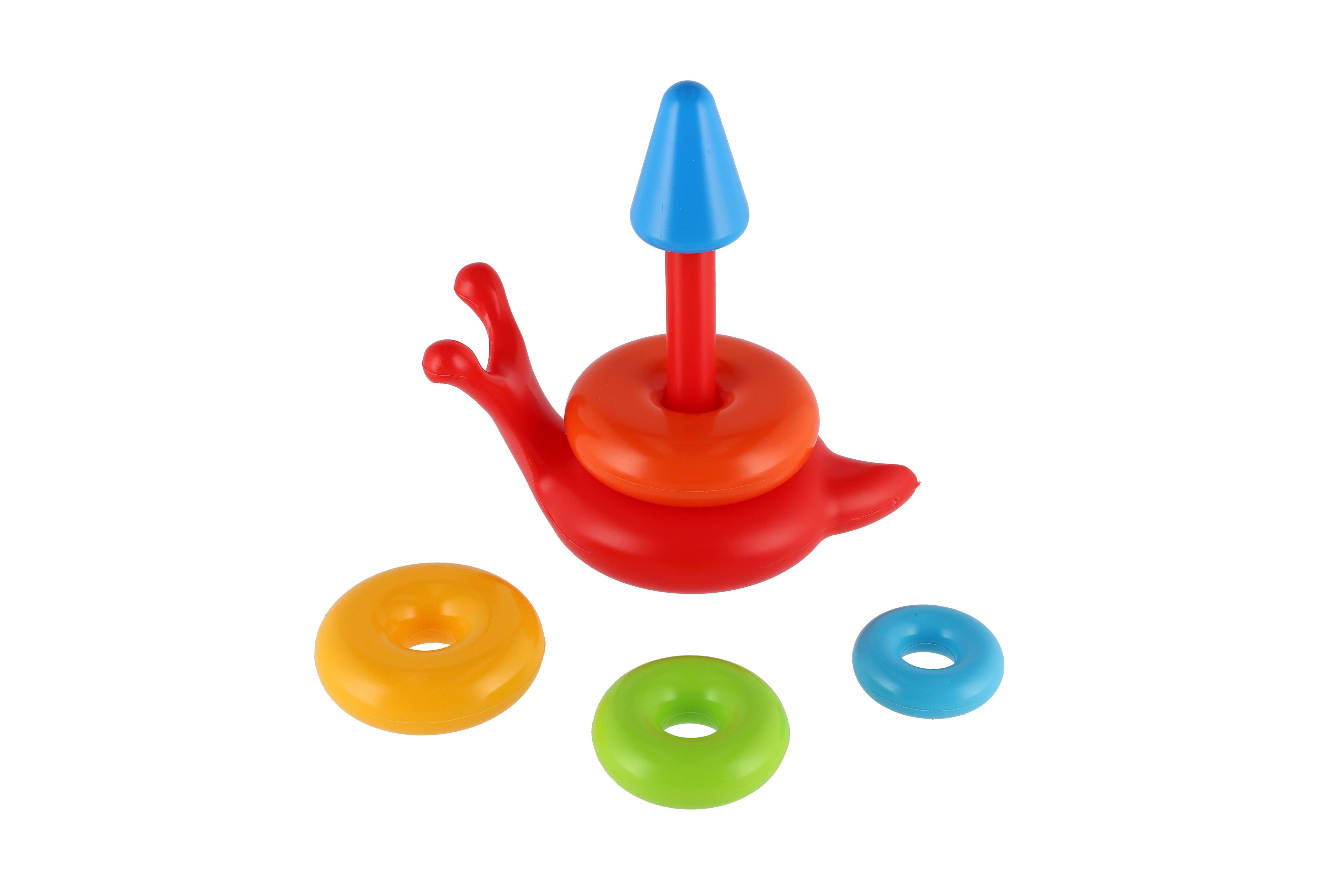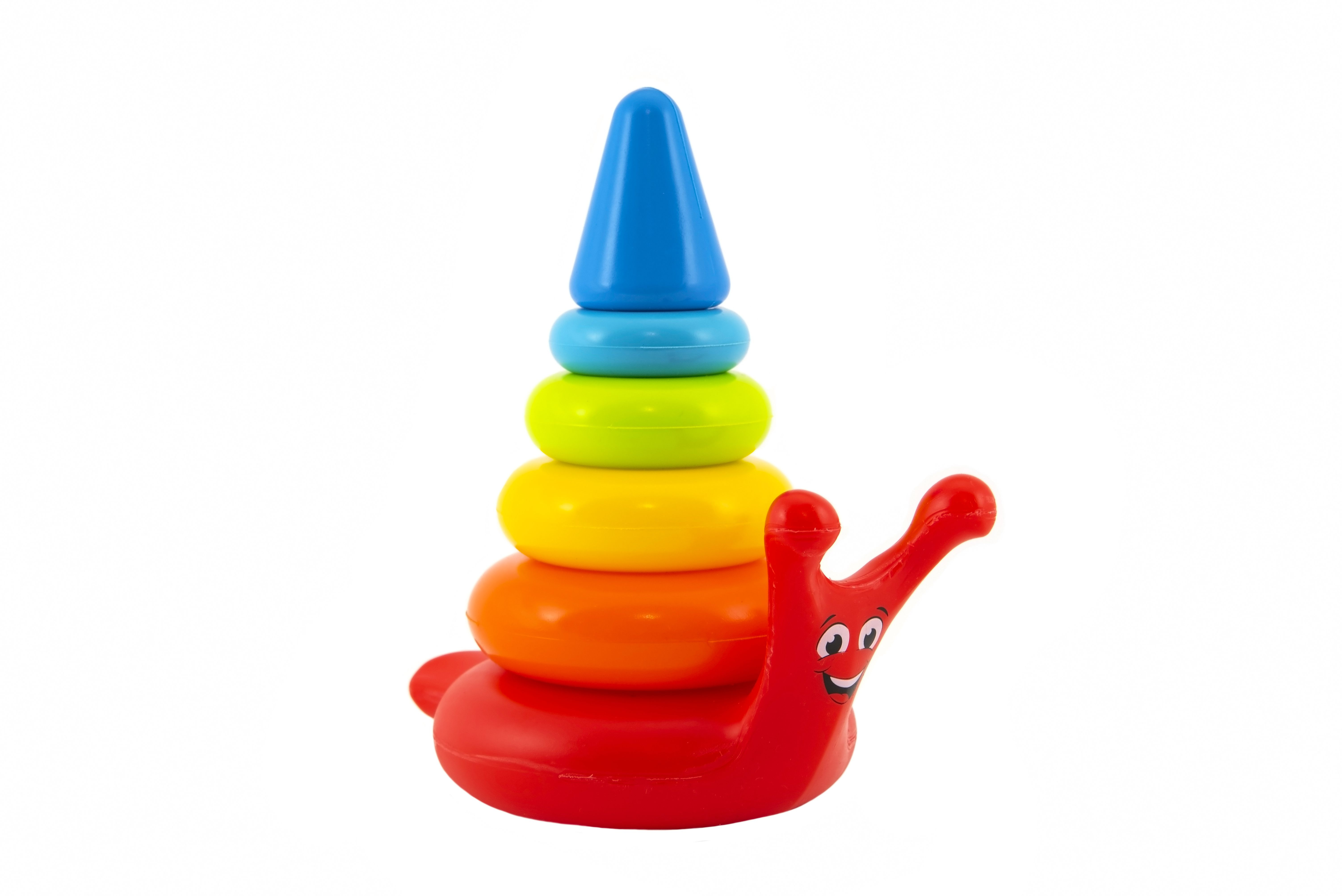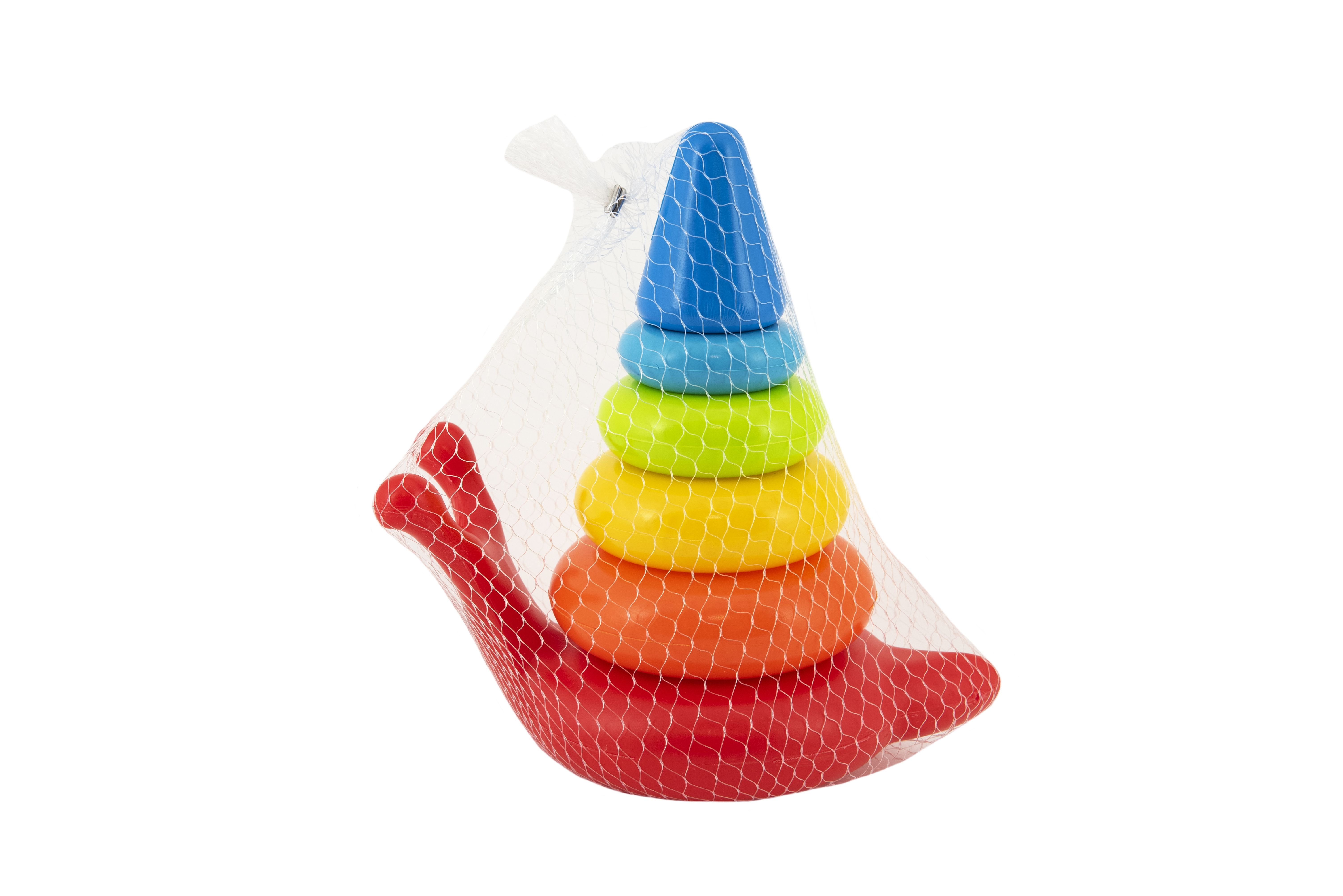 Diese farbenfrohe, regenbogenfarbene, faltbare Kunststoffpyramide ist das perfekte Spielzeug für die Kleinsten. Die bunten Ringe lassen sich der Größe nach übereinander stapeln. Schneckenmotiv. Entwickelt visuelle Stimulation, motorische Fähigkeiten und Handkoordination. Geeignet für Kinder ab 12 Monaten.