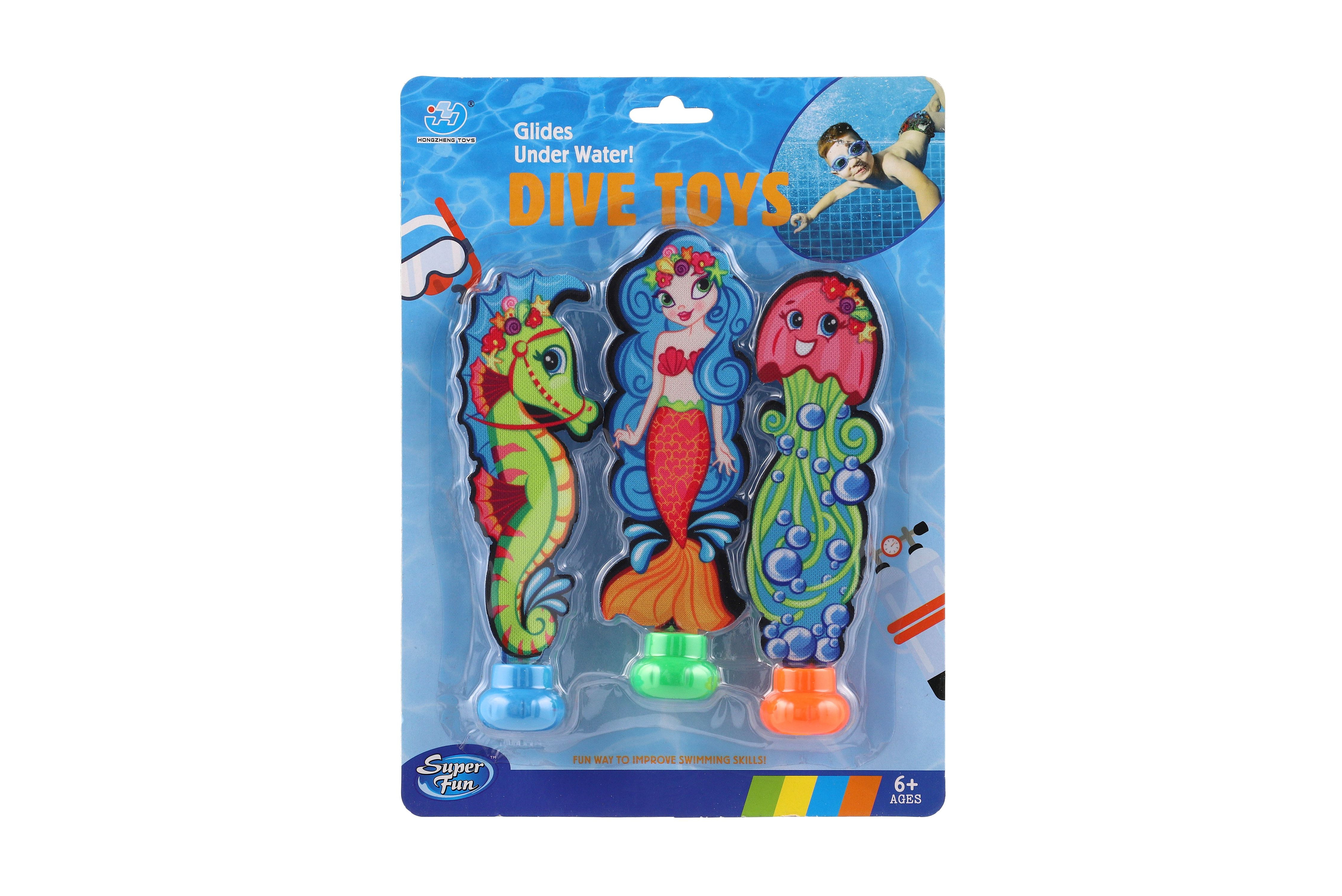 Teddies Tauchset aus Kunststoff, 2 Arten auf Karte 19x25,5cm