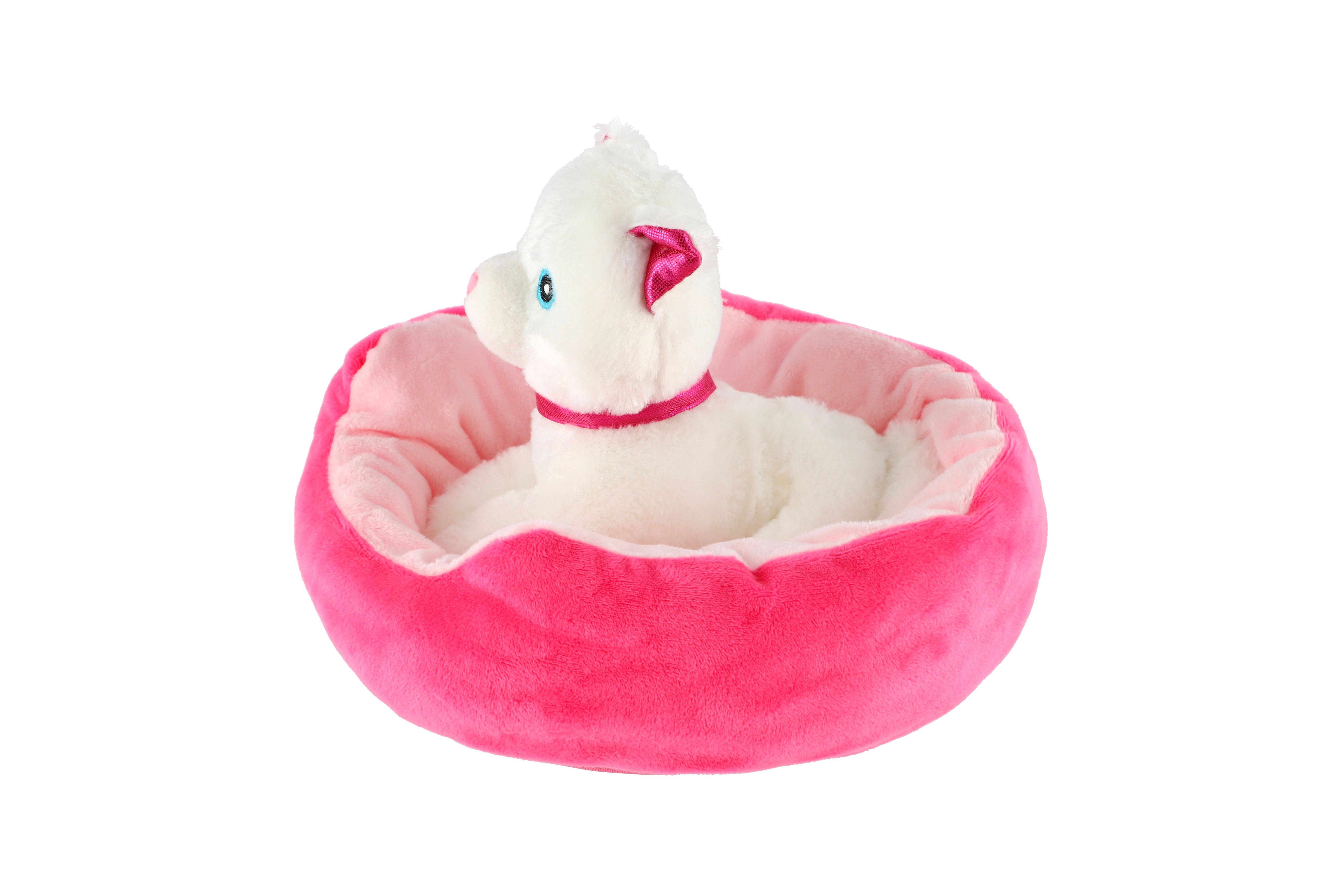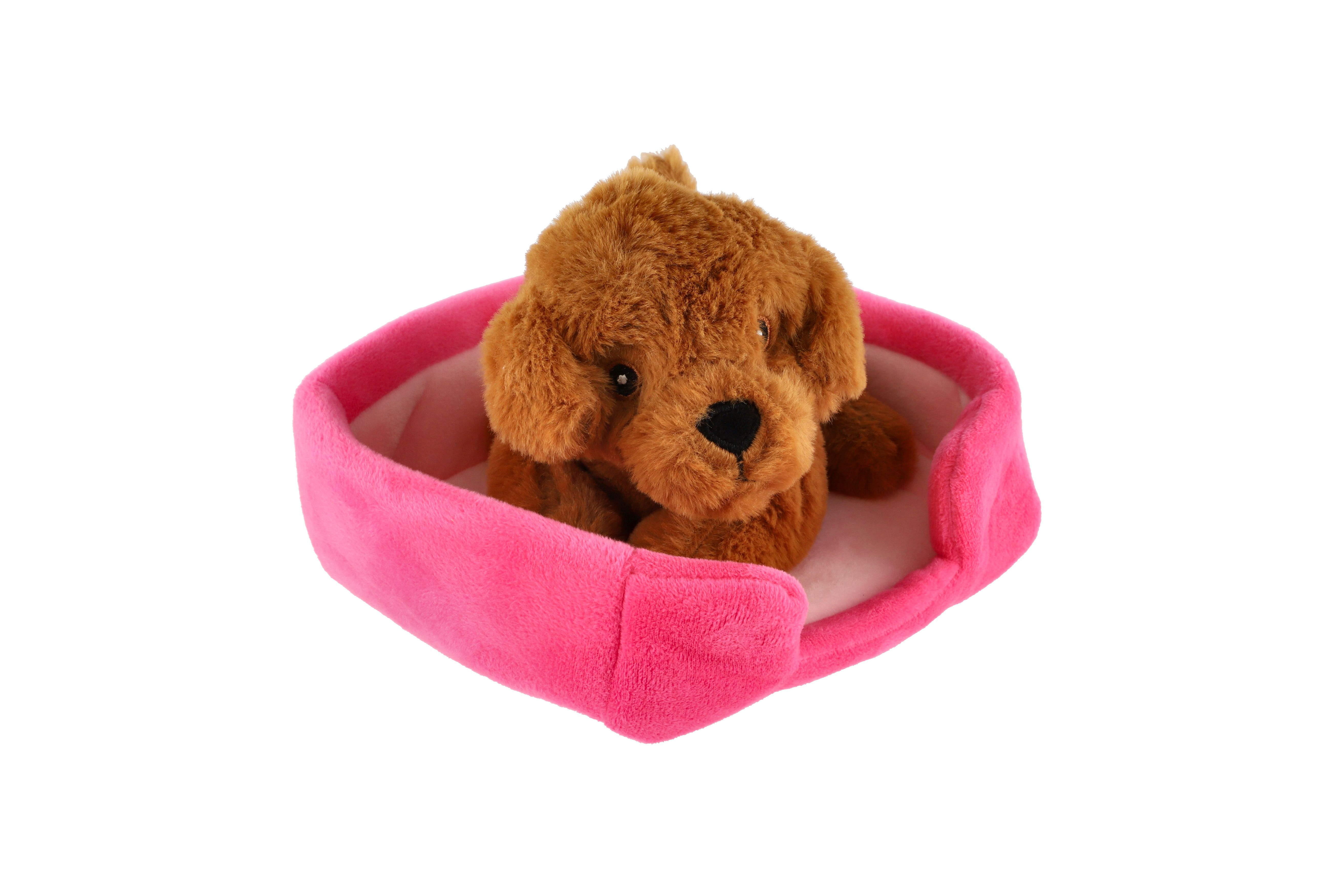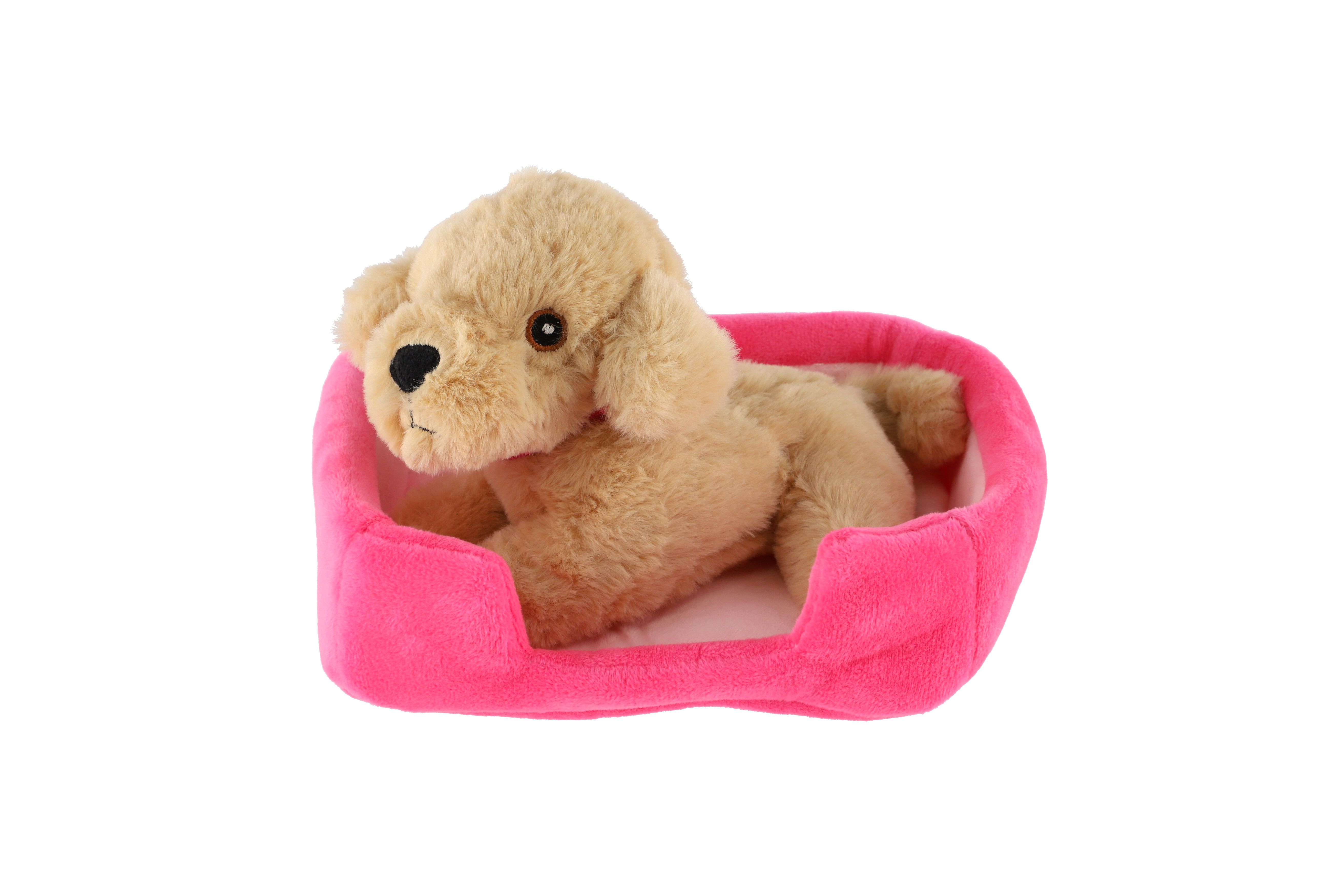 Ein entzückender Hund, der sogar sein eigenes Bett hat. Geben Sie Ihrem tierischen Freund mit dem Bett einen Platz zum Schlafen und Ausruhen. Es wartet dort auf Sie, wenn Sie vom Kindergarten oder der Schule nach Hause kommen! Kinderbettgröße: 22 x 24 cm. Geeignet für Kinder ab 2 Jahren.