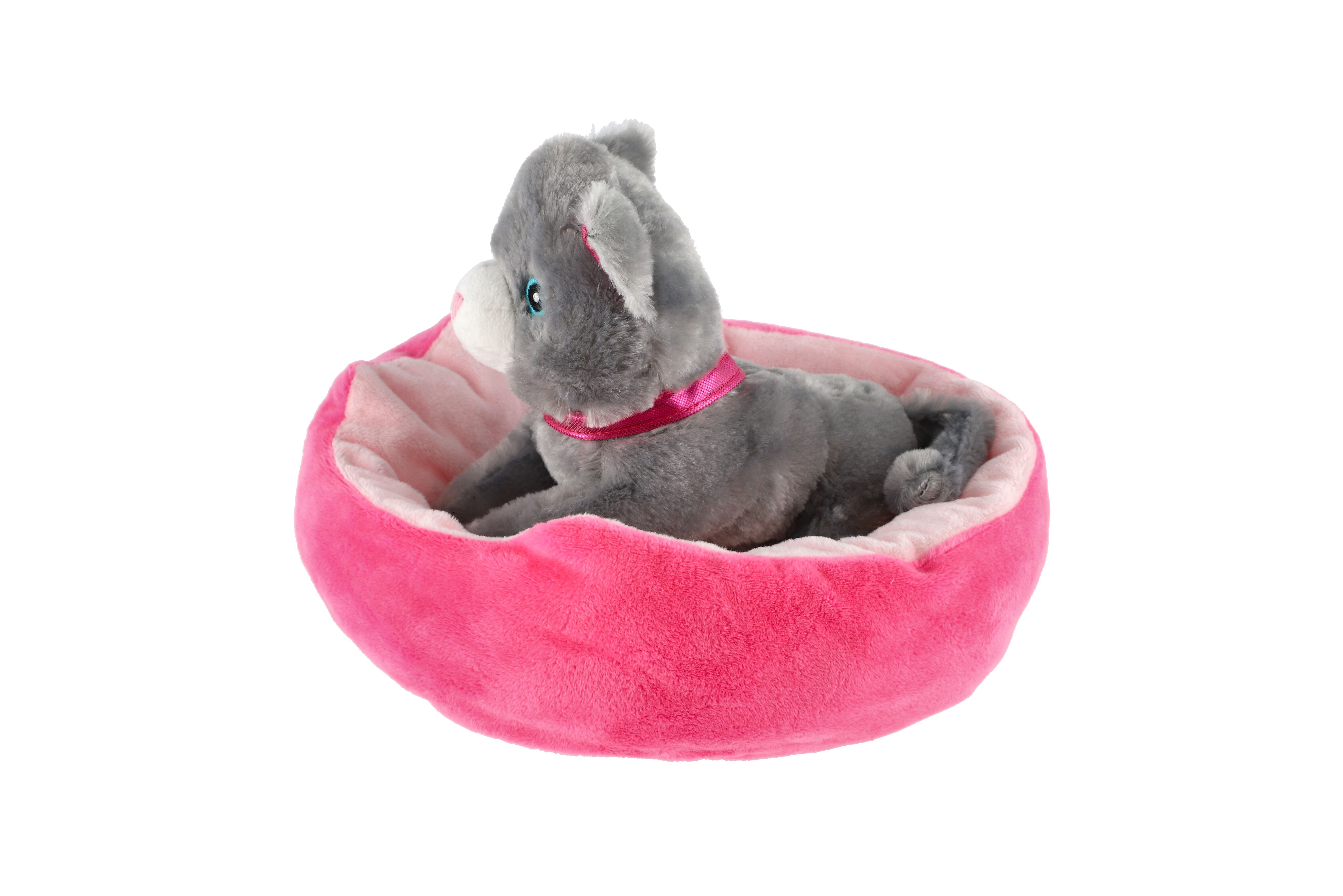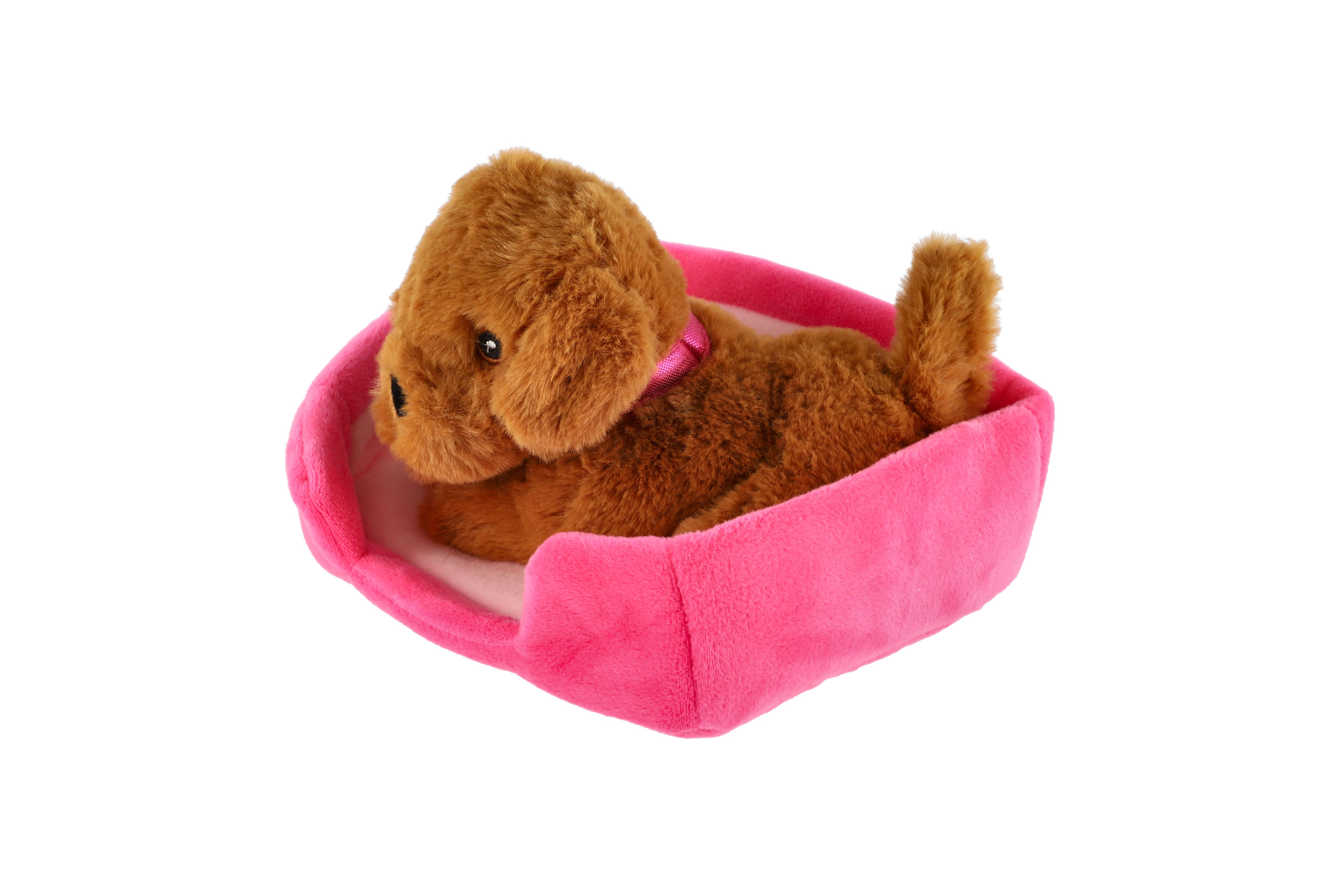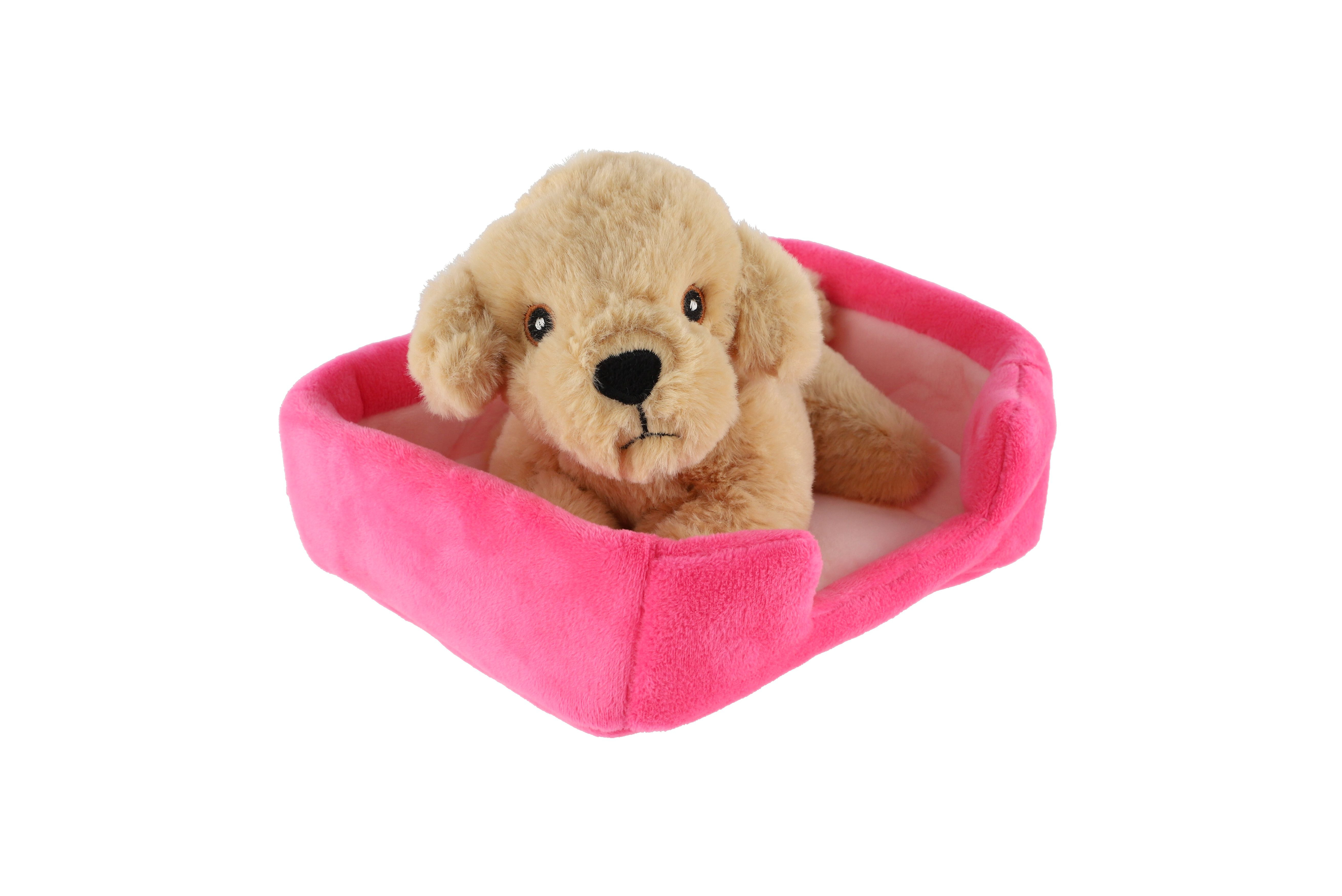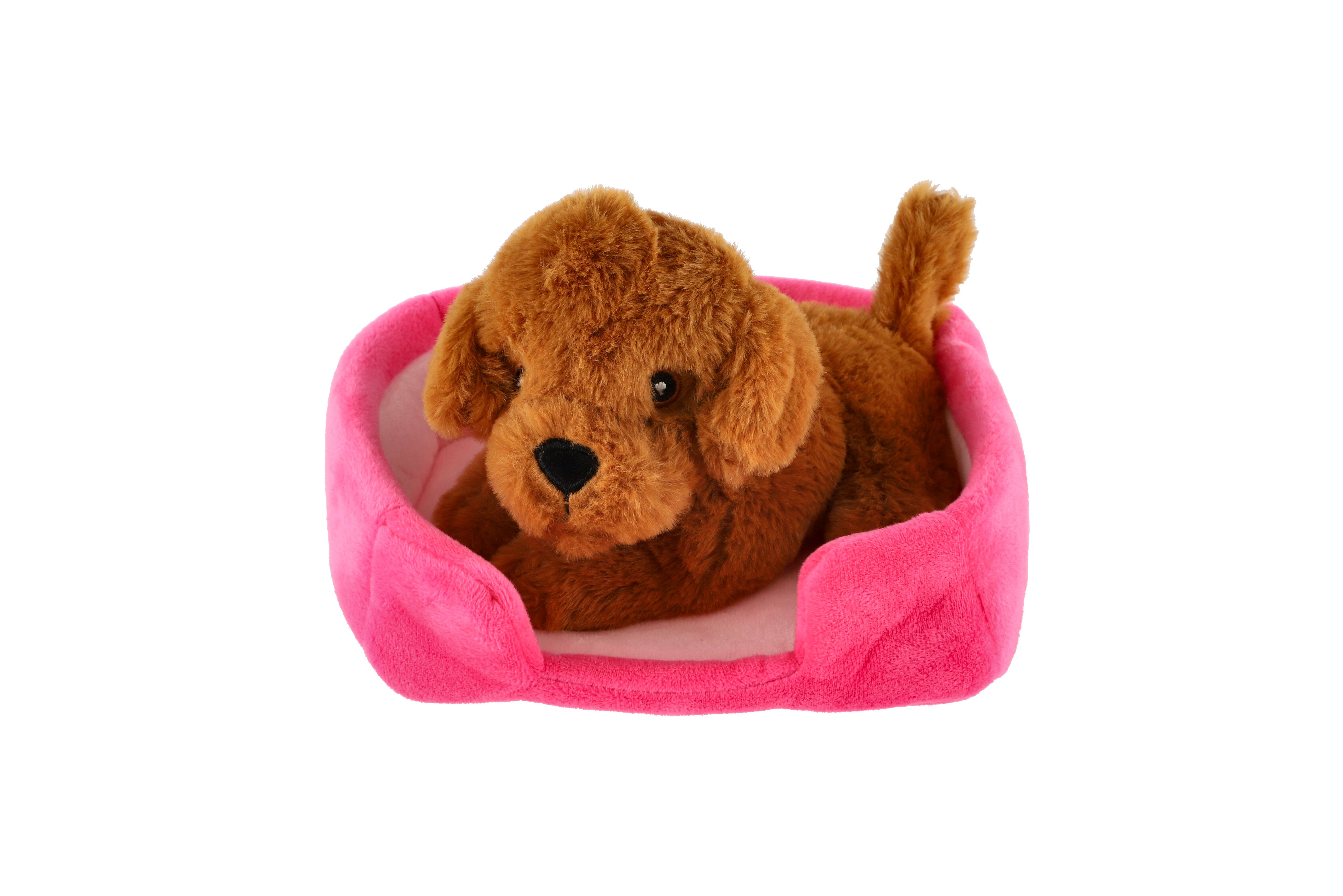 Ein entzückender Hund, der sogar sein eigenes Bett hat. Geben Sie Ihrem tierischen Freund mit dem Bett einen Platz zum Schlafen und Ausruhen. Es wartet dort auf Sie, wenn Sie vom Kindergarten oder der Schule nach Hause kommen! Kinderbettgröße: 22 x 24 cm. Geeignet für Kinder ab 2 Jahren.
