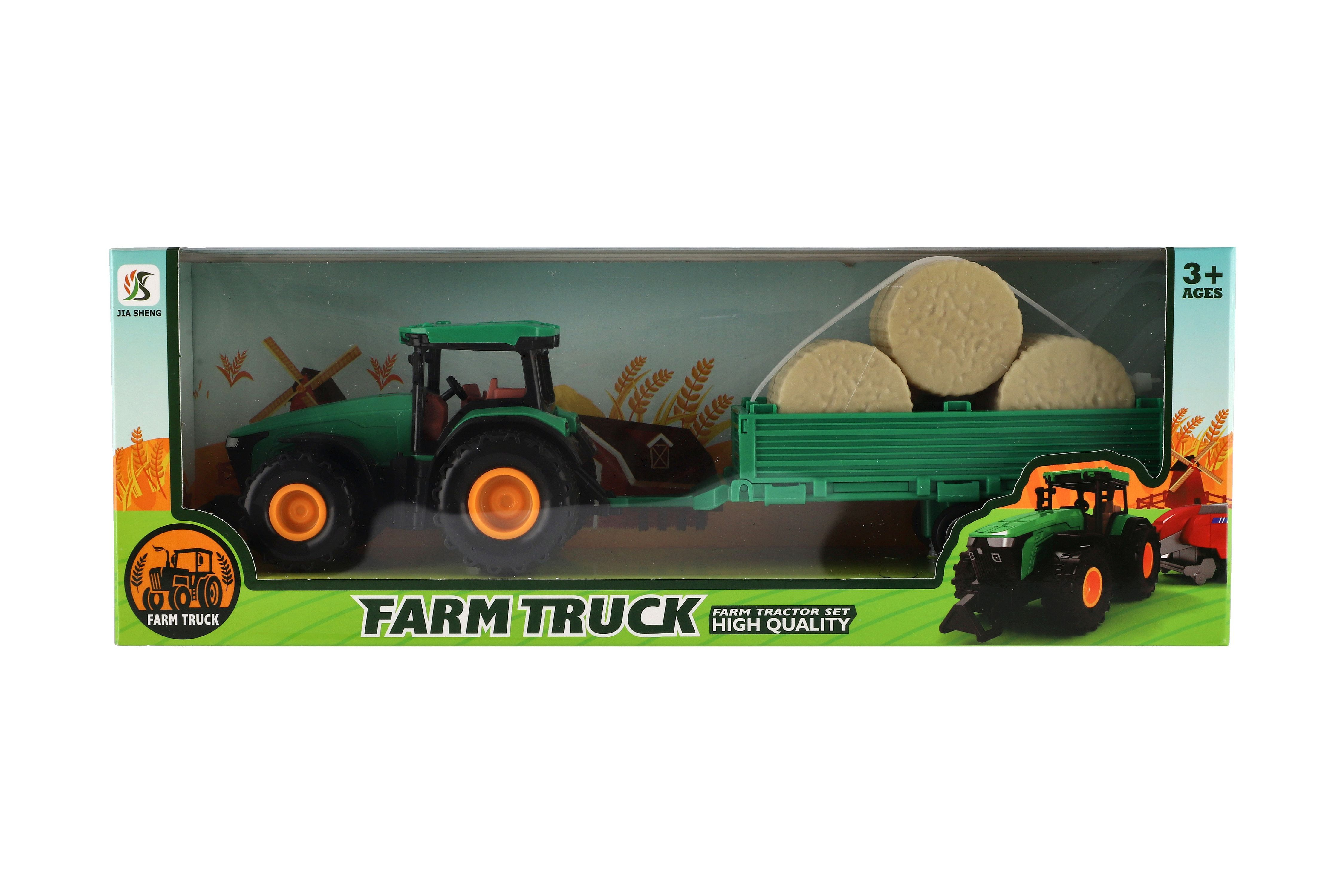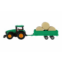 Pro každého malého zemědělce je nepostradatelným, všestranným pomocníkem traktor s přívěsem. Traktor je na setrvačník a je velikosti 30 cm. Nekonečná práce na farmě může začít. Vlek s balíkama je možné odpojit. Rozměry balení 33 x 12 x 9 cm. Vhodné pro děti od 3 let.