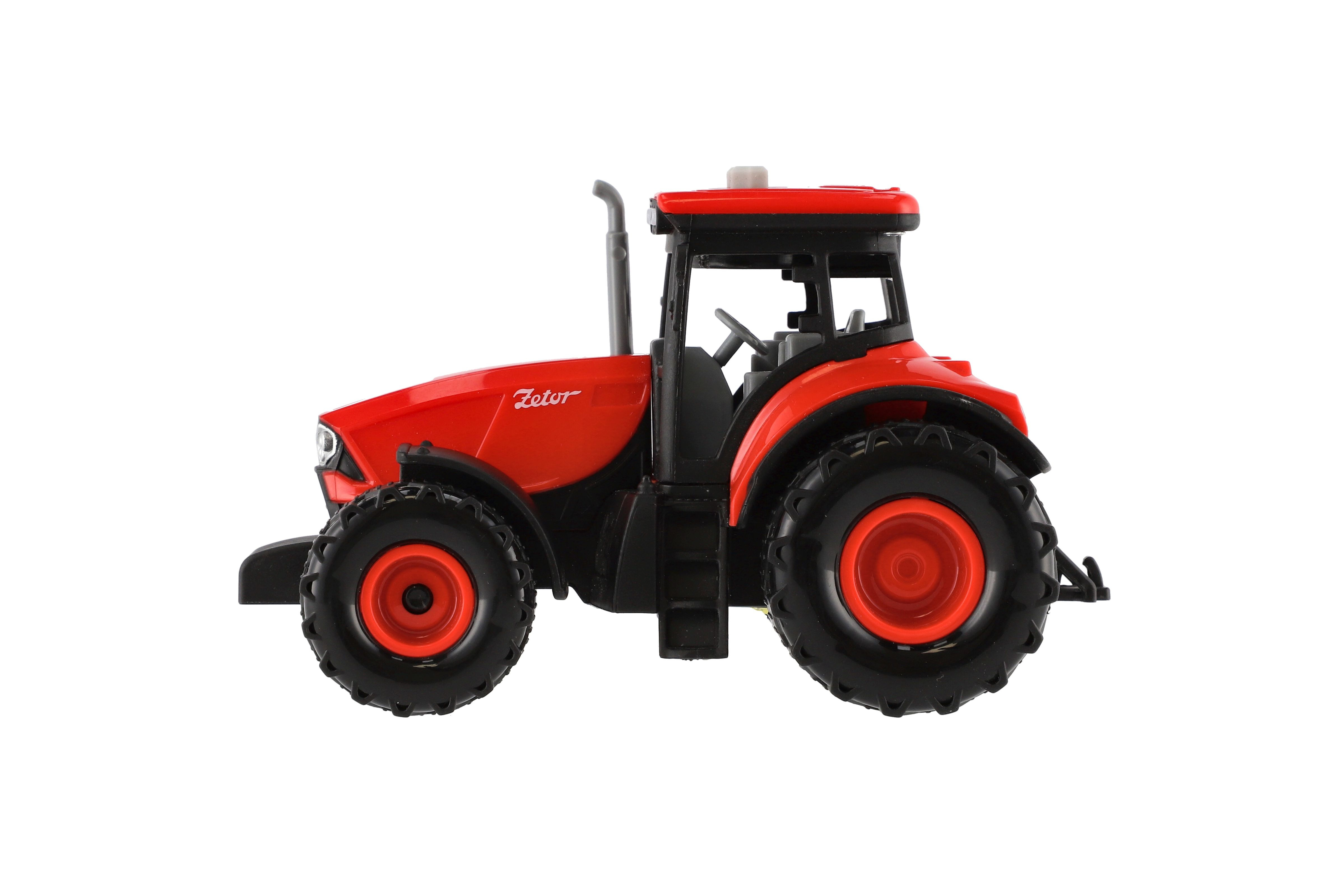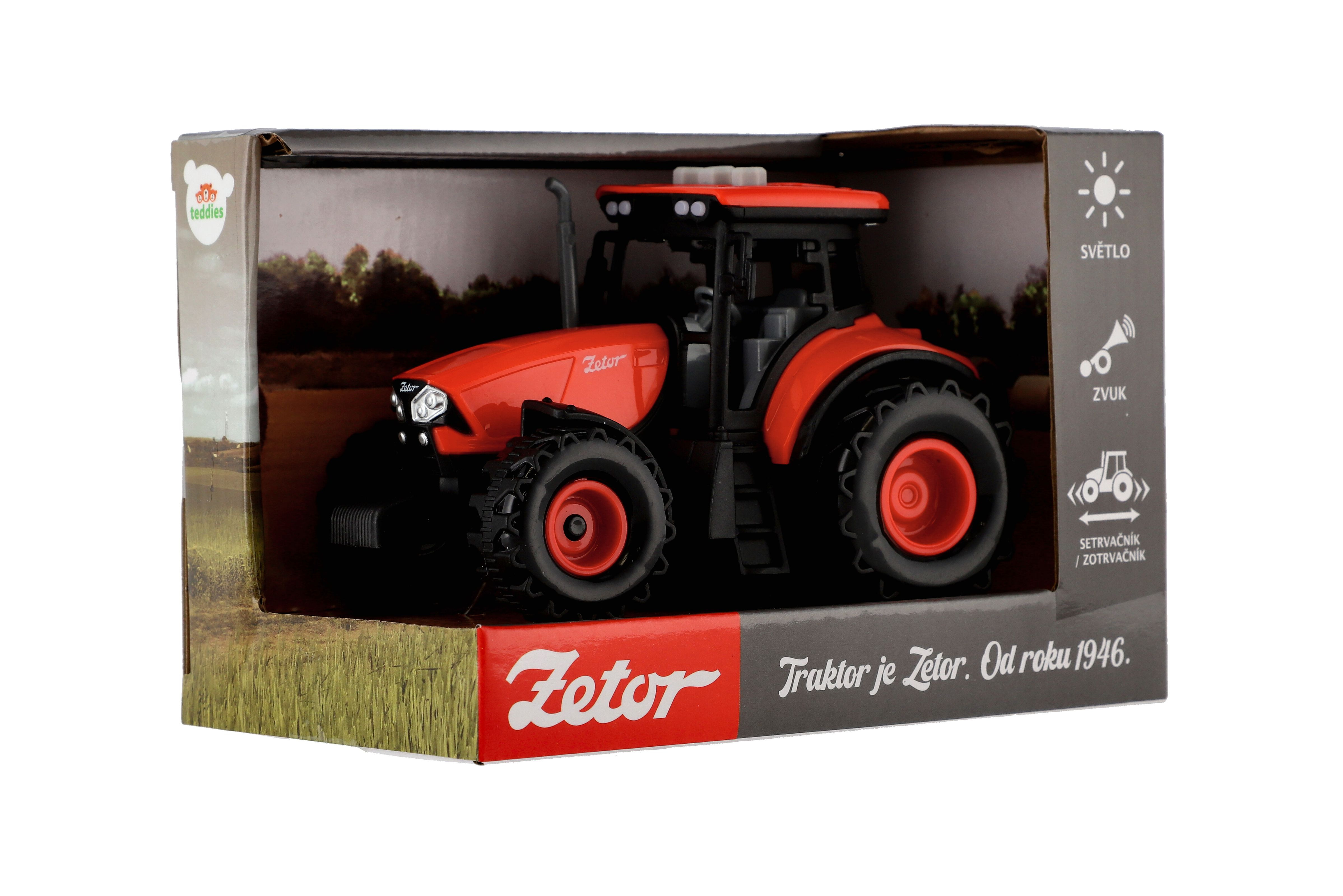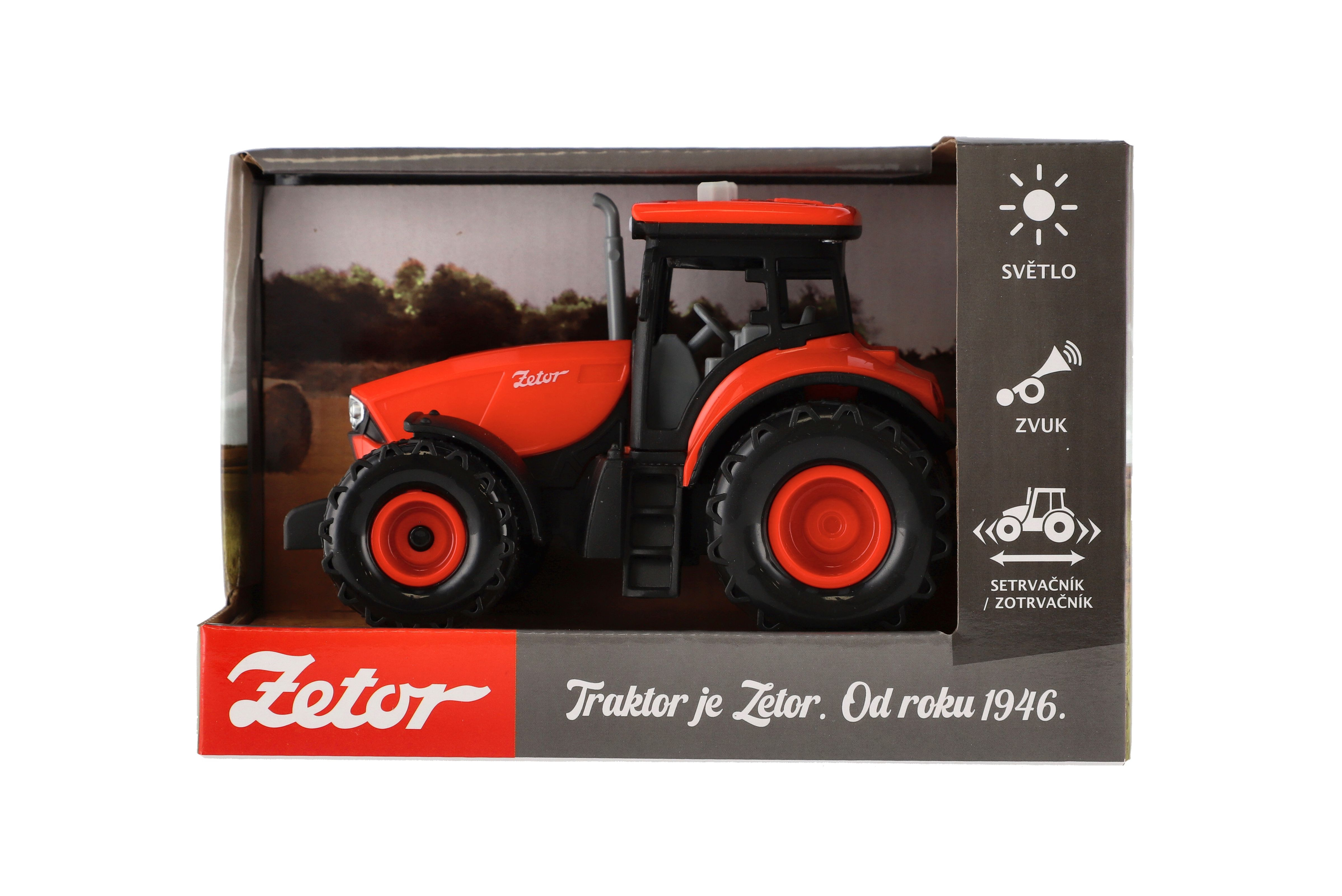 Teddies Traktor Zetor Kunststoff 9x14cm mit Schwungrad auf Batterie. mit Licht und Ton in einer Box 18x12x10,5cm