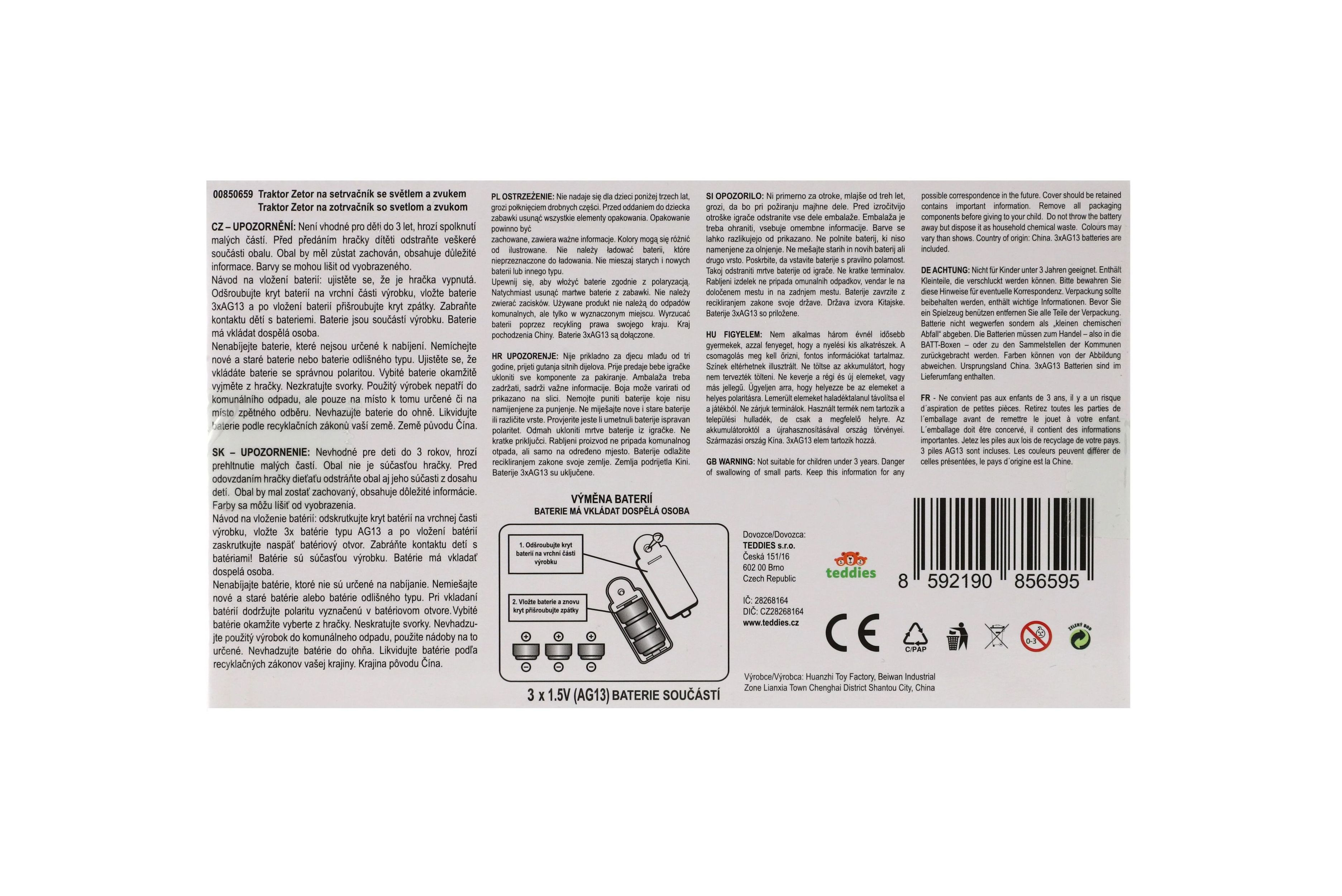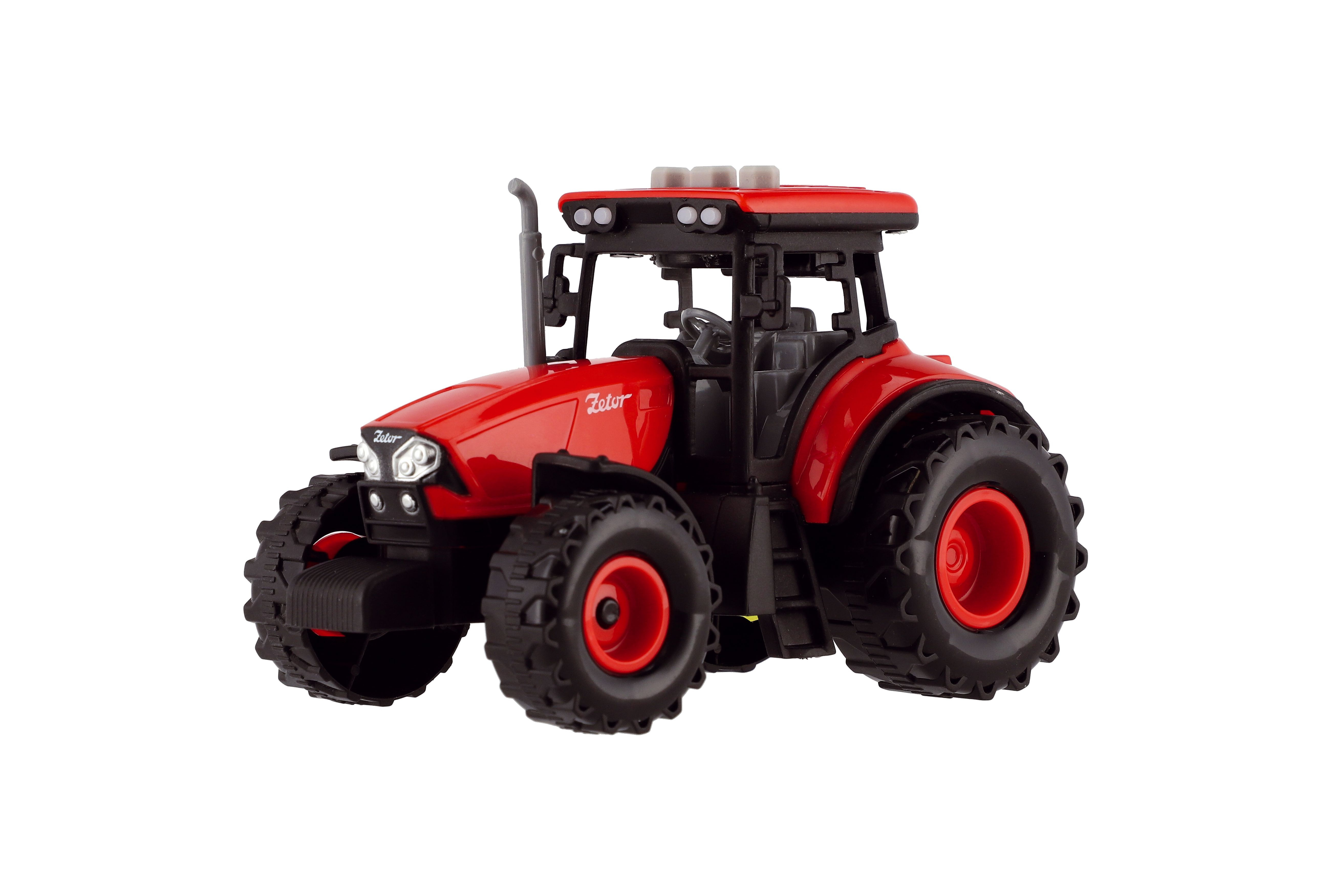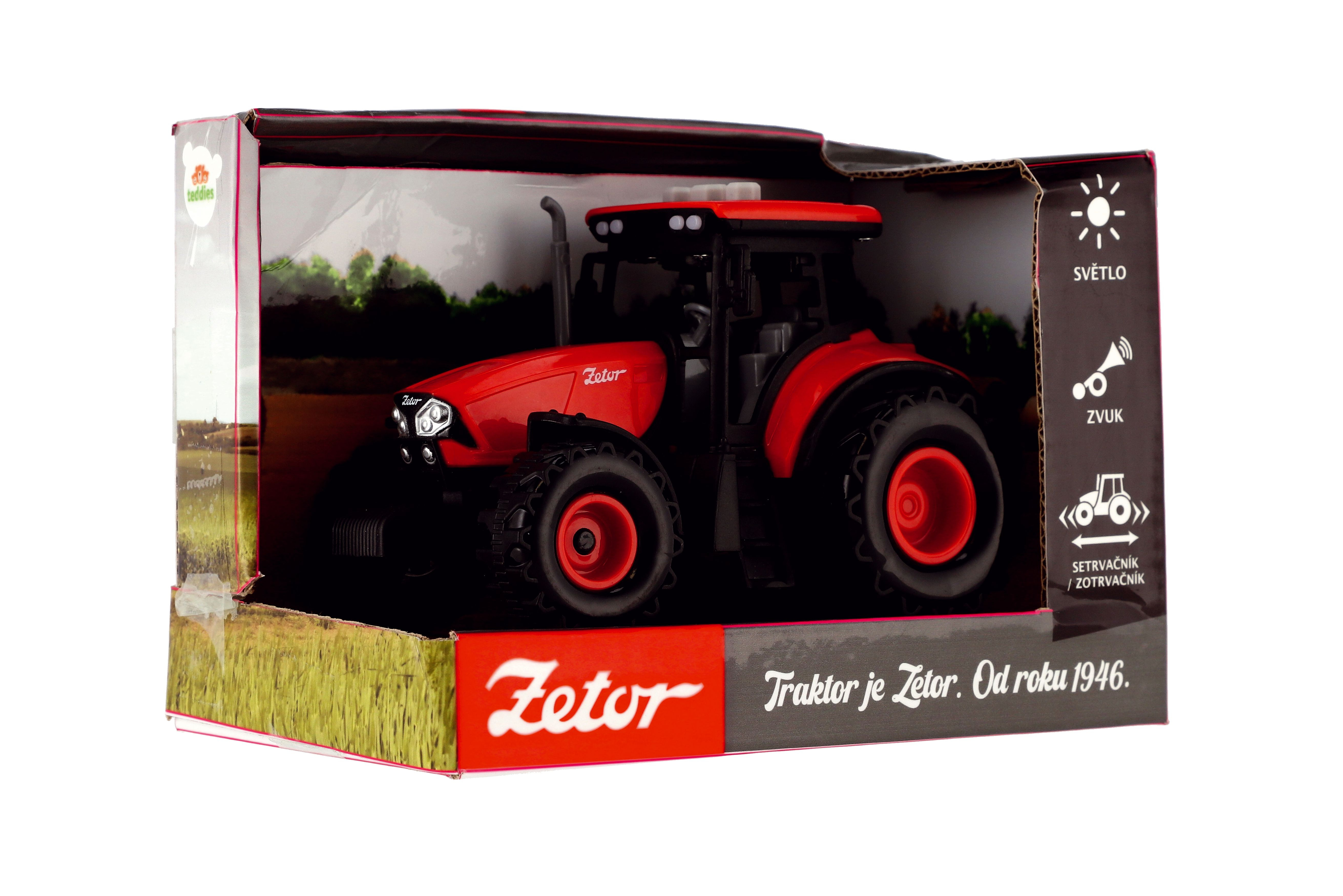 Teddies Traktor Zetor Kunststoff 9x14cm mit Schwungrad auf Batterie. mit Licht und Ton in einer Box 18x12x10,5cm