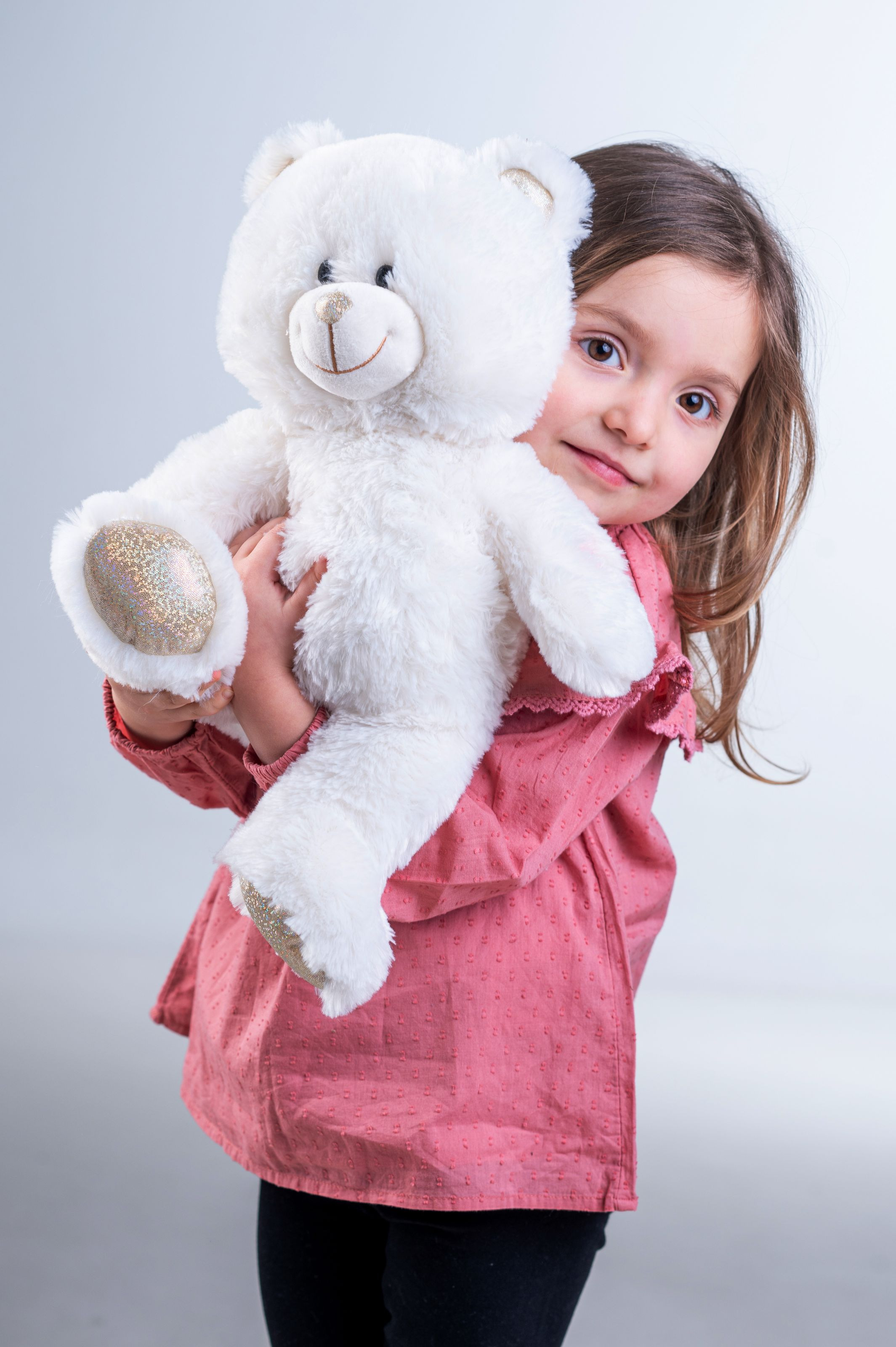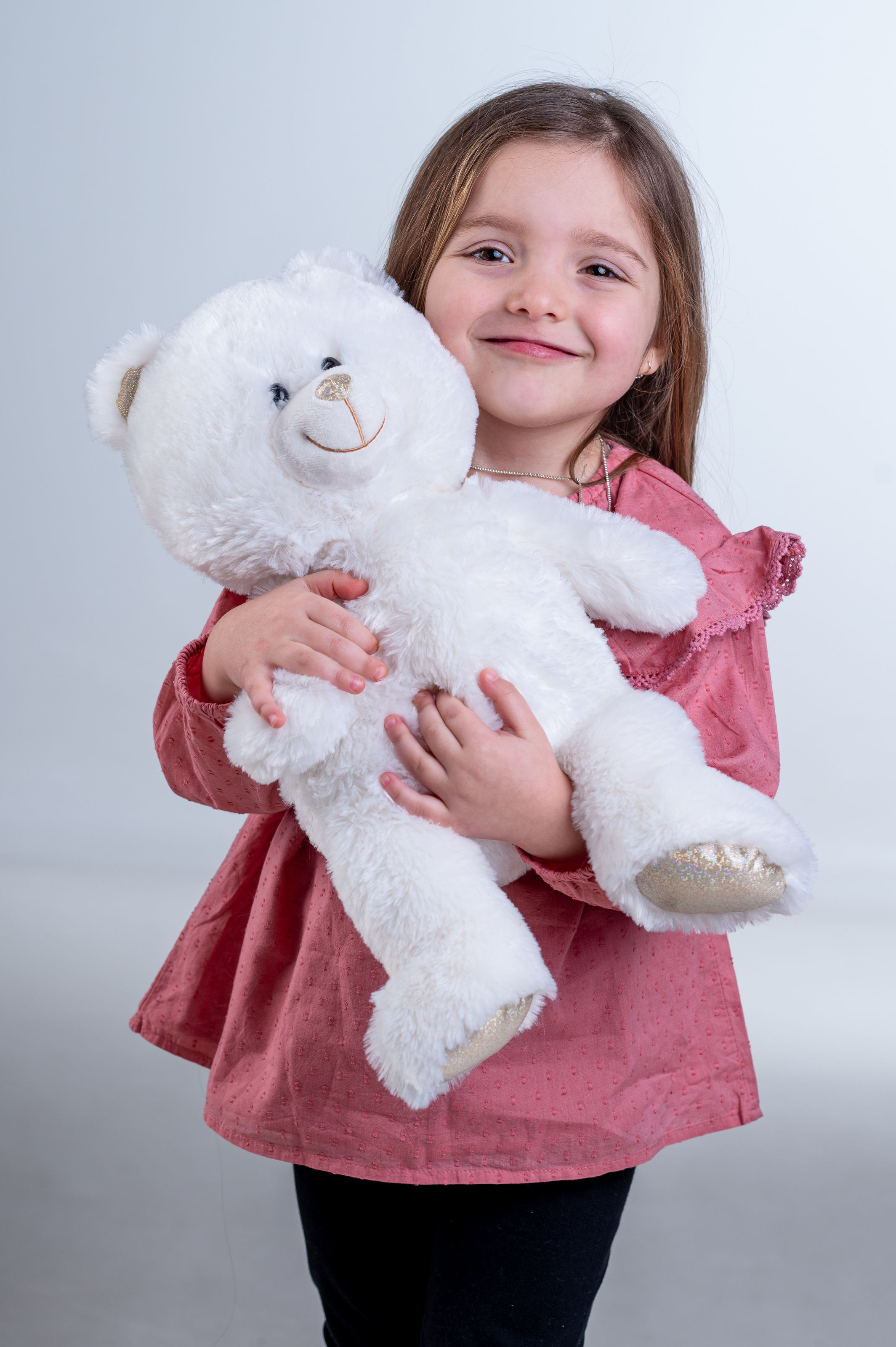 Beschreibung Teddies Träumer Bär weiß Plüsch 40cm mit Batterien mit Licht und Ton im Beutel