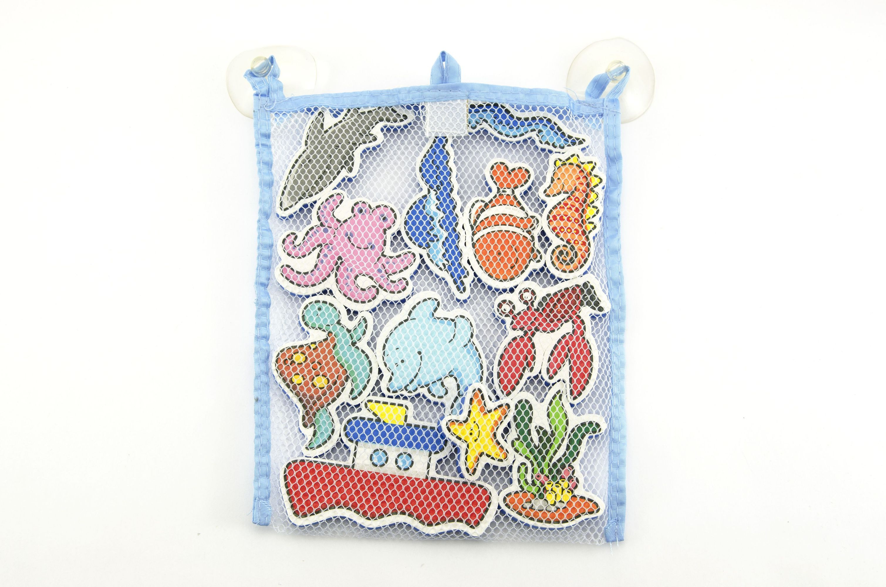Laden Sie Meerestiere in Ihr Badezimmer ein. Einfach die Aufkleber anfeuchten und schon können sie auf Badewanne und Fliesen geklebt werden. Sie lassen sich leicht bewegen und abbauen, sodass Kinder immer neue Geschichten erfinden können. Im Set enthalten sind 12 Wasseraufkleber und ein praktisches Netz mit Saugnäpfen. Sie können die Aufkleber nach dem Baden hineinlegen und sie trocknen problemlos. Mit Wasseraufklebern macht allen Kindern das Baden Spaß. Verpackungsmaße 19 x 27 x 5 cm. Geeignet für Kinder ab 2 Jahren.