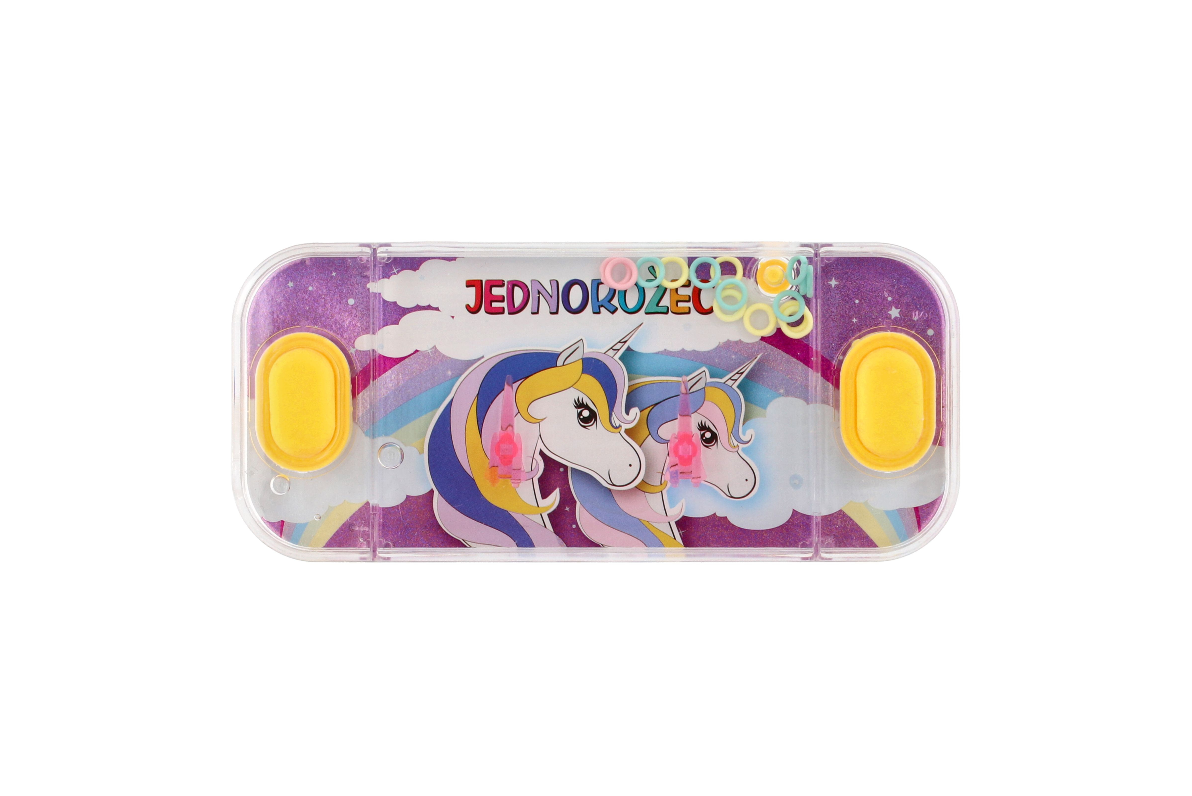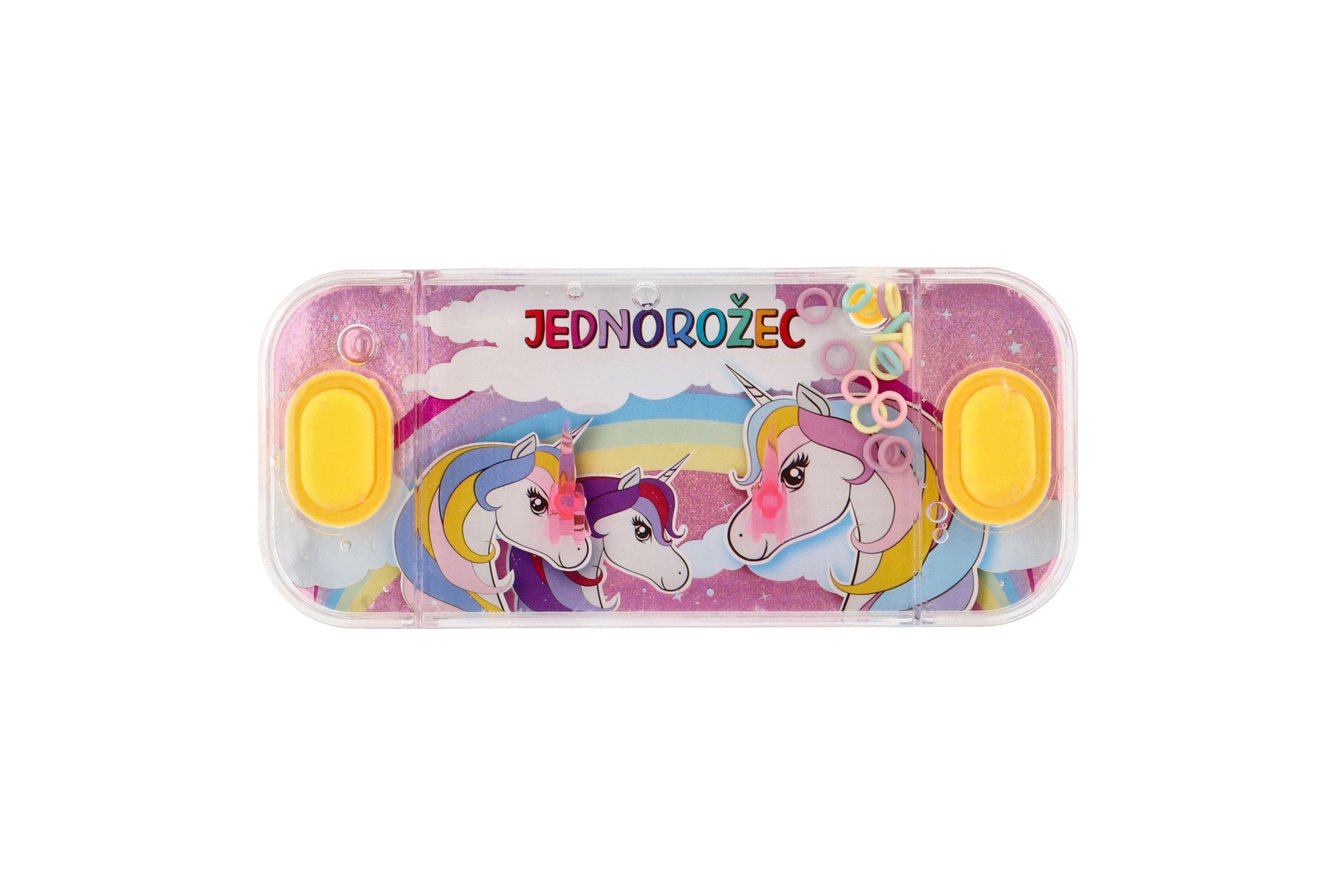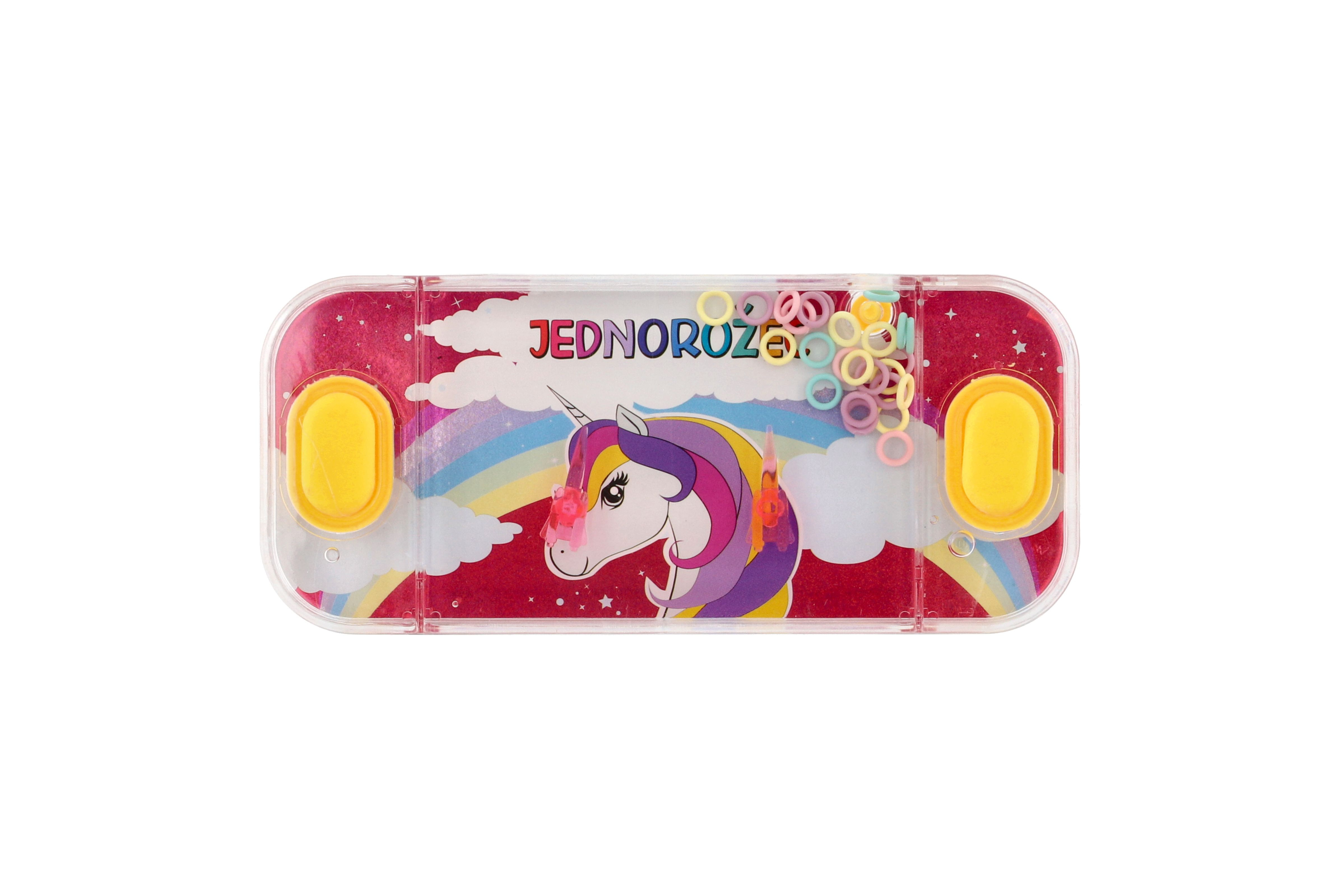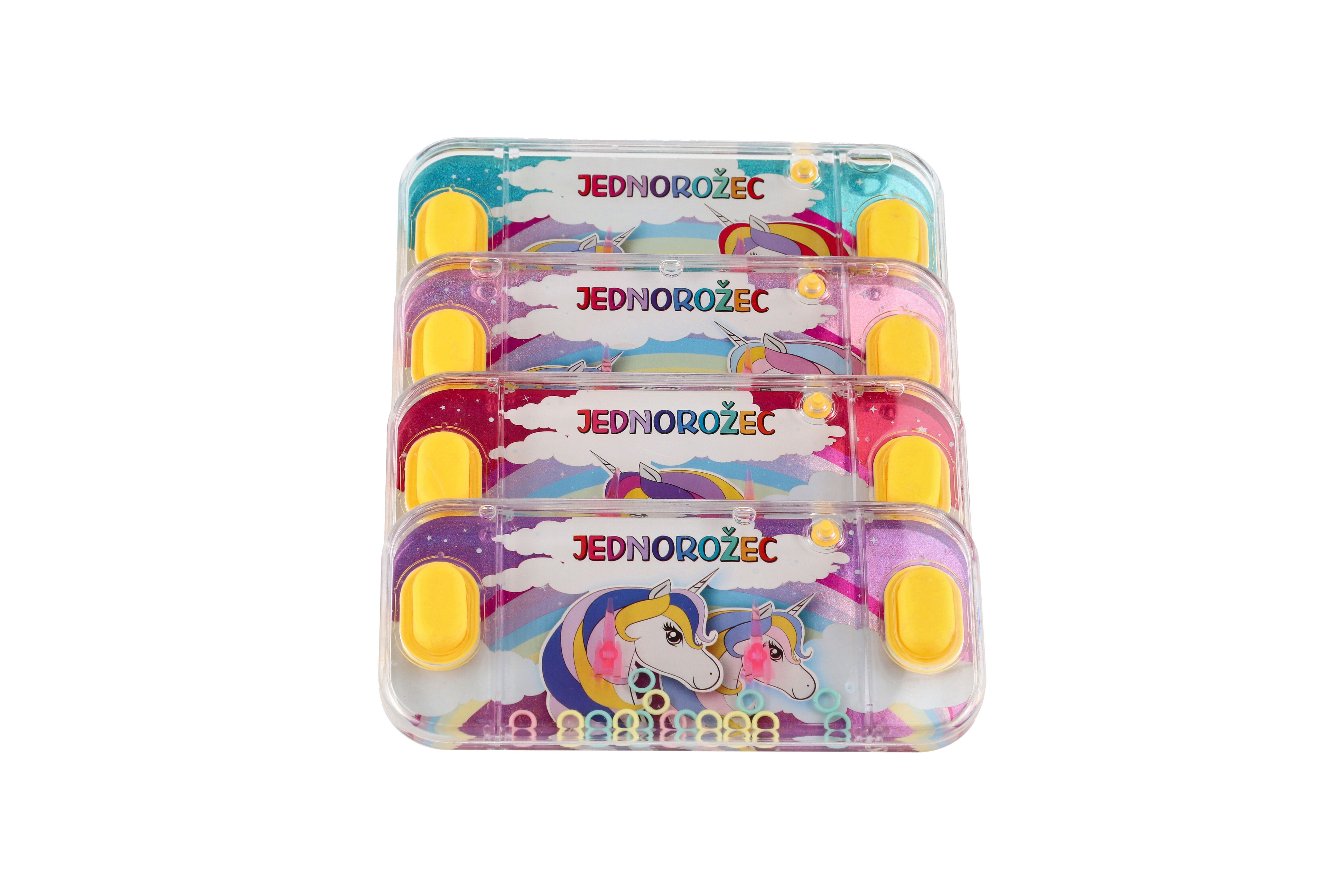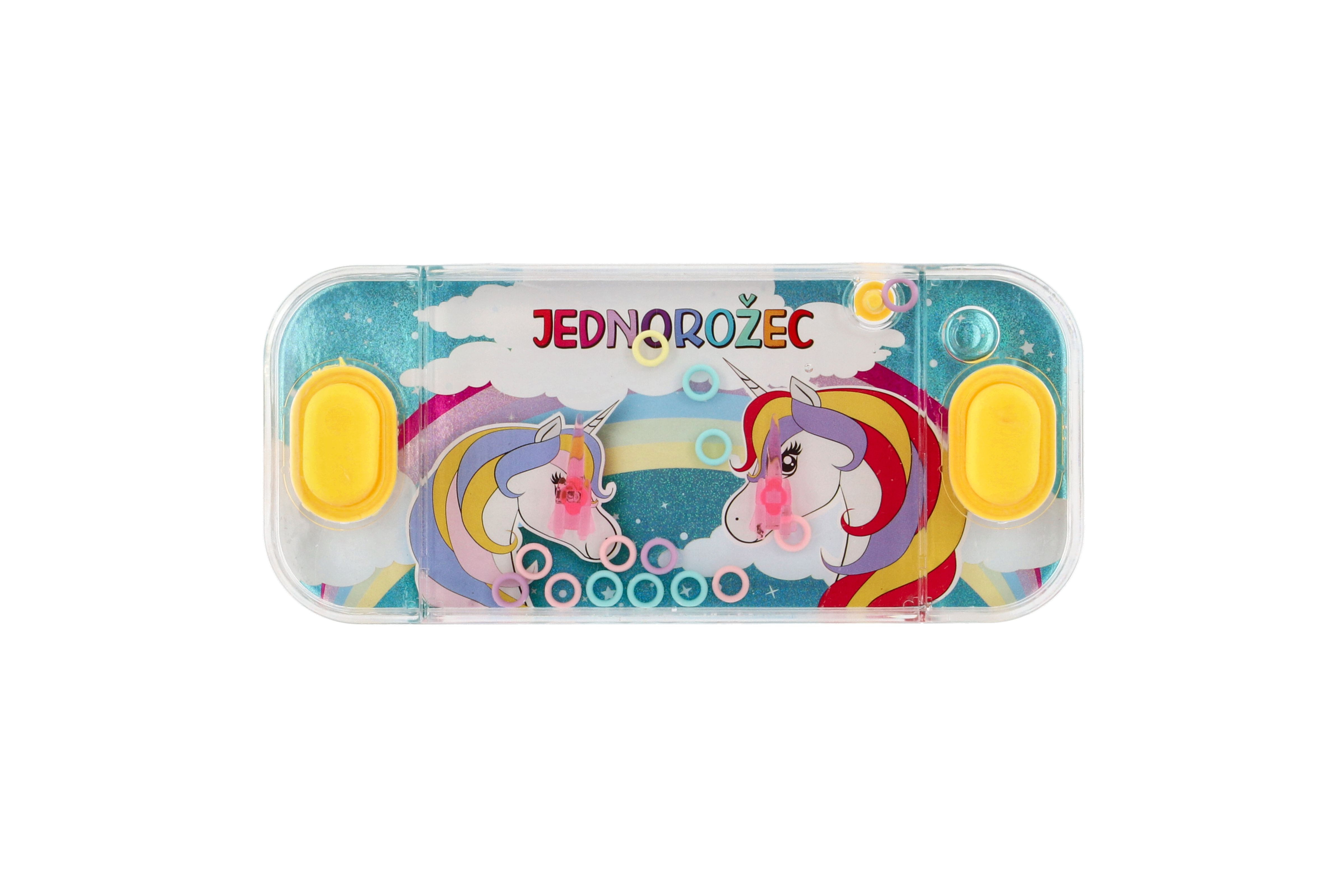 Ein traditionelles Kinderspiel, das keine Langeweile aufkommen lässt. Das Spielprinzip ist einfach. Ihre Aufgabe besteht darin, im Wasser schwimmende Ringe per Knopfdruck auf spitze Stangen zu hieven. Dieses Spiel fördert Konzentration und Geduld. Zur Auswahl stehen mehrere eher mädchenhafte Einhorn-Motive. Spielgröße: 15,5 x 7 cm. Geeignet für Kinder ab 3 Jahren.