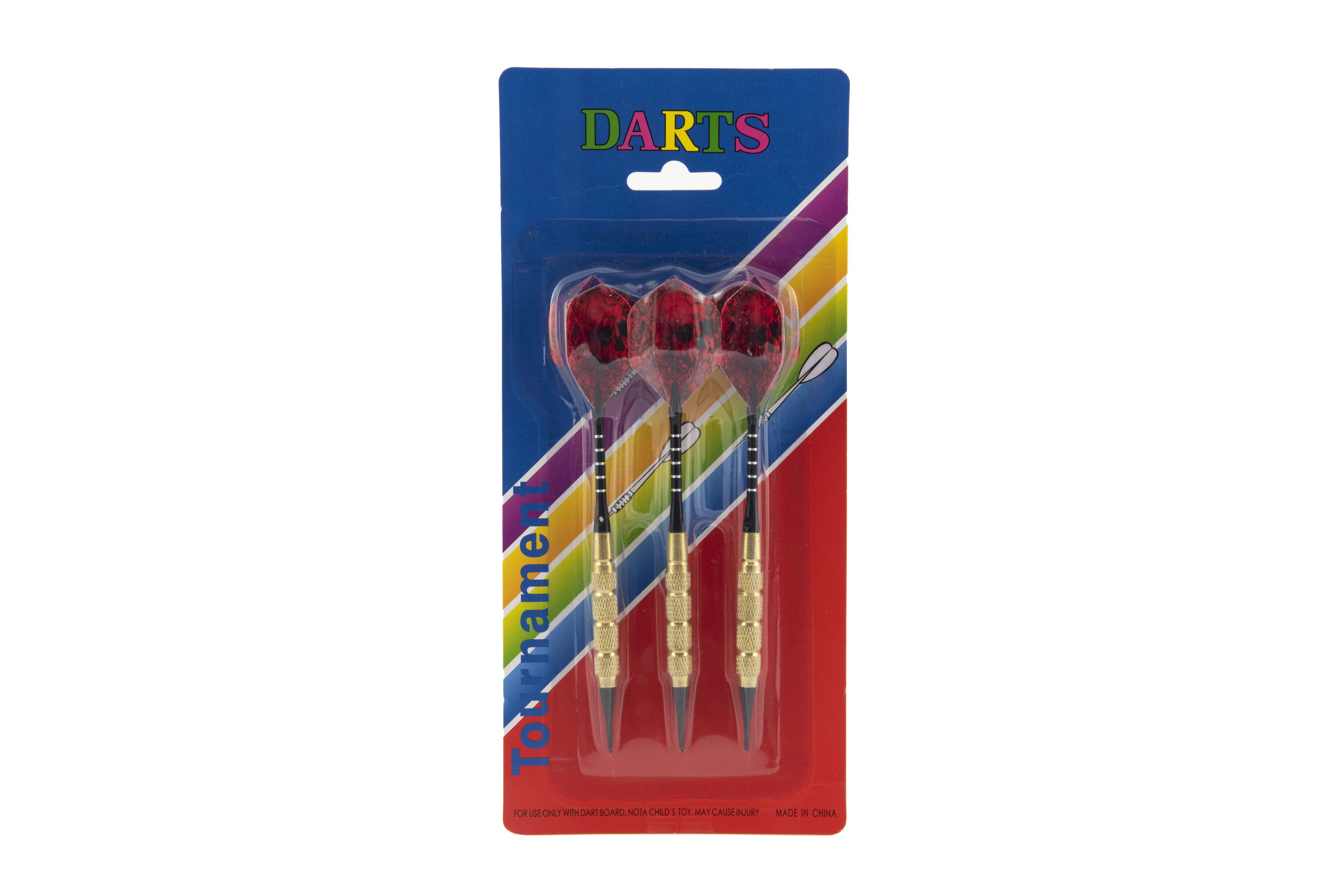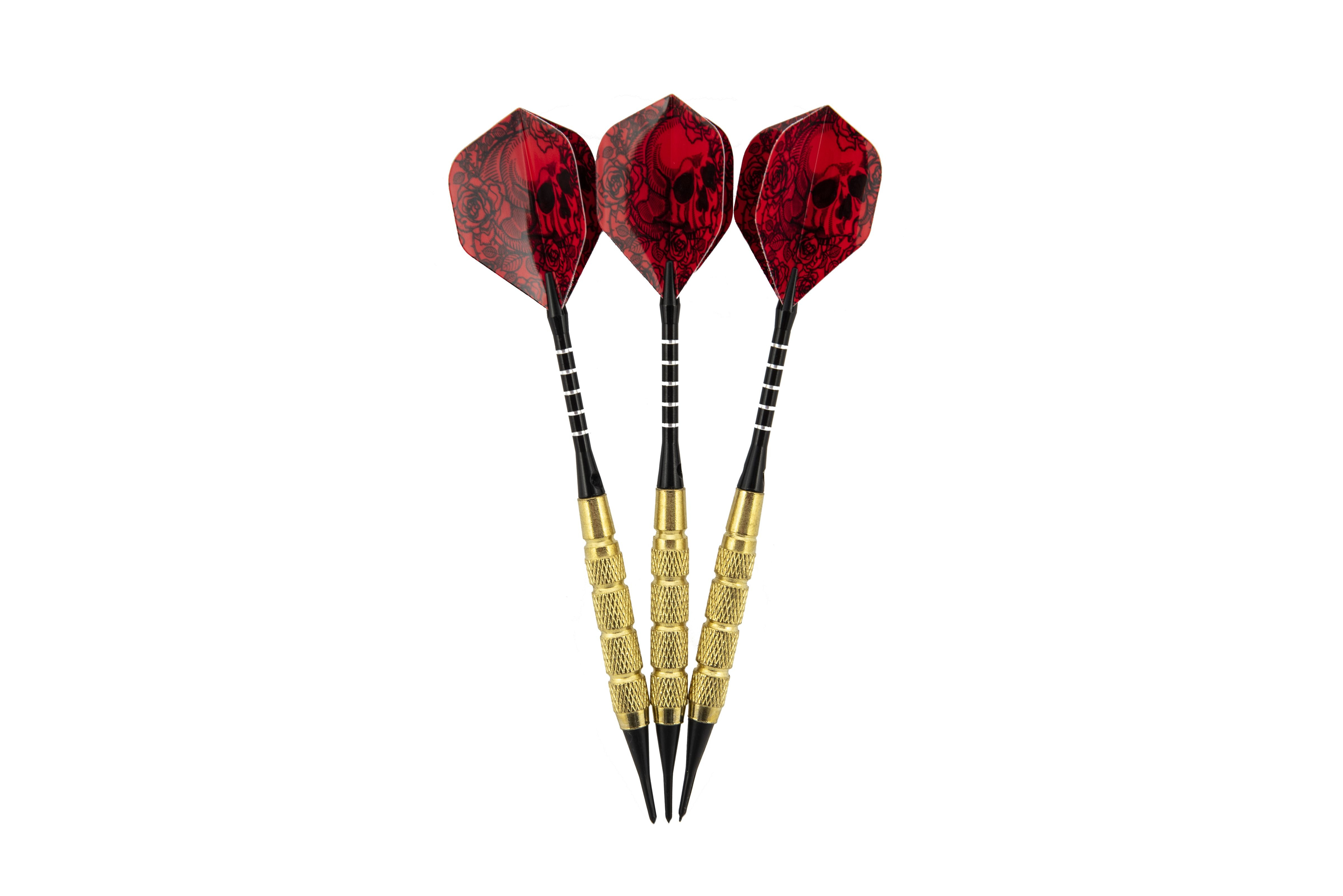 Teddies Wurfpfeile 3 Stück Metall/Kunststoff 15cm mit Totenkopf Kunststoffspitze auf Karte 11x25cm