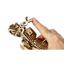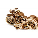 Tento model Cruiser V-Twin, postavený na základě skutečných motocyklů, je vybaven zatahovacím mechanismem, který mu umožňuje ujet na vzdálenost přibližně 1 metr. Motocykl poháněný gumovým motorem se může pohybovat vpřed i vzad, čímž zachycuje podstatu své mechanické inspirace. Naše laserem vyřezávané dřevěné modely kombinují nejvyšší přesnost s jednoduchou montáží, která je prostě radost. Díky chytrým funkcím, které oživují dřevěné modely, nabízejí fascinující zážitek.