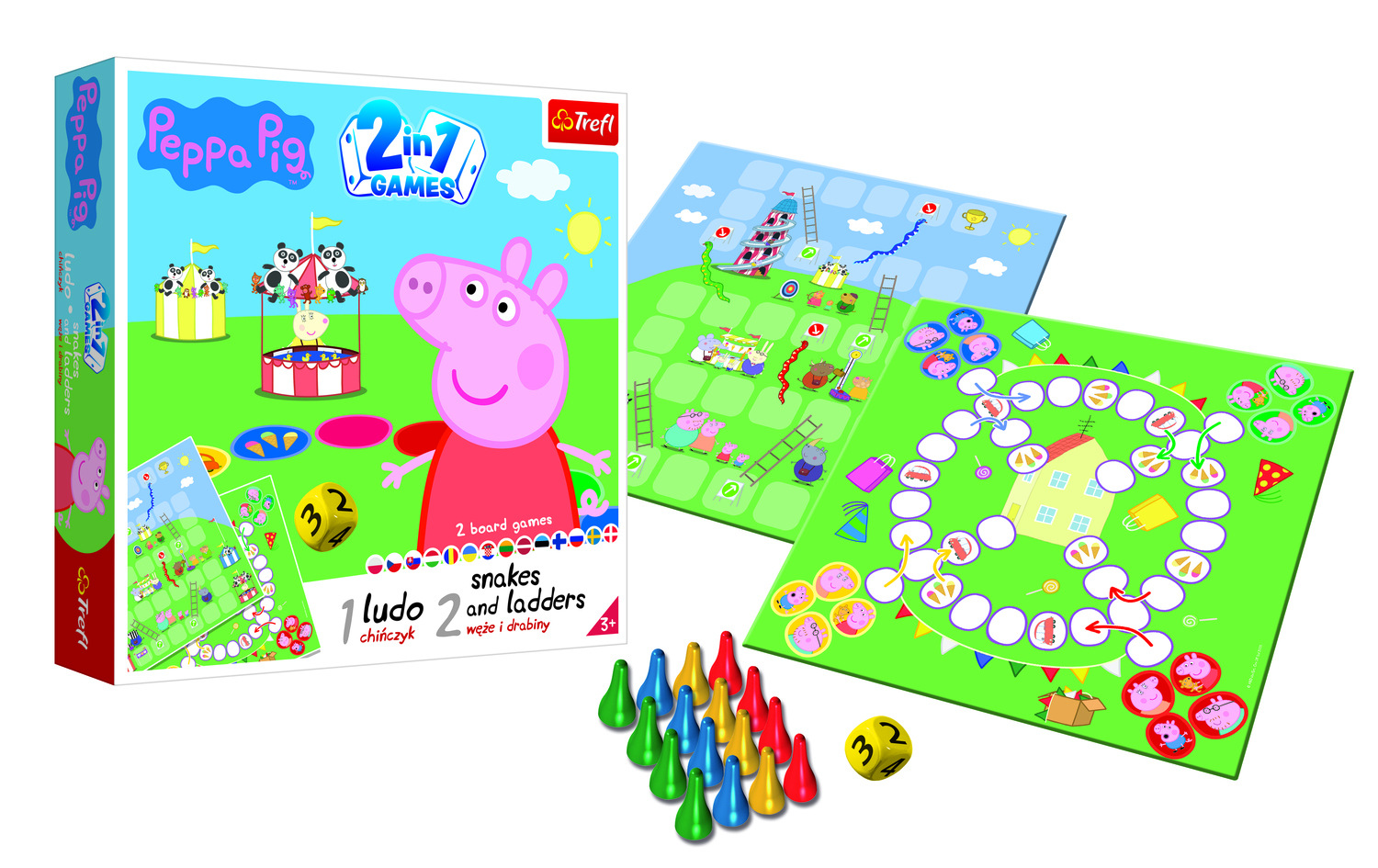 Trefl Spielesammlung 2in1 Mensch ärgere dich nicht, Schlangen und Leitern Peppa Pig/Peppa Wutz in einer Box 24x24x5,5cm