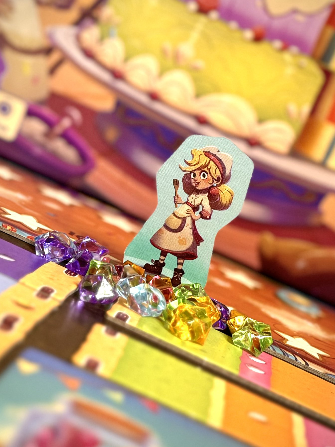 - Díky barevnému zpracování, výrazným komponentům a atraktivnímu vizuálu působí hra na stole doslova jako skutečný dort plný cukrové fantazie.