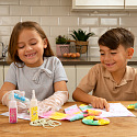 Zábavná kreativní sada, se kterou si děti snadno vytvoří vlastní barevné módní doplňky ve stylu "dye". Pomocí jednoduchého postupu a přiložených barev mohou vytvářet originální vzory na čelenkách a gumičkách, a rozvíjet tak svou kreativitu i jemnou motoriku.