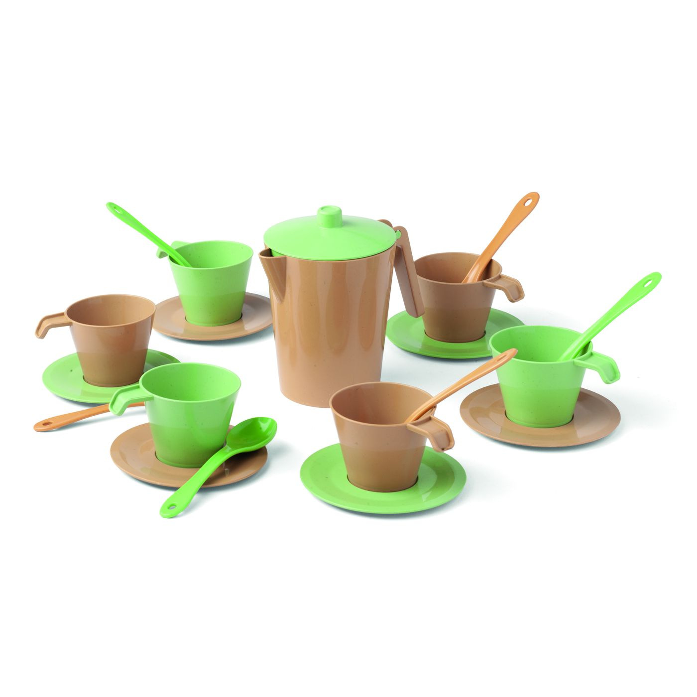 Kávový set je nepostradatelnou hračka pro každé dítě, které si rádo hraje a stará se. Ideální pro posezení, kdy malá hospodyňka bude moci zábavnou formou naučit pravidla etikety a prostírání stolu. Sada skládá z 19 prvků: džbán, 6 šálků, 6 talířků, 6 lžiček, prvky sady jsou ve světle žluté a oranžové barvě, zabalené v kraftové krabici. Sada je pečlivě zpracovaná a bezpečná - nádobí je schváleno pro styk s potravinami, lze jej používat v mikrovlnné troubě a mýt v myčce nádobí. Sada nádobí je z řady RePlay, a to znamená, že je vyroben výhradně ze surovin získaných z plastového spotřebního odpaducki, v uzavřeném procesu recyklace s využitím nejnovějších technologií. Rozměr balení: 27 x 14 x 10 cm Vhodné pro děti od 1 roku