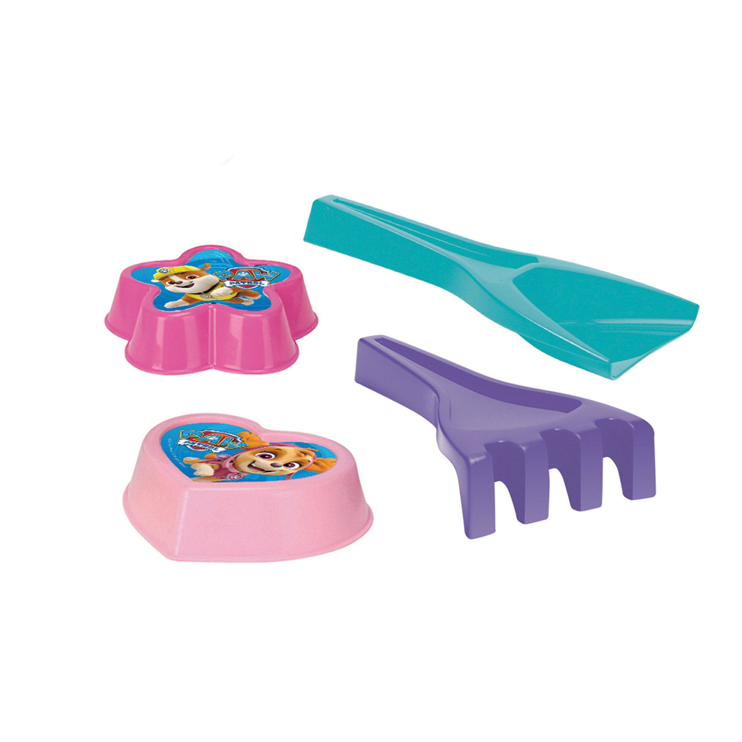 Beschreibung WADER Sandset 4-tlg. aus Kunststoff Schaufel, Harke, 2 Förmchen Paw Patrol 4 Farben im Netz