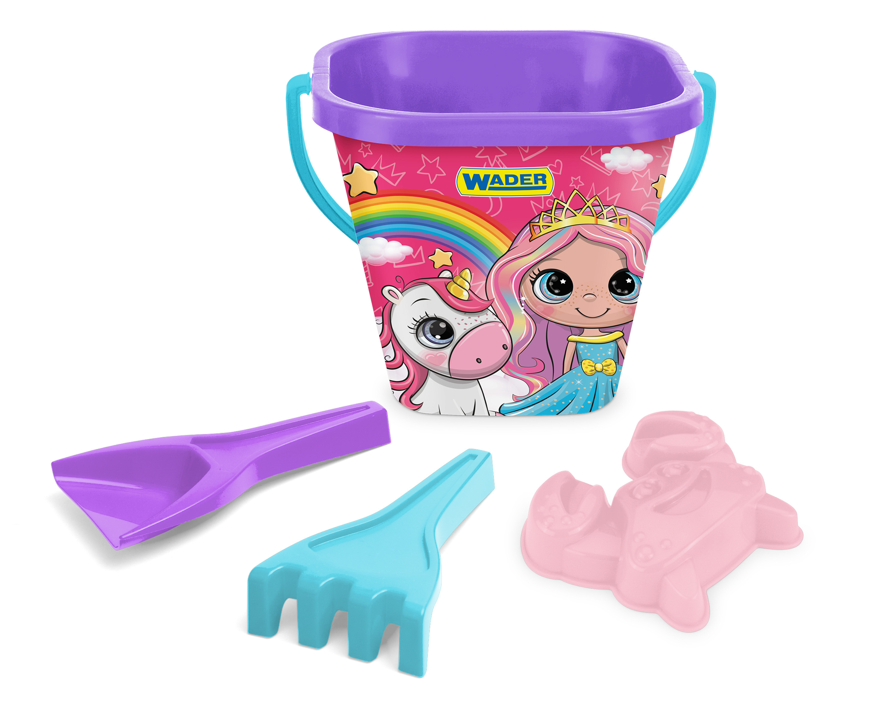 Beschreibung WADER Sandset 4-tlg. Kunststoff Eimer mit Zubehör 2 Arten im Netz 20x15x17cm 12m+ Wader