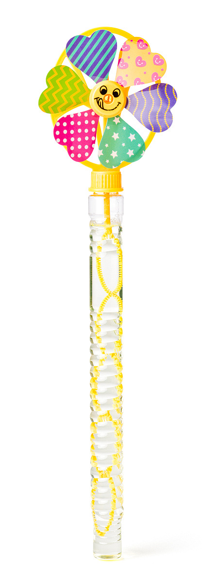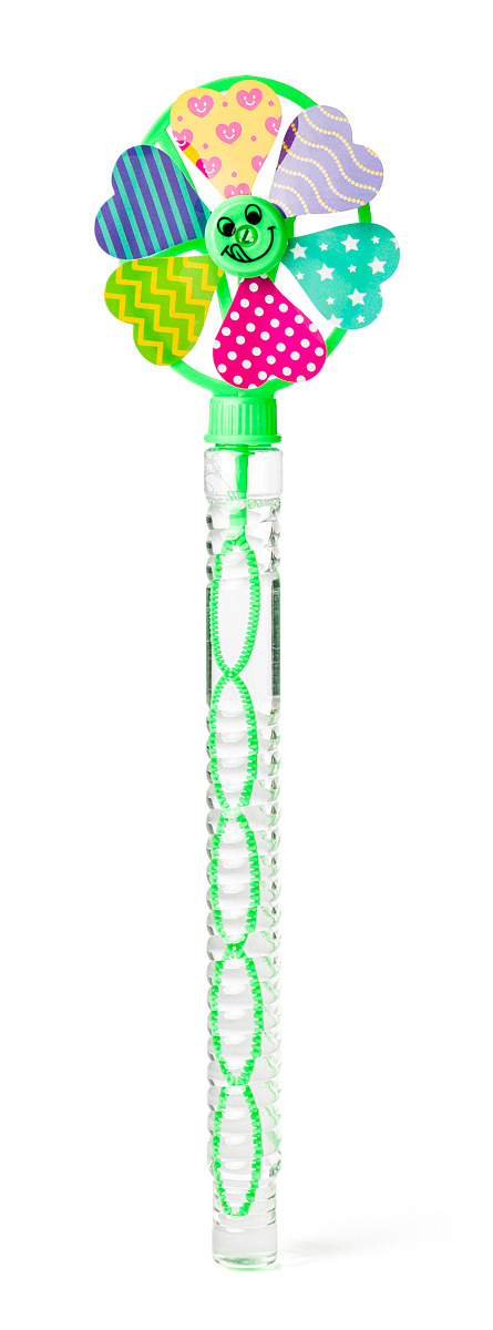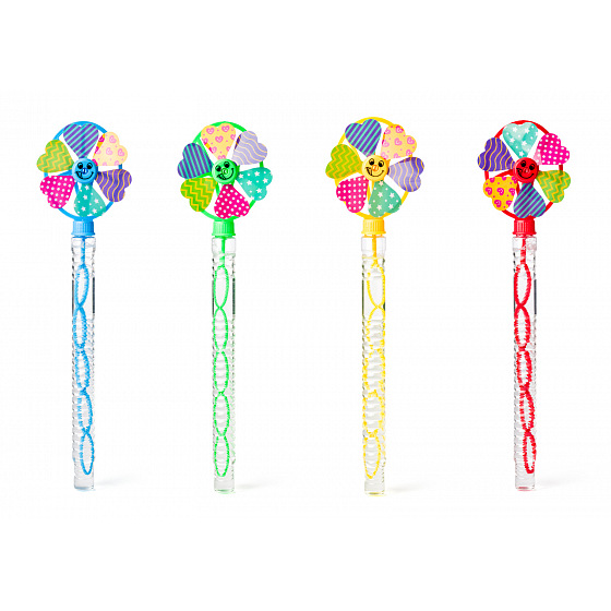 Barevná bublinková hůlka s větrníkem, která vytváří jemné bubliny a zároveň se točí ve větru. Součástí balení je 95 ml roztoku na bubliny. Balení: 24 ks v displeji CDU. Dostupné ve 4 barevných variantách. Assort je náhodný mix modelů. Výběr nelze ovlivnit. Rozměry produktu: 37,5 x 9,5 x 2,7 cm. Rozměry balení: 39 x 15 x 22,5 cm. Věk: 3+