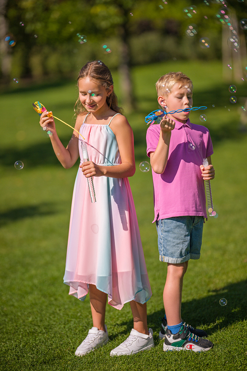 Velké bubliny vytvářejí výrazný vizuální efekt a přinášejí radost dětem i dospělým. Díky pevné konstrukci hůlek je manipulace pohodlná a hra stabilní i při opakovaném používání.