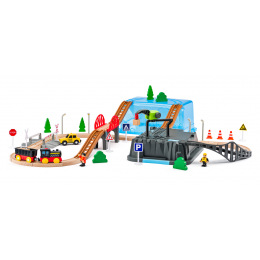Vláčkodráha s železničním mostem, přejezdem a kombinací kolejí dřevo/plast. Sestava obsahuje elektrickou mašinku pro strojvůdce a jednoho pasažéra, hasičské auto, kabriolet, 4 figurky a další příslušenství. Dráhu lze postavit pokaždé jinak a jednotlivé díly je možné kombinovat i s ostatními vláčkodráhami dostupnými na našem trhu. | Věk: 3+ Rozměr rozložené dráhy: š 85cm/v. 16cm/ hl.65cm, délka tratě: 350cm