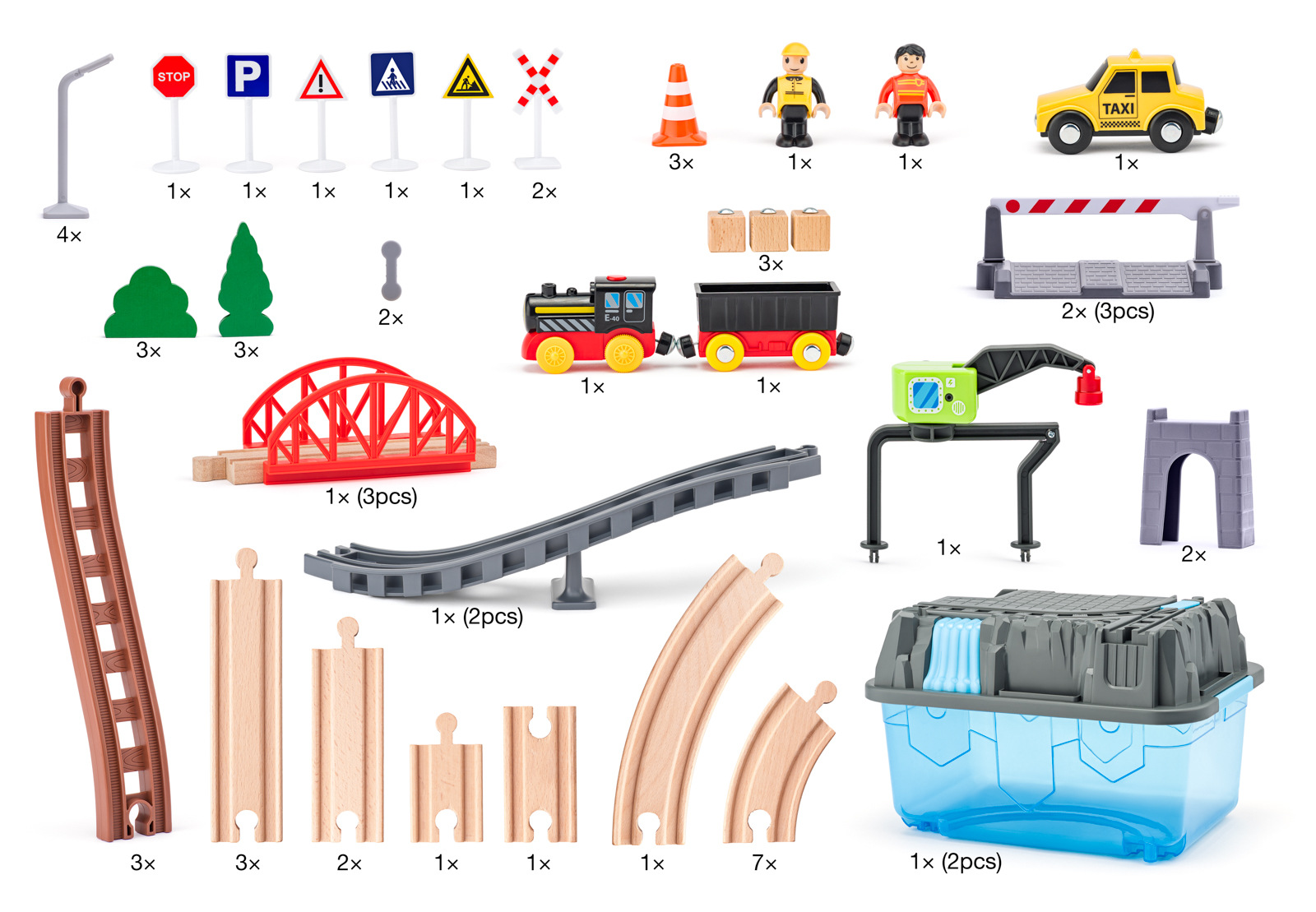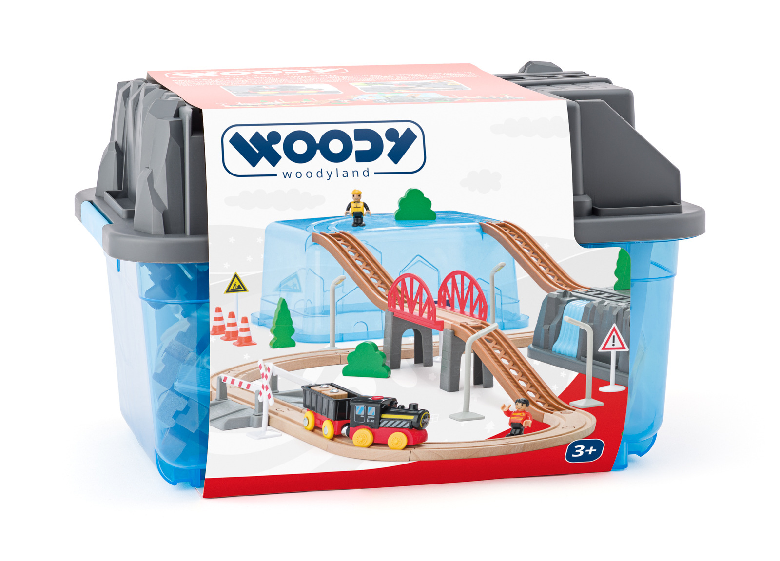 Woody Eisenbahnset in der Box – Minenset, 54 Stücke