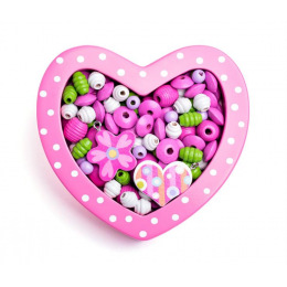 Sada obsahuje velké množství korálků různých tvarů a tenké tkanice s koncovkou k provlékání. Vhodné pro rozvoj jemné motoriky. Baleno v dřevěné krabičce ve tvaru srdíčka. | Věk: 3+| Rozměr: 18 x 15cm