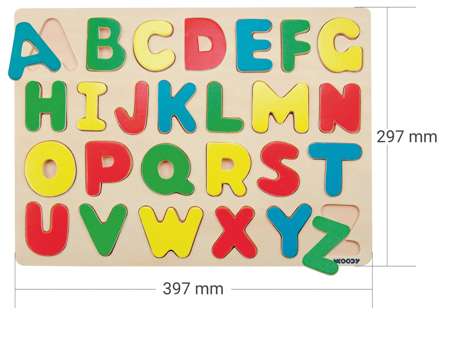 Dítě vkládá písmena do správných výseků. Vhodné pro předškoláky. Obsahuje: 26 dílků. Rozměr desky: 30 x 30 x 1,8 cm. Rozměr balení: 30 x 30 x 1,8 cm. Věk: 3+