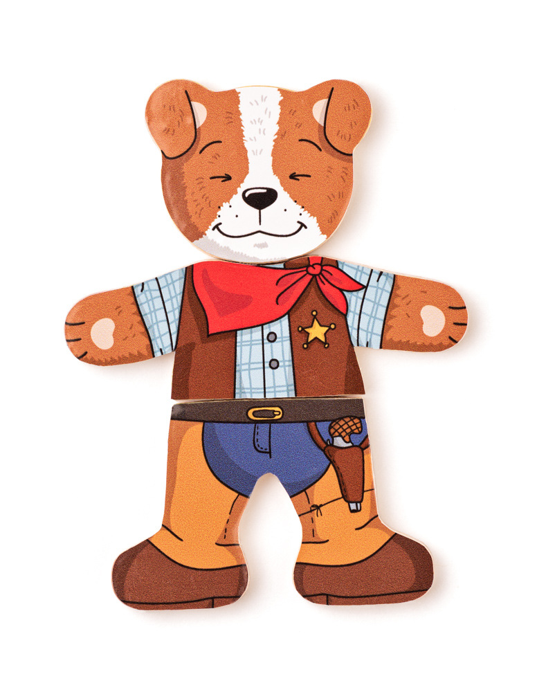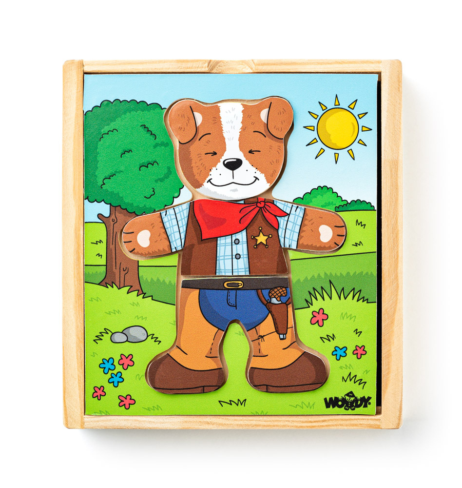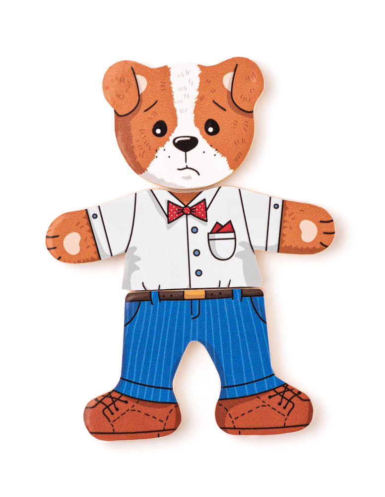 Děti zde mají možnost si dle vlastní fantazie oblékat a měnit postavičku pejska. Mají k dispozici obličeje znázorňující různé nálady, tělíčka a nožičky pejska s různými outfity. Rozvíjí fantaziii schopnost logického myšlení. Obsahuje: 18 dílků. Baleno v praktické dřevěné krabičce. Rozměr: 13 x 14 x 4 cm. Věk: 1+| Toto autorské dílo je registrováno u Art&Copyright pod číslem 196-12-20-1 ze dne 14.5.2020.