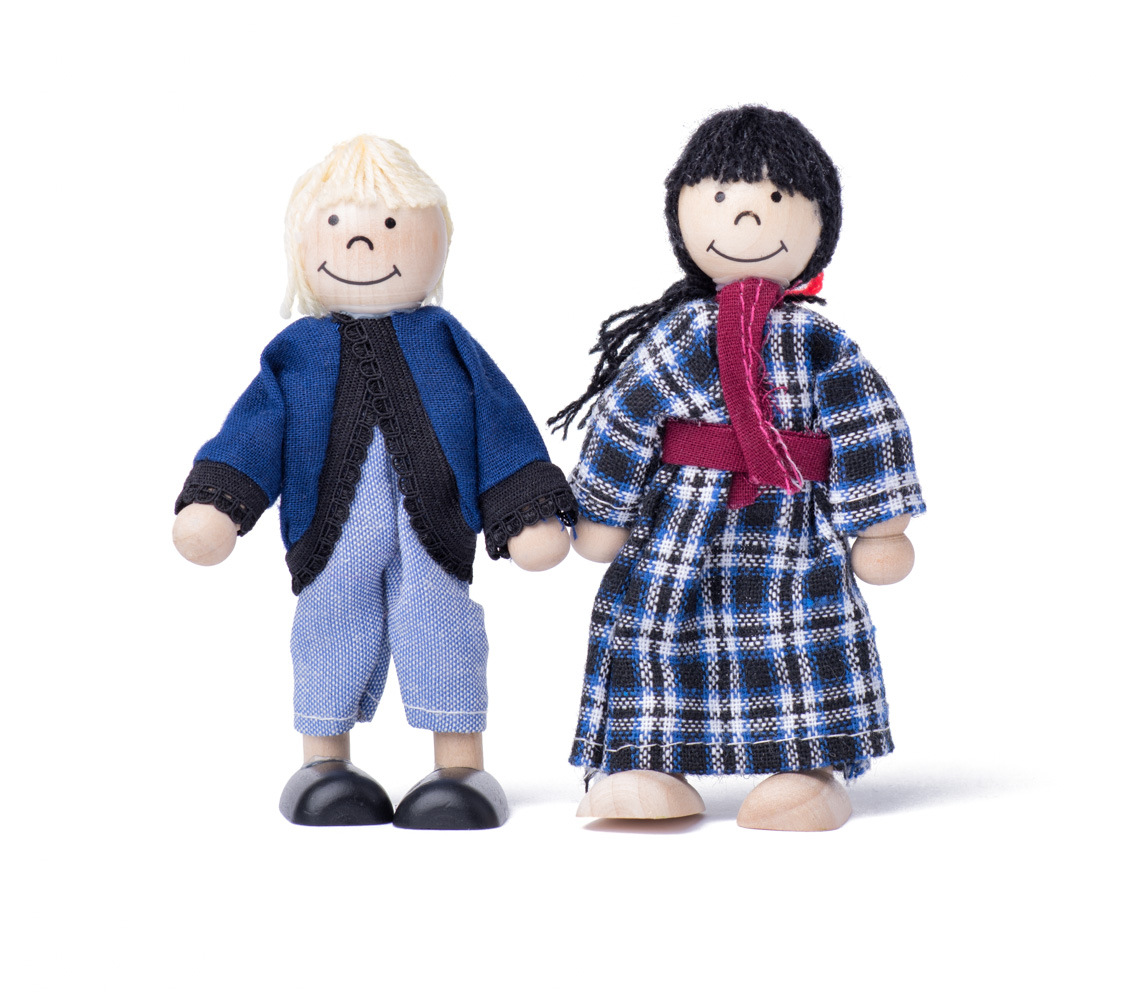 Panenky do domečku mají nožičky vyrobené z drátků, což jim umožnuje sedět, klečet i stát na jedné noze. Obsah balení: máma, táta, 2 děti, dědeček a babička. | Věk: 3+ | Výška dospělé panenky: 11cm