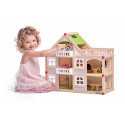 Designový domeček s plastovými balkony a rozlehlou terasou v horním patře nechá vyniknout klasické eleganci městských prvorepublikových vil. Díky otevřeným prostorům je snadno přístupný ve všech místnostech. Je vyroben v kombinaci materiálů: masivní dřevo a překližka. Vybavení domečku je velmi bohaté. Všechny místnosti jsou vybaveny nábytkem z masivního dřeva. Obsahuje celkem 19 ks příslušenství včetně 4 panenek. | Věk. 3+ | Rozměr: 55 x 26 x 51,5 cm