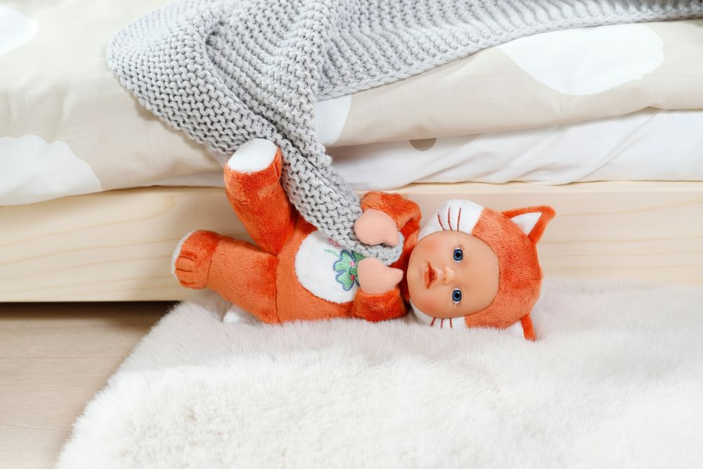 Nejroztomilejší kamarád v pokojíčku vašeho miminka! Lištička BABY born for babies je navržena pro miminka. Má měkkou vinylovou hlavičku a látkové tělíčko s kapsičkami na prsty, díky kterým lištička ožije a promění se ve veselého maňáska s liščím ocáskem. Měkká a hebká panenka je ideální na mazlení a nemusíte se bát ani toho, když se zašpiní. Lze ji snadno prát na 30° C.