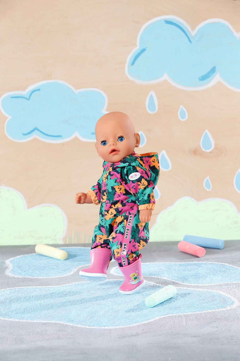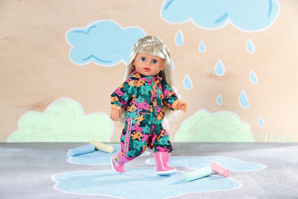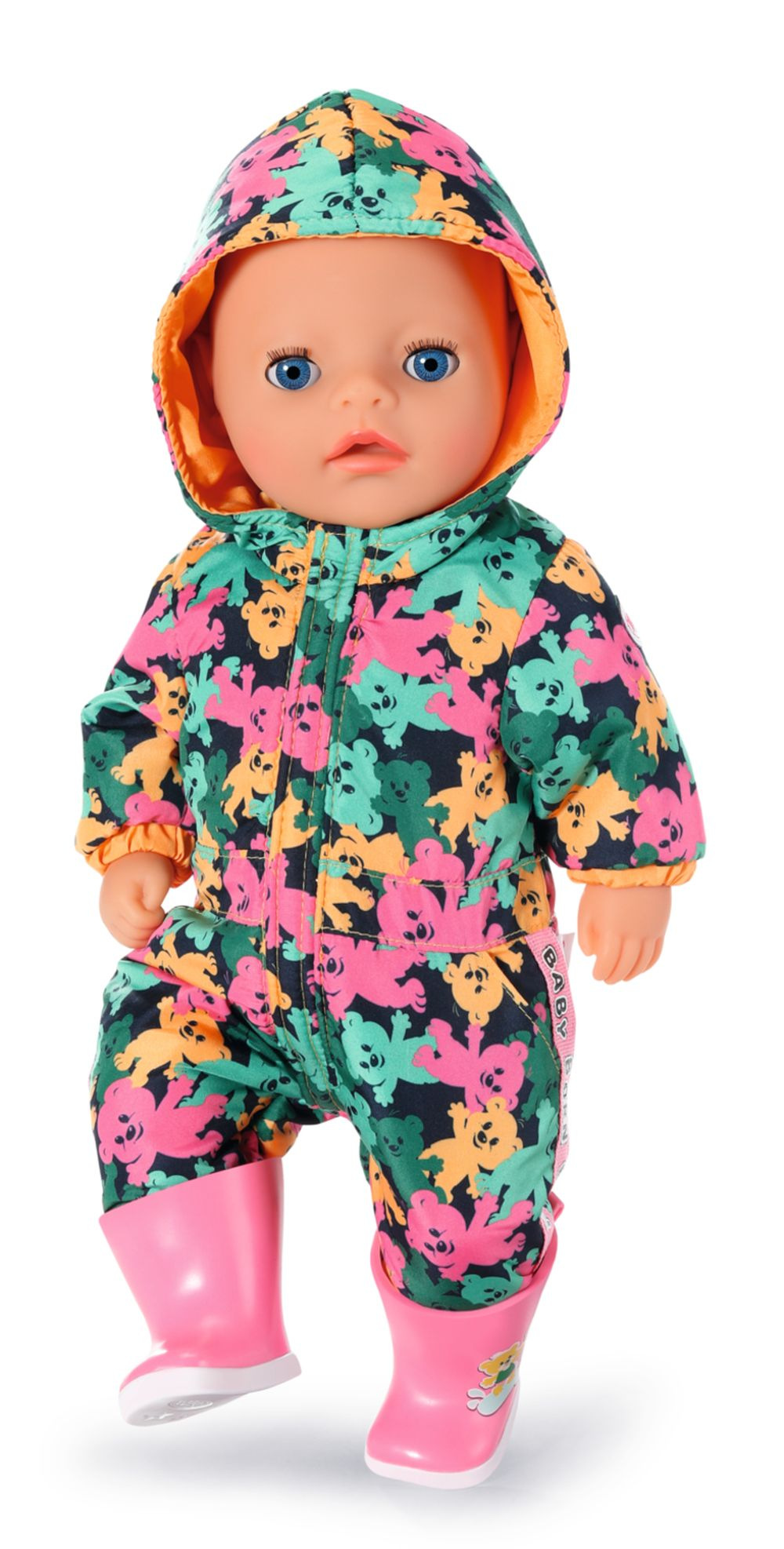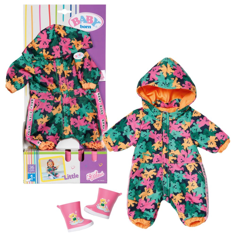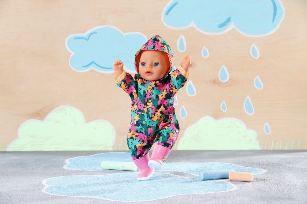 S venkovním overalem BABY born Little neexistuje nic takového jako špatné počasí. Jednodílný obleček v parádním "medvídko-maskáčovém" vzhledu se díky střihu easy fit snadno a rychle převléká a díky holínkám může BABY born skočit do každé louže, aniž by si namočila nohy. BABY born velikosti 36 cm tak může zažívat všechna dobrodružství i v dešti.