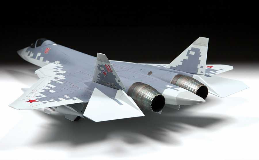 Informationen zum Original: Die Su-57 ist ein russisches Mehrzweck-Düsenjägerflugzeug der fünften Generation, das vom Konstruktionsbüro Suchoi gebaut wurde. Der neue Jet mit Anti-Radar-Technologie bietet eine Reihe einzigartiger Lösungen, die in früheren Flugzeuggenerationen nicht verfügbar waren. Das Ergebnis ist eine effektive Kombination von Angriffs- und Kampfflugzeugfunktionen auf einer einzigen Plattform. Es kann problemlos Ziele in der Luft, am Boden und auf See sowie die Steuerungssysteme feindlicher Flugzeuge zerstören. Die Su-57 absolvierte ihren Erstflug am 29. Januar 2010 in Komsomolsk am Amur und trat 2019 offiziell der russischen Luftwaffe bei.