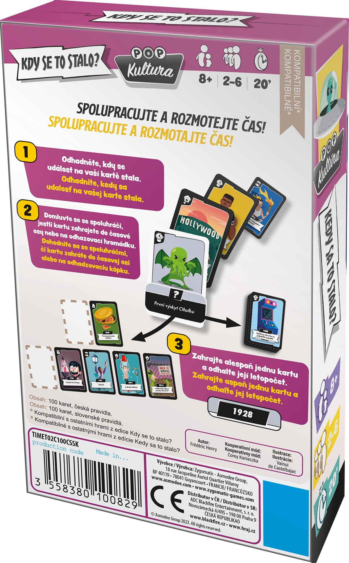 POPkultura je samostatně hratelné rozšíření hry Kdy se to stalo? Obsahuje 100 nových karet z oblasti hudby, filmu, počítačových her, známých značek, atd.