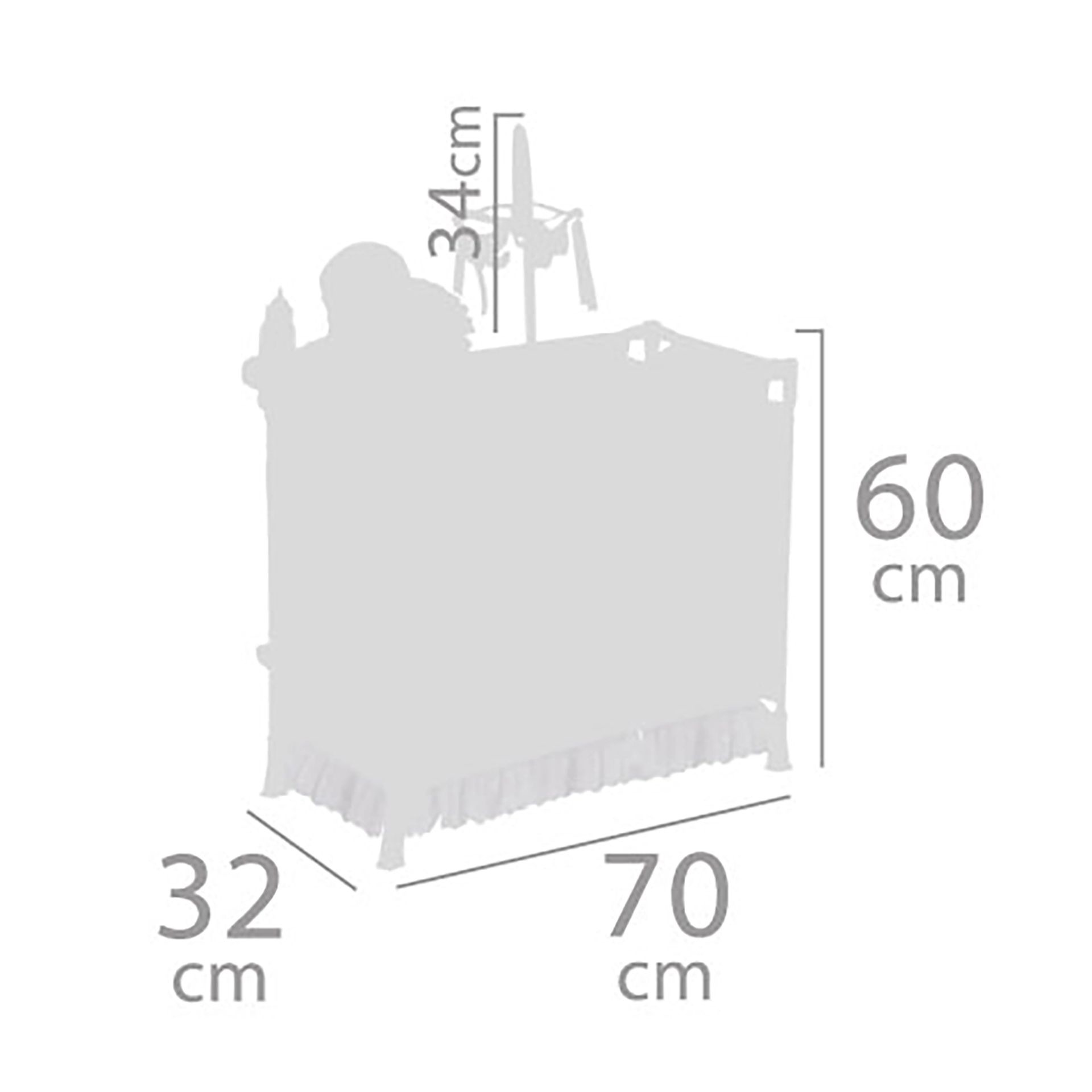 DeCuevas 53079 Skládací postýlka pro panenky s 5 funkčními doplňky KOALA 2024 patří do stejnojmenné kolekce, která je novinkou roku 2024 a nabízí nejen kočárky, ale i jiné doplňky pro malé slečny a jejich panenky. Tato dívčí kolekce KOALA je doslova něžnost sama. Spící medvídek s květinou za ouškem je velmi roztomilý. Tento motiv doprovází každý výrobek z kolekce. V provedení se střídá bílá s drobným květinovým potiskem s lososově růžovým jednobarevným materiálem.Doplňky a vybavení:• Kolotoč s lístečky (výška 34 cm)• Přebalovací pultík (17 x 27 cm)• Jídelní židlička a plastový set s lahví, miskou a příborem• Lůžková část (42 x 28 cm) se síťovaným okénkem • Velká šatna na zip s tyčkou a 3 ramínky na oblečení pro panenky (40 x 27 x 30 cm)• Dvě úložné poličky • Rozměry postýlky: 70 x 32 x 60 cm (d x š x v) • Panenka, oblečení a věci v poličkách nejsou součástí baleníDoplňující informace:• Nádherný španělský design• Precizní zpracování• Skládací model• Velmi snadná manipulace během samotné hry• Materiál: kov, plast, textil• Baleno v krabici v barvách kolekce• Rozměry balení: 61 x 14 x 32,5 cm (d x š x v)• Váha balení: 2,6 kg• U vybraných modelů je na obalech QR kód s video návodem na sestavení • Doporučený věk od 3 letDeCuevas 53079 Skládací postýlka pro panenky s 5 funkčními doplňky KOALA 2024, která je novinkou roku 2024, je u holčiček oblíbená díky svému rozmanitému příslušenství a úložnému prostoru, který ocení i pořádkumilovné maminky. Kolekce nabízí nejen kočárky, ale i jin