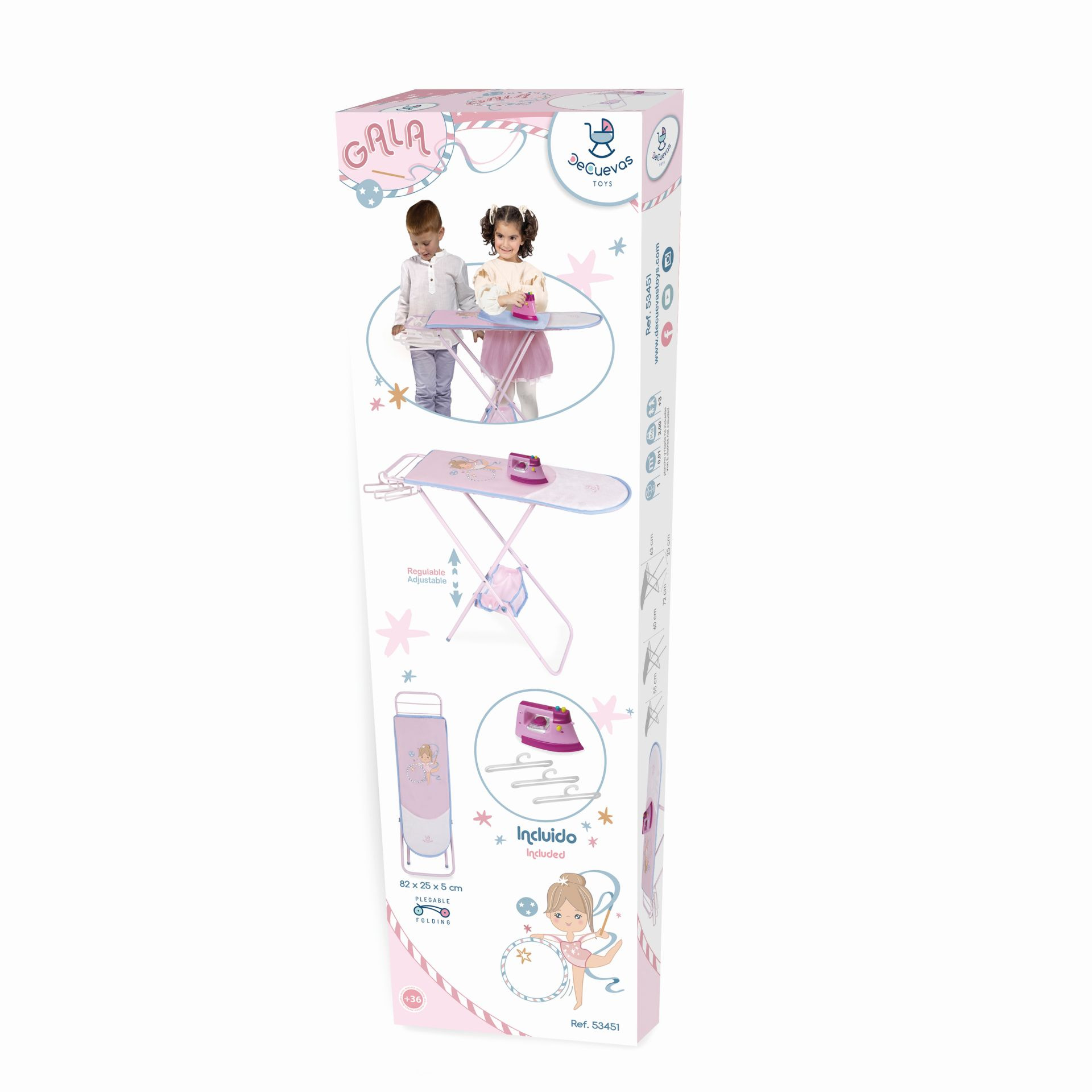 DeCuevas 53451 Skládací žehlicí prkno pro panenky s doplňky GALA 2023 patří do stejnojmenné růžovobílé kolekce s malou gymnastkou, zachycenou v baletně sportovní kreaci, která je novinkou roku 2023. Celou růžovobílou kolekci s drobným potiskem sportovních prvků doplňuje modrá barva a danou tematiku navíc podtrhují sportovně laděné tašky na kočárkách. Kolekce nabízí nejen zmíněné kočárky, ale i jiné doplňky pro malé slečny a jejich panenky.Doplňky a vybavení:• Dětská plastová žehlička• 3 plastová ramínka na oblečení pro panenky• Praktický úložný látkový košíček na oblečení, upevněný na konstrukci žehlicího prkna• Nastavitelná výška: 55, 60 a 63 cm• Rozměry prkna: 75 x 25 cm (d x š) x výška 55, 60 nebo 63 cm• Oblečky nejsou součástíDoplňující informace:• Nádherný španělský design• Precizní zpracování• Skládací model• Velmi snadná manipulace během samotné hry• Materiál: kov, plast, textil• Baleno v krabici v barvách kolekce• Rozměry balení: 83 x 7,5 x 26,2 cm (d x š x v)• Váha balení: 2,45 kg• U vybraných modelů je na obalech QR kód s video návodem na sestavení • Doporučený věk od 3 letDeCuevas 53451 Skládací žehlicí prkno pro panenky s doplňky GALA 2023, ze stejnojmenné kolekce, která je novinkou roku 2023, je nezbytnou součástí výbavy každé malé hospodyňky. Díky nastavitelné výšce do 3 úrovní, roste s malými slečnami i několik let. Kolekce nabízí nejen zmíněné kočárky, ale i jiné doplňky pro malé slečny a jejich panenky. Charakteristická pro tuto kolekci je malá gymnastka, zac