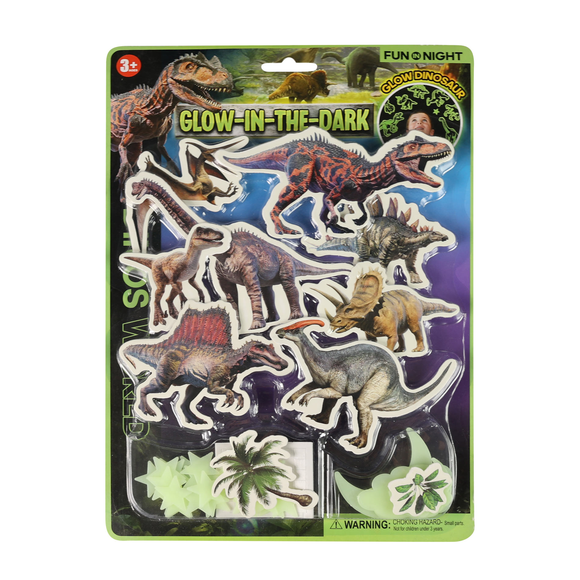 Dekorace dinosauří svět na stěnu, nebo na nábytek. Po zhasnutí svítí ve tmě. Stačí nalepit a usínání bude hračka!Dekorace na stěnu dinosauři svítící ve tmě.