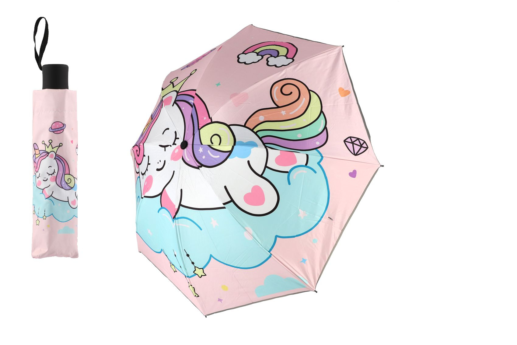 Diskuze k produktu Deštník Jednorožec skládací látka/kov 25cm růžový v sáčku